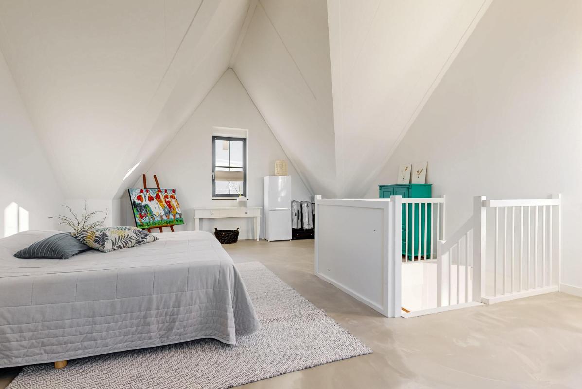 Op de tweede verdieping vindt u een royale multifunctionele ruimte met veel daglicht. Deze ruimte kan geheel naar eigen wens worden ingericht, bijvoorbeeld door de ruimte op te delen in twee extra slaapkamers of in te richten als ruime werk- of hobbyruimte. Hier vindt u ook een aparte wasruimte met de witgoedaansluiting en extra bergruimte, ideaal voor koffers, kerstspullen of andere seizoensartikelen.