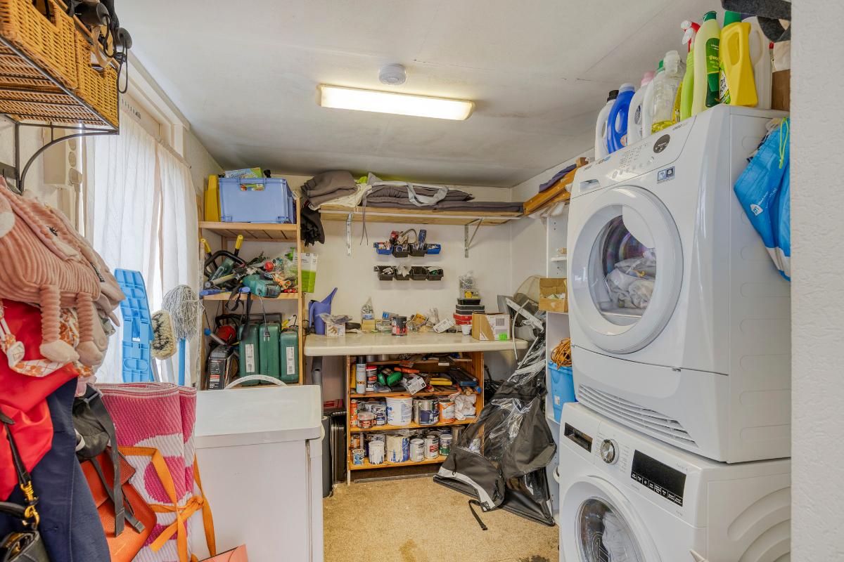 The room in this extension is a multifunctional space, currently it is furnished as a playroom, but this room is also extremely suitable for a home office, for example. The rear utility room and the backyard can be reached via this room. The practical utility room has connections for the washing machine and dryer.
