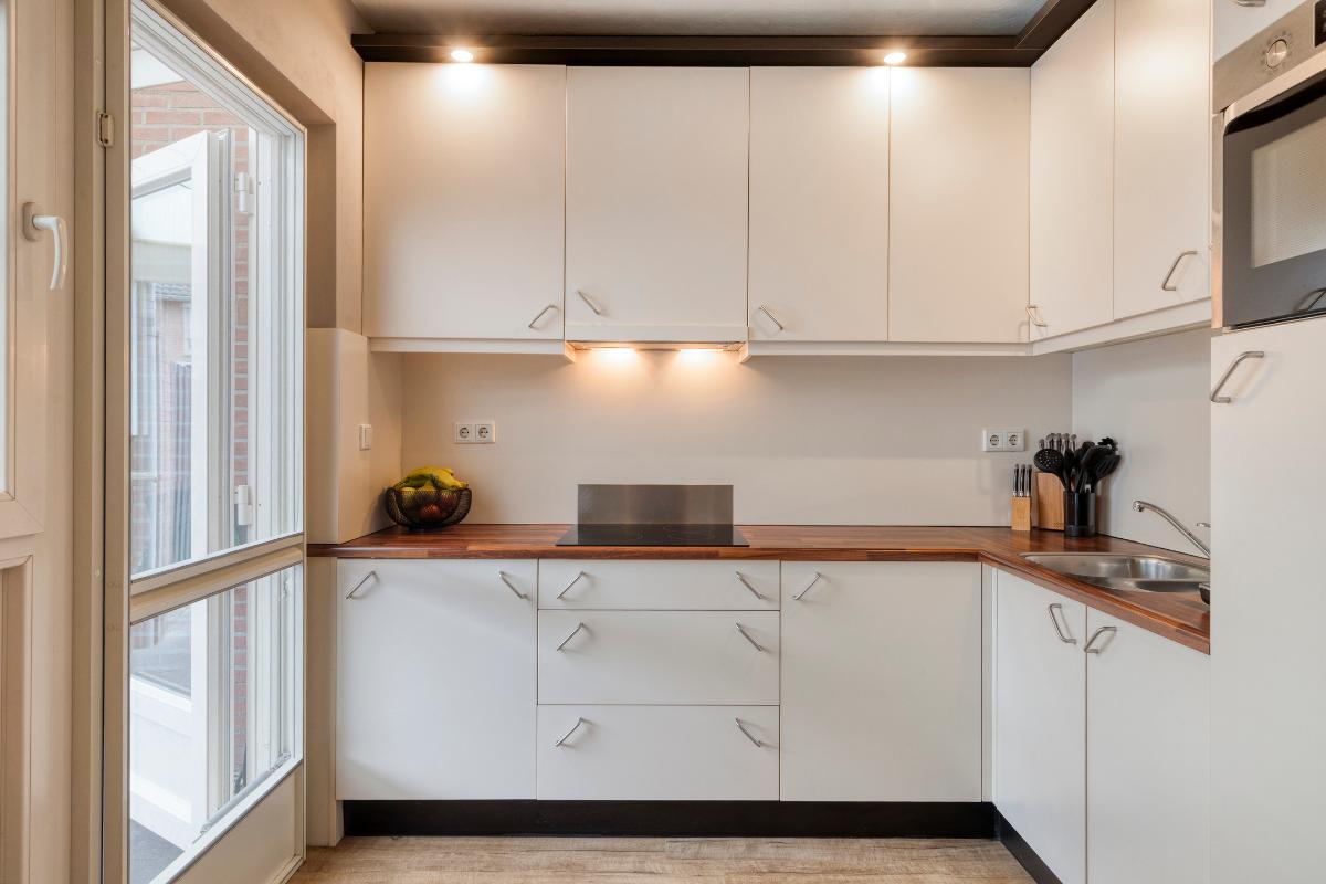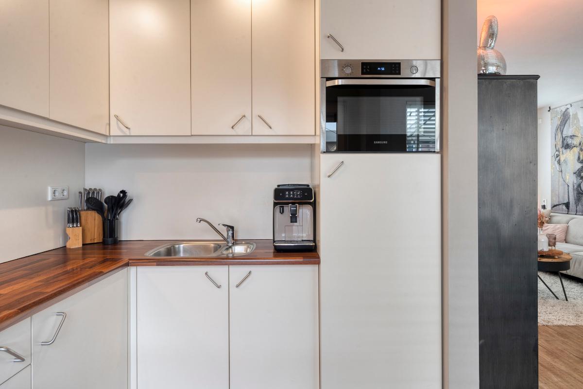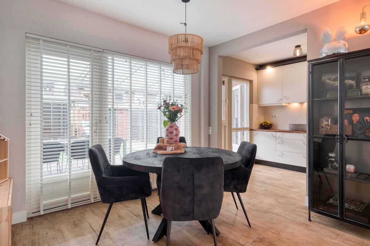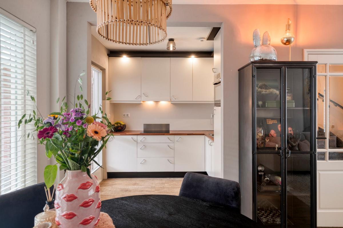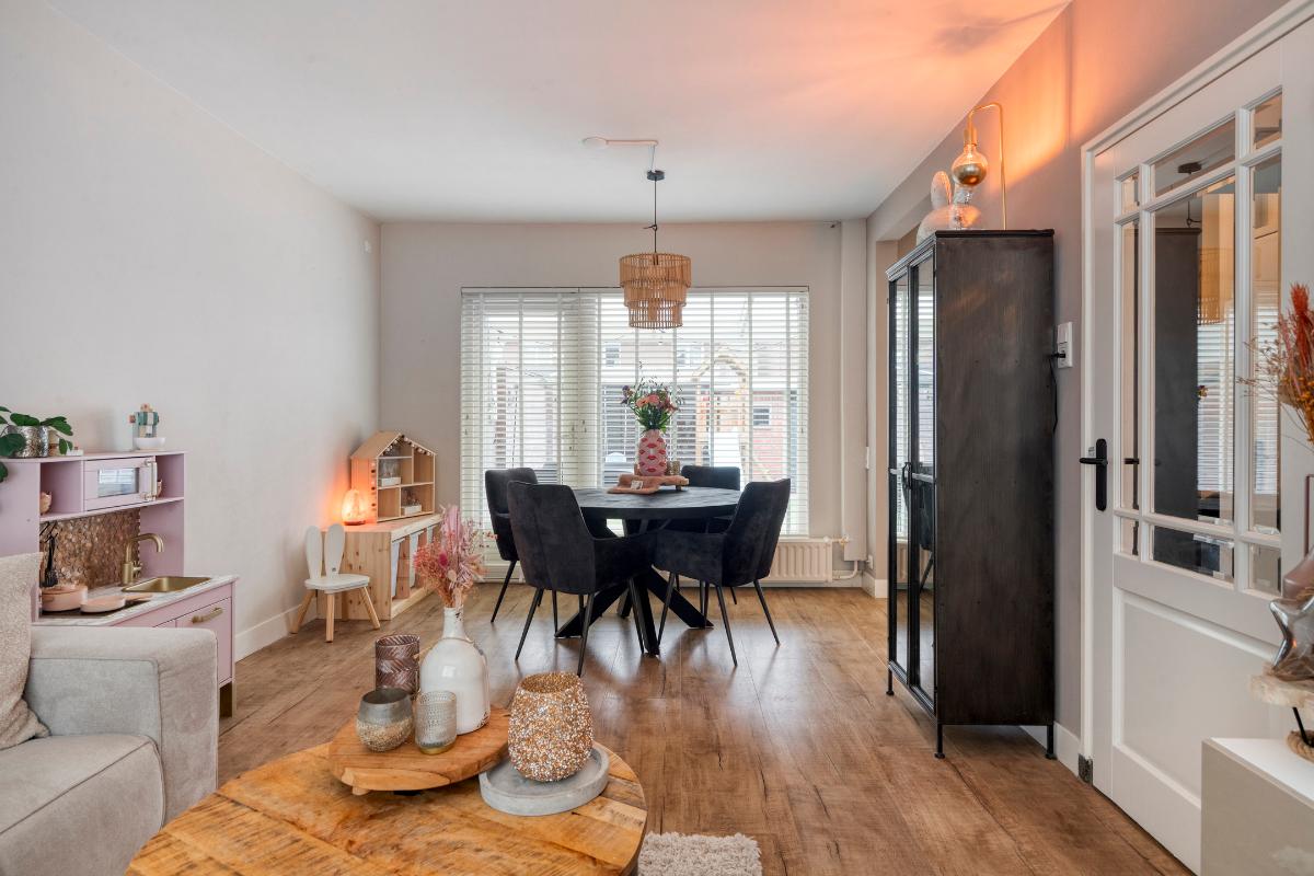 WOONKAMER/KEUKEN Lichte en sfeervolle woonkamer met aan de voorzijde het zitgedeelte en aan de achterzijde de eetkamer met open keuken. De keuken is geplaatst in hoekopstelling en v.v. inbouwapparatuur, waaronder een elektrische kookplaat, afzuigkap, combi oven-/magnetron, vaatwasser en inbouwkoelkast. Vanuit zowel de eethoek als de keuken is er een loopdeur aanwezig naar de tuin.