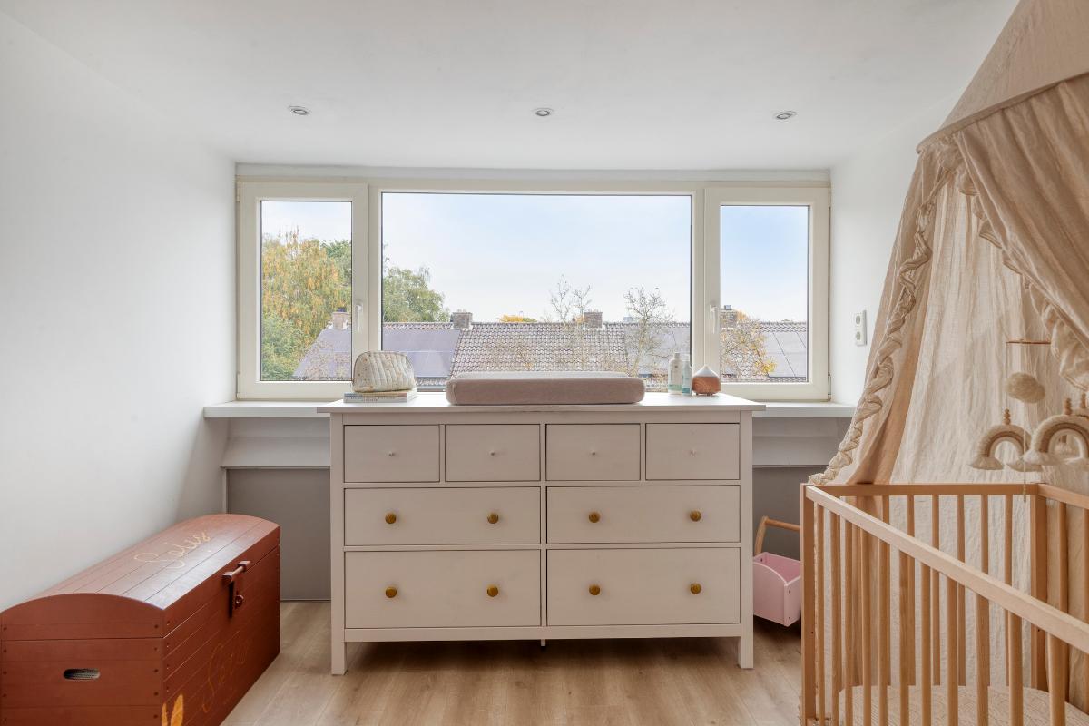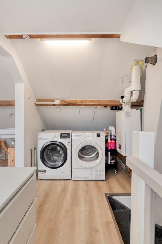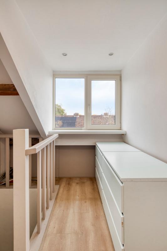 TWEEDE VERDIEPING Bereikbaar middels vaste trap. De zolderverdieping bestaat uit een voorzolder en een vierde slaapkamer. Voorzolder met opstelplaats C.V.-ketel (vernieuwd in 2025), aansluitingen voor was- en droogvoorzieningen, bergruimte en omvormer t.b.v. de zonnepanelen. De zolder is voorzien van een grote dakkapel waardoor er een ruime en lichte kamer is ontstaan. De gehele verdieping is afgewerkt met pleisterwerk wanden, stucwerk plafonds en een fraaie laminaatvloer.