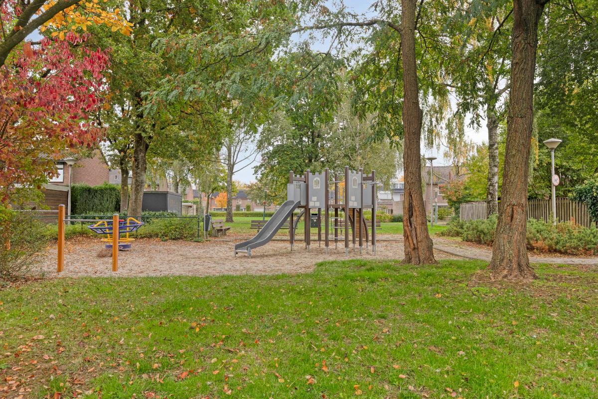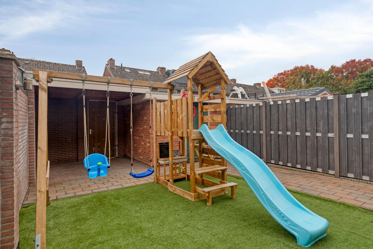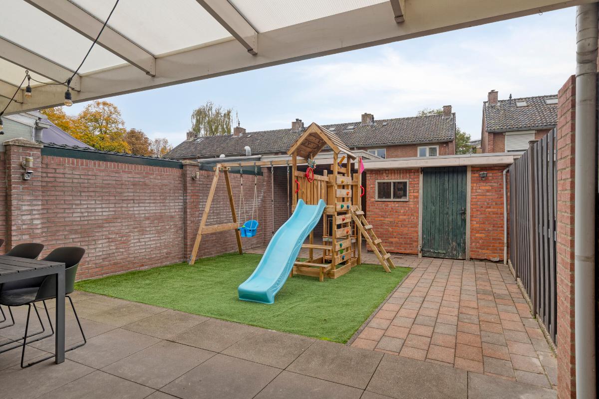 BUITENRUIMTE Zowel de voor- als de achtertuin zijn onderhoudsarm ingedeeld met o.a. sierbestrating, een kunstgazon, speeltoestel (ter overname), overkapping en vrijstaande stenen berging met eveneens een overkapping. De tuin biedt veel privacy en is gunstig gelegen op het zuidwesten.