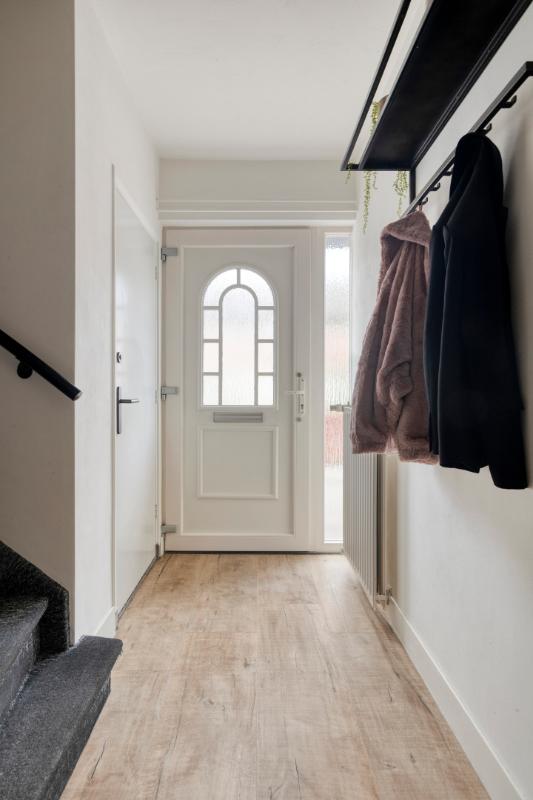HAL/ENTREE Overdekte entree, hal met toiletruimte voorzien van een wandcloset en fonteintje, praktische berg-/provisiekast met meterkast (voorzien van een vernieuwde groepenkast), trapopgang en doorloop naar de living.