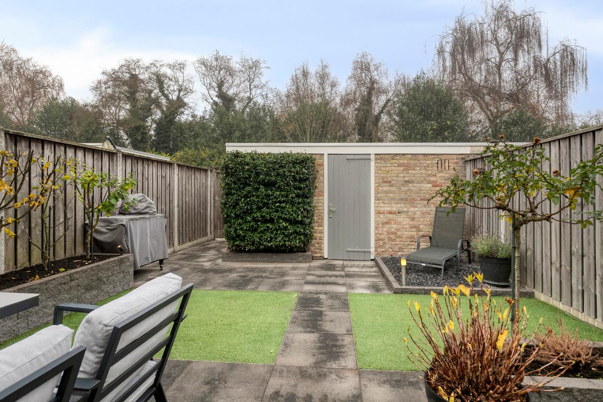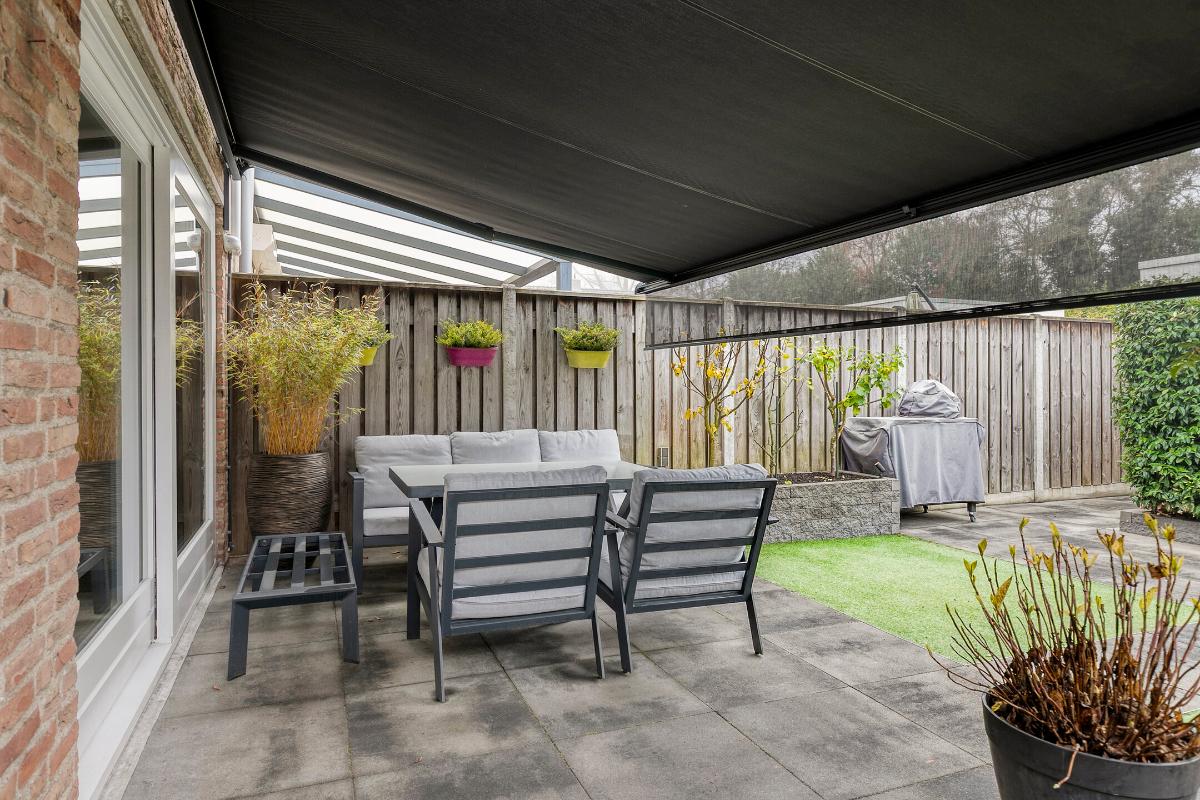 TUIN EN BERGING: De achtertuin is onderhoudsarm, mooi ruim terras met luxe nieuwe zonneluifel (elektrisch, valscherm en zonnescherm), borders met kleine bomen, grondbeplanting en verlichting, kunstgras, en een ruime berging met elektra. Tegen de zijkant op de gevel van de berging is er een aansluiting gemaakt voor de laadpaal. Achter het perceel ligt een garagepleintje waar kinderen lekker kunnen spelen.