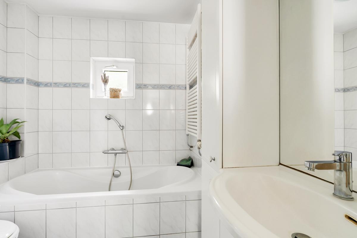 1e verdieping: Op de eerste verdieping vind je drie slaapkamers: één aan de voorzijde en twee aan de achterzijde. Allemaal voorzien van grote ramen. De slaapkamer aan de voorzijde is de op een na grootste van de drie. De twee slaapkamers aan de achterzijde zijn de grootste en de kleinste kamer, de grootste is goed te gebruiken als master bedroom en de kleinste kamer is in te delen als kinderkamer, werkkamer of hobbyruimte. Dankzij de ligging aan de tuinzijde is het er heerlijk stil. De badkamer is functioneel, met inloopdouche, ligbad, toilet, wastafelmeubel en spiegelkast.