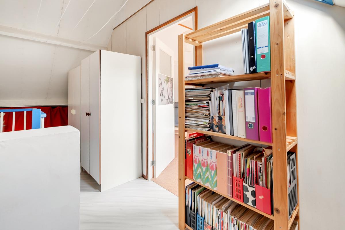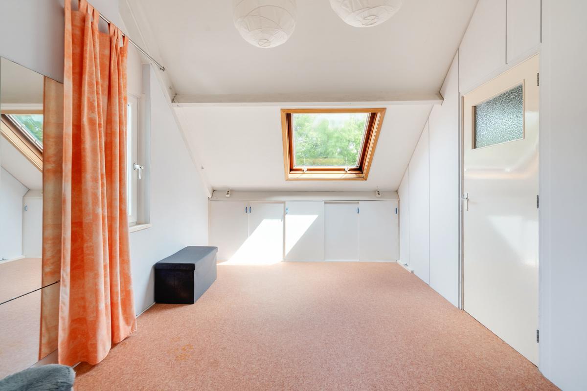 2e verdieping: De vaste dichte trap leidt naar een ruime zolderverdieping met een royale, vierde slaapkamer onder het schuine dak. Dankzij het grote dakraam is dit een lichte ruimte, perfect als tienerkamer, logeerkamer of studeerkamer. Maar ook op de overloop is ruimte voor een extra werkplek, wasrek en door de knieschotten is er ruim voldoende bergruimte.