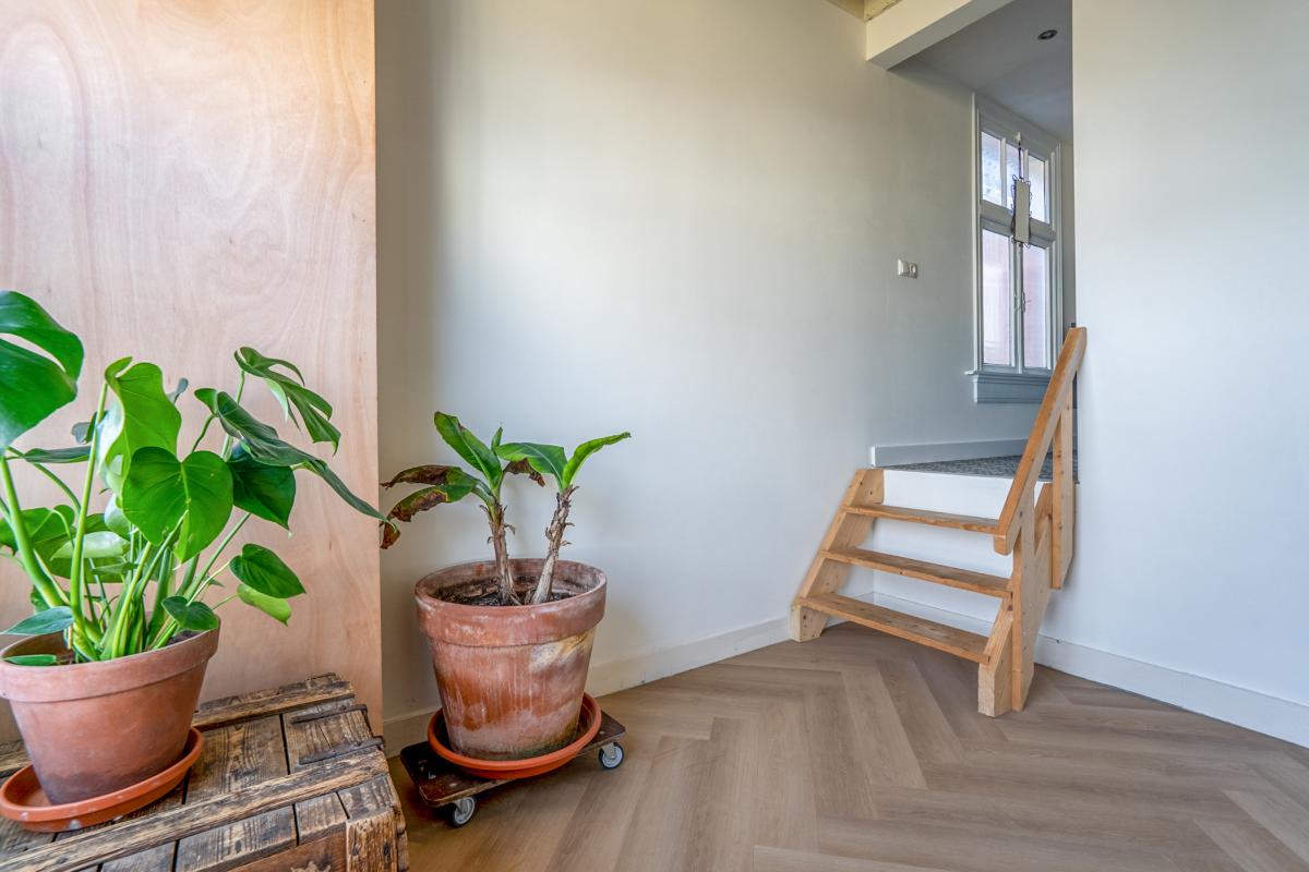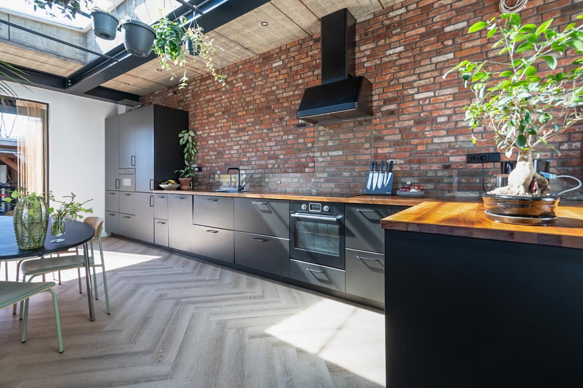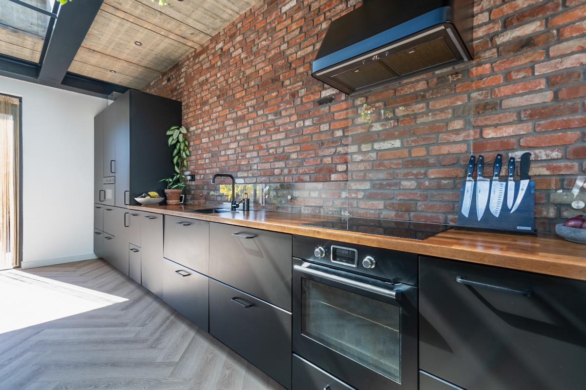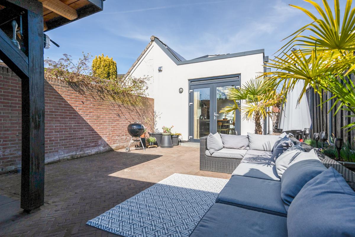 Begane grond: Zodra je binnenstapt, voel je het meteen: hier wil je gewoon wonen! En eerlijk? Dat snappen we helemaal. De sfeer, de afwerking, de details, alles klopt. De entree leidt je rechtdoor langs een praktische hal richting de gezellige woonkamer, maar in de entree heb je ook direct toegang tot een aparte voorkamer. Deze ruimte is perfect te gebruiken als thuiskantoor, speelkamer of logeerkamer. Vanuit deze kamer heb je ook toegang tot het toilet en een handige wasruimte met wasmachine aansluiting. Beide liggen op een verhoogd gedeelte, wat je het gevoel geeft dat je in een stijlvol hotel of luxe restaurant bent beland. De woonkamer is knus en sfeervol, met een fraaie haard en een vleugje vintage charme. De moderne visgraatvloer zorgt voor een chique uitstraling, gecombineerd met de authentieke glas-in-looddeuren die karakter en warmte toevoegen aan het geheel. Je zakt lekker weg op de bank, je voeten omhoog, drankje erbij en genieten maar. Extra fijn, in de winter hoef je niet bang te zijn voor koude voeten, want het huis is gedeeltelijk voorzien van vloerverwarming. En in de zomer is het heerlijk koel door de airco. Dan door naar de keuken. WAUW! Deze keuken lijkt zo uit een woonmagazine te komen. Een echte industriële eyecatcher met een stoere bakstenen muur, een robuust kookeiland en een glazen dak dat een zee aan natuurlijk licht binnenlaat. De open indeling, het luxe werkblad en moderne apparatuur maken van koken een feestje. Je vindt hier onder andere een ingebouwde oven, inductieplaat, afzuigkap, koelkast, vriezer, magnetron en vaatwasser. Alles wat je nodig hebt, en meer. Hier ga je van “ik hou niet van koken” naar “ik open binnenkort mijn eigen restaurant”. De grote openslaande glazen tuindeuren zorgen ervoor dat binnen en buiten naadloos in elkaar overlopen. Want geef toe, waarom kiezen tussen woonkamer of tuin, als je ook van beide tegelijk kunt genieten.