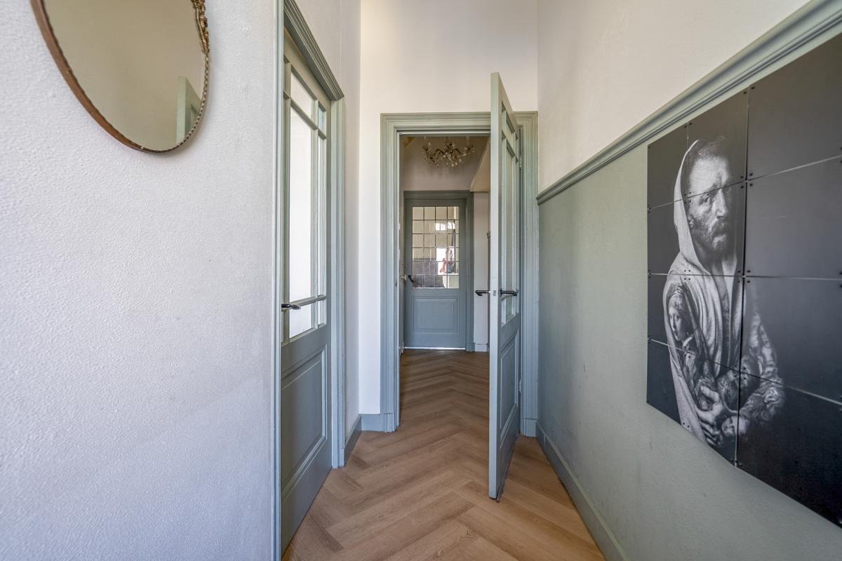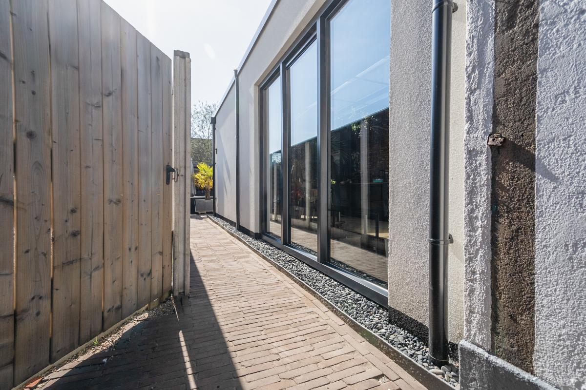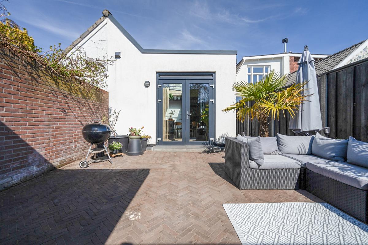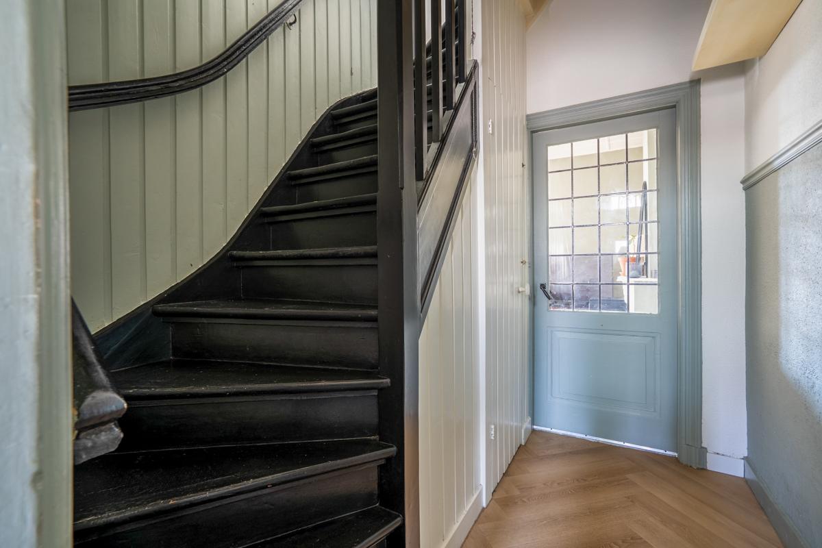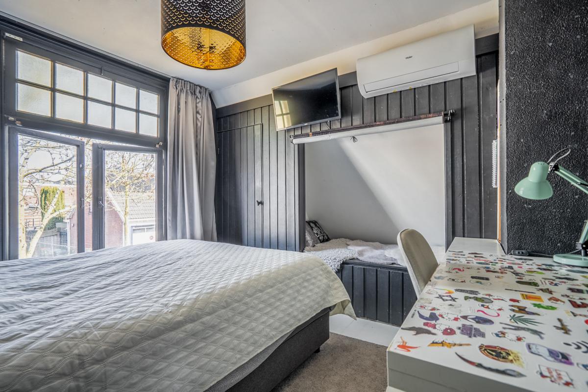 Begane grond: Zodra je binnenstapt, voel je het meteen: hier wil je gewoon wonen! En eerlijk? Dat snappen we helemaal. De sfeer, de afwerking, de details, alles klopt. De entree leidt je rechtdoor langs een praktische hal richting de gezellige woonkamer, maar in de entree heb je ook direct toegang tot een aparte voorkamer. Deze ruimte is perfect te gebruiken als thuiskantoor, speelkamer of logeerkamer. Vanuit deze kamer heb je ook toegang tot het toilet en een handige wasruimte met wasmachine aansluiting. Beide liggen op een verhoogd gedeelte, wat je het gevoel geeft dat je in een stijlvol hotel of luxe restaurant bent beland. De woonkamer is knus en sfeervol, met een fraaie haard en een vleugje vintage charme. De moderne visgraatvloer zorgt voor een chique uitstraling, gecombineerd met de authentieke glas-in-looddeuren die karakter en warmte toevoegen aan het geheel. Je zakt lekker weg op de bank, je voeten omhoog, drankje erbij en genieten maar. Extra fijn, in de winter hoef je niet bang te zijn voor koude voeten, want het huis is gedeeltelijk voorzien van vloerverwarming. En in de zomer is het heerlijk koel door de airco. Dan door naar de keuken. WAUW! Deze keuken lijkt zo uit een woonmagazine te komen. Een echte industriële eyecatcher met een stoere bakstenen muur, een robuust kookeiland en een glazen dak dat een zee aan natuurlijk licht binnenlaat. De open indeling, het luxe werkblad en moderne apparatuur maken van koken een feestje. Je vindt hier onder andere een ingebouwde oven, inductieplaat, afzuigkap, koelkast, vriezer, magnetron en vaatwasser. Alles wat je nodig hebt, en meer. Hier ga je van “ik hou niet van koken” naar “ik open binnenkort mijn eigen restaurant”. De grote openslaande glazen tuindeuren zorgen ervoor dat binnen en buiten naadloos in elkaar overlopen. Want geef toe, waarom kiezen tussen woonkamer of tuin, als je ook van beide tegelijk kunt genieten.