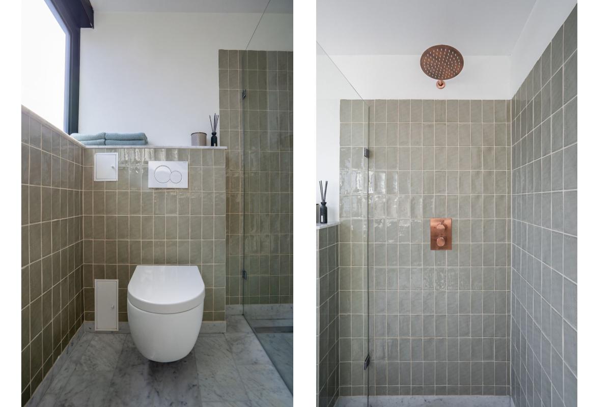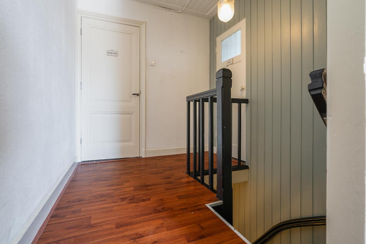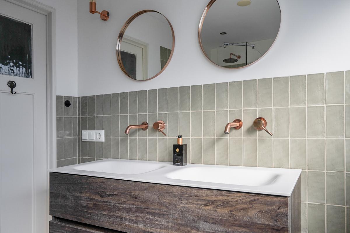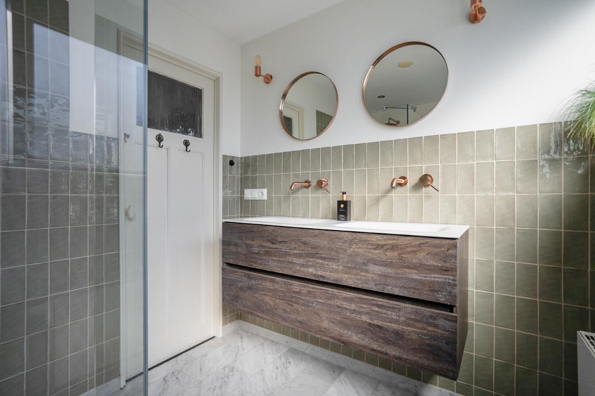 1e verdieping: Boven, voorbij de laatste traptrede, begint een nieuw hoofdstuk van het huis, de verdieping waar dromen wonen. Aan de voorzijde van het huis vind je een bijzondere kamer: de kamer van het verborgen geheim. Achter de deur schuilt een ruimte die meer biedt dan je op het eerste gezicht zou vermoeden. Een vaste kast zorgt ervoor dat alles netjes en opgeruimd blijft. Maar wie goed kijkt ontdekt nog iets bijzonders, de sfeervolle bedstee. Deze knusse nis nodigt uit tot relaxen, dromen, verstoppen of om je helemaal terug te trekken met een deken en een goed boek. Dan de andere kamer aan de achterzijde van de woning met uitzicht over de achtertuin, deze kamer is ruim genoeg voor een tweepersoons bed. En last but not least, op deze verdieping vind je ook de badkamer. Geen doorsnee badkamer maar een hippe en trendy badkamer. Met groene glinsterende tegels en fonkelende koperkleurige kranen. De dubbele waskommen, het moderne toilet en de royale inloopdouche maken het plaatje helemaal compleet.