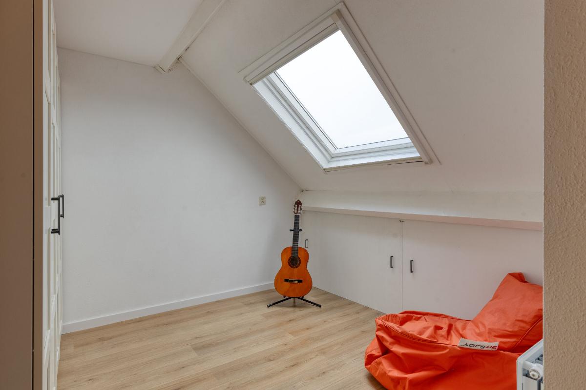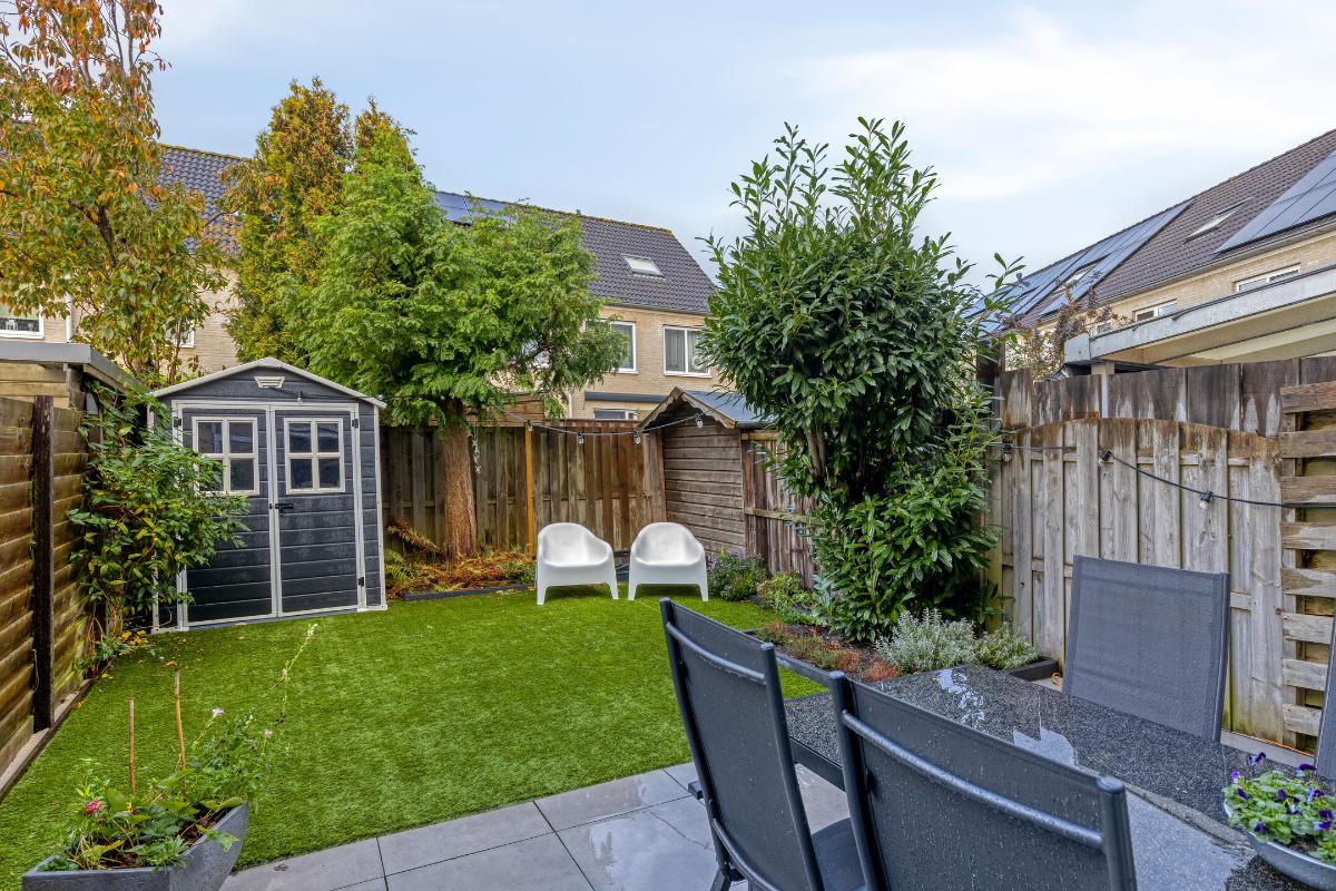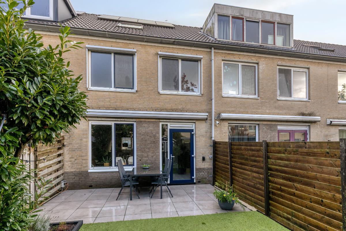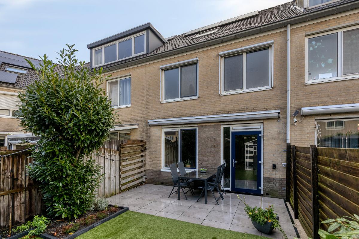 Feiten op een rij: - Woonoppervlakte ca. 120 m², perceel ca. 125 m²; - Energielabel A; - 7 zonnepanelen met micro-omvormers (2022); - Parkeren direct voor de deur op eigen terrein; - Veel opslagruimte beschikbaar door de zeer ruime bergvliering; - Achtertuin op het zuidwesten, vernieuwd in 2024 met kunstgras, elektrische zonwering (Shelly) en achterom; - Gehele woning is voorzien van zonwering en van horren (op 1 raam na); - Stenen berging met nieuw dak (2024); - Begane grond: PVC-vloer met vloerverwarming, kunststof achterdeur HR++, meterkast vernieuwd en verzwaard (2020), glasvezel, modern toilet; - Keuken met losse apparatuur: inductiekookplaat, vaatwasser (nieuw), koel-vries, vernieuwd aanrechtblad, kraan, wasbak en afzuigkap (2020), koffiebarretje toegevoegd; - Eerste verdieping: drie ruime slaapkamers, nette laminaatvloer, badkamer met douchecabine (stortdouche), wastafel, toilet en handdoekradiator, handmatige screens achterzijde; - Tweede verdieping: twee slaapkamers, laminaatvloer, dakramen met HR-glas, overloop met wma, knieschotten (2020), plafond geïsoleerd, CV Topmodel Vaillant (2024), MV-box vervangen (2020); - Aluminium kozijnen met dubbel glas (BG en 1e verdieping); - Zonwering met zuignappen ter overname; - Winkels op loopafstand.