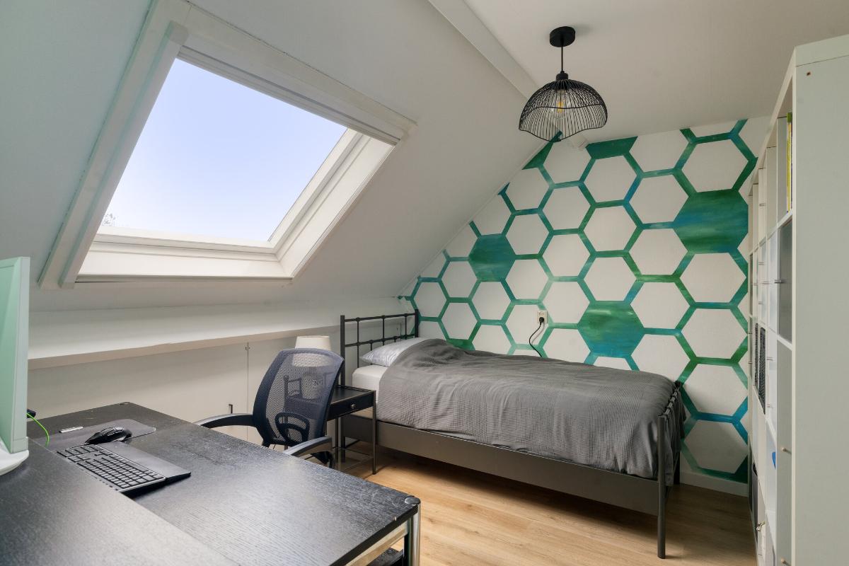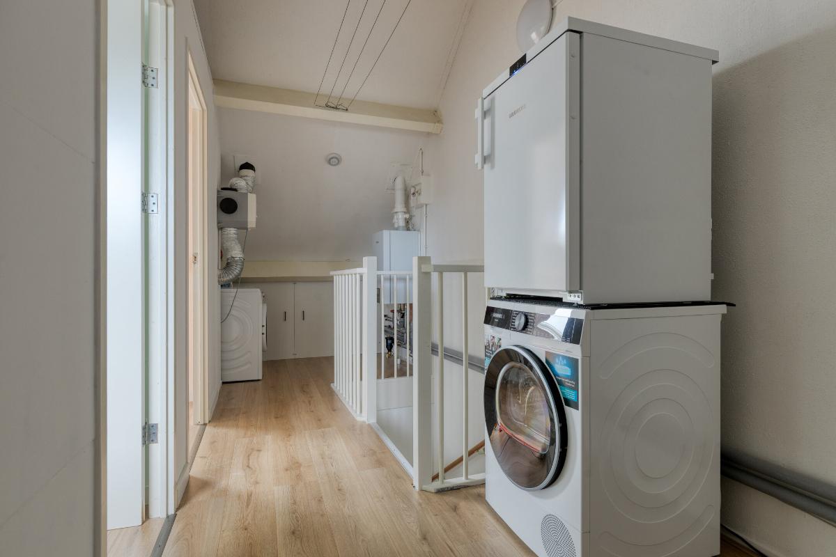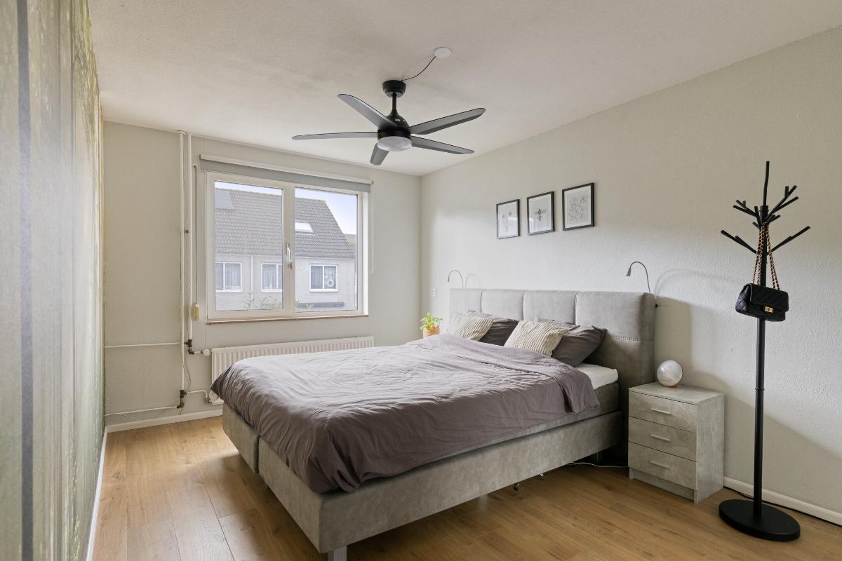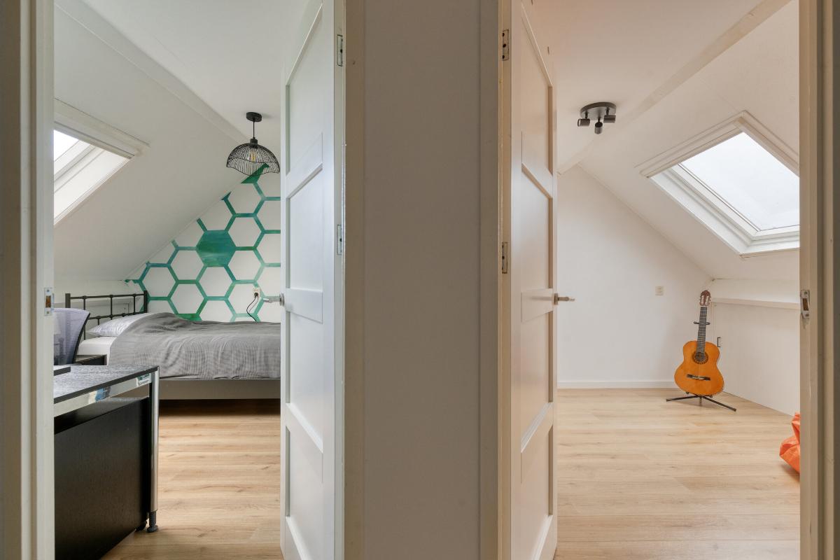 Feiten op een rij: - Woonoppervlakte ca. 120 m², perceel ca. 125 m²; - Energielabel A; - 7 zonnepanelen met micro-omvormers (2022); - Parkeren direct voor de deur op eigen terrein; - Veel opslagruimte beschikbaar door de zeer ruime bergvliering; - Achtertuin op het zuidwesten, vernieuwd in 2024 met kunstgras, elektrische zonwering (Shelly) en achterom; - Gehele woning is voorzien van zonwering en van horren (op 1 raam na); - Stenen berging met nieuw dak (2024); - Begane grond: PVC-vloer met vloerverwarming, kunststof achterdeur HR++, meterkast vernieuwd en verzwaard (2020), glasvezel, modern toilet; - Keuken met losse apparatuur: inductiekookplaat, vaatwasser (nieuw), koel-vries, vernieuwd aanrechtblad, kraan, wasbak en afzuigkap (2020), koffiebarretje toegevoegd; - Eerste verdieping: drie ruime slaapkamers, nette laminaatvloer, badkamer met douchecabine (stortdouche), wastafel, toilet en handdoekradiator, handmatige screens achterzijde; - Tweede verdieping: twee slaapkamers, laminaatvloer, dakramen met HR-glas, overloop met wma, knieschotten (2020), plafond geïsoleerd, CV Topmodel Vaillant (2024), MV-box vervangen (2020); - Aluminium kozijnen met dubbel glas (BG en 1e verdieping); - Zonwering met zuignappen ter overname; - Winkels op loopafstand.