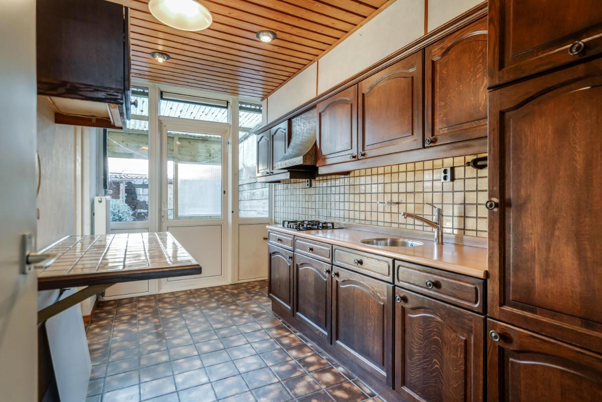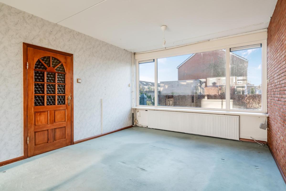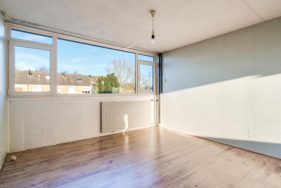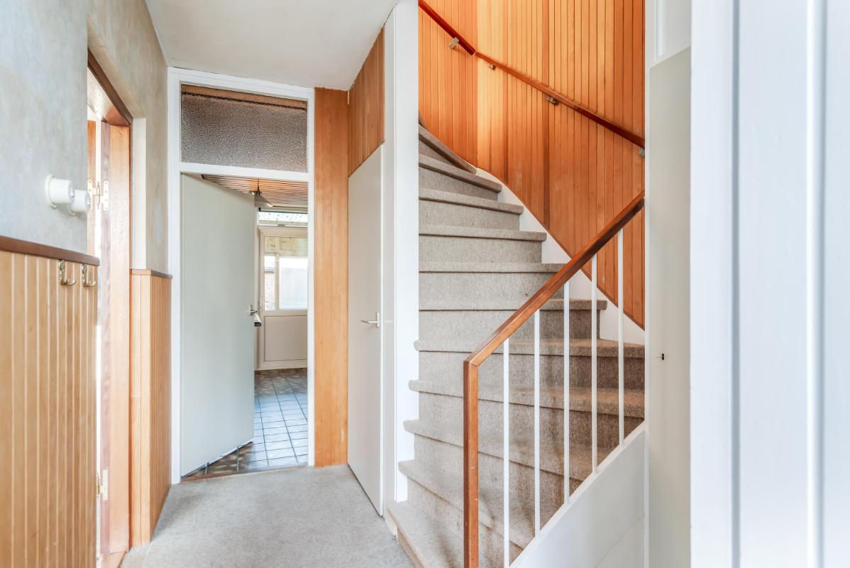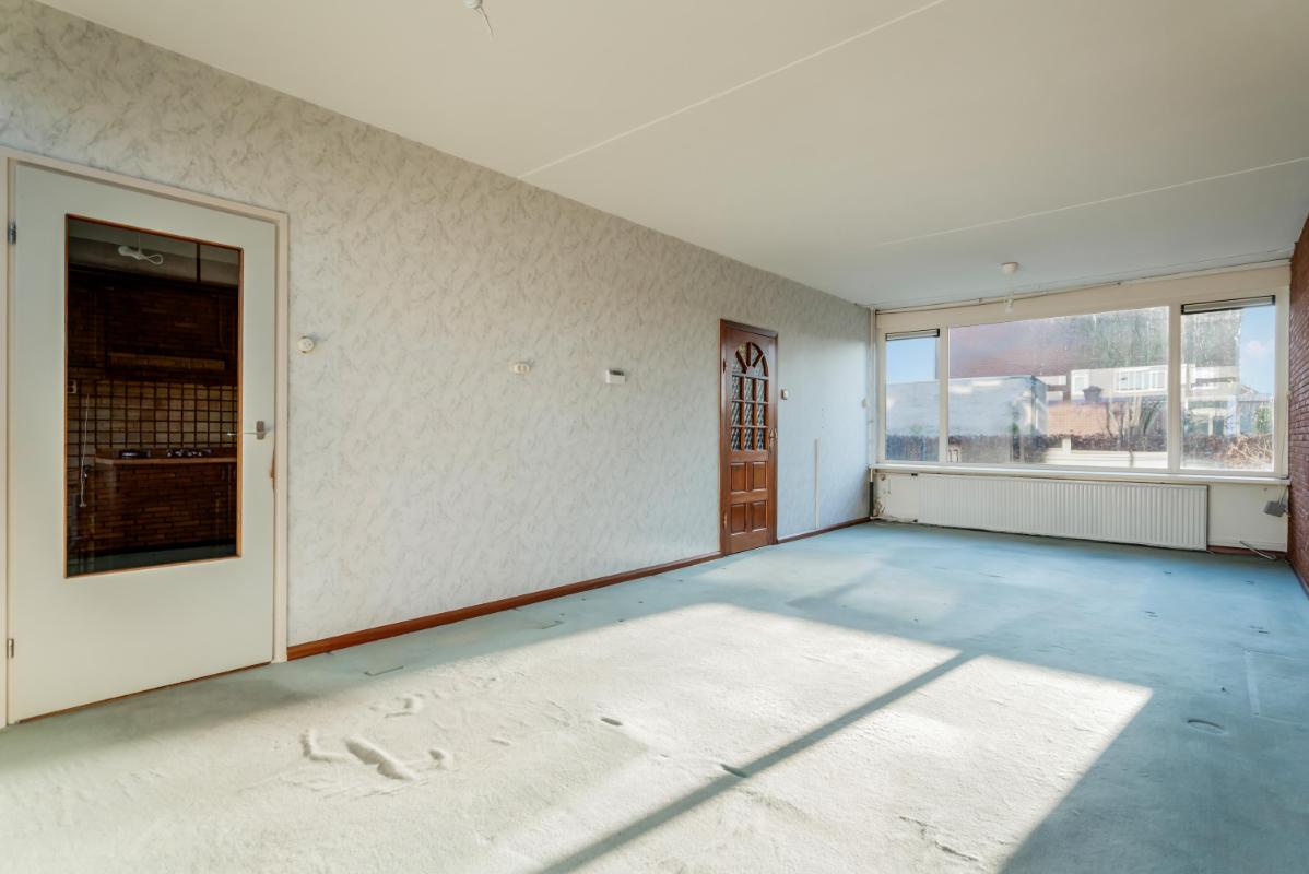 Je komt binnen in de hal met de meterkast, toiletruimte en trapopgang. Vanuit hier stap je de woonkamer binnen: een ruime en lichte plek met grote ramen aan de voor- en achterzijde. De afwerking is eenvoudig en gedateerd. Aan de achterzijde ligt de dichte keuken, deze ruimte is functioneel en biedt volop mogelijkheden om te moderniseren.