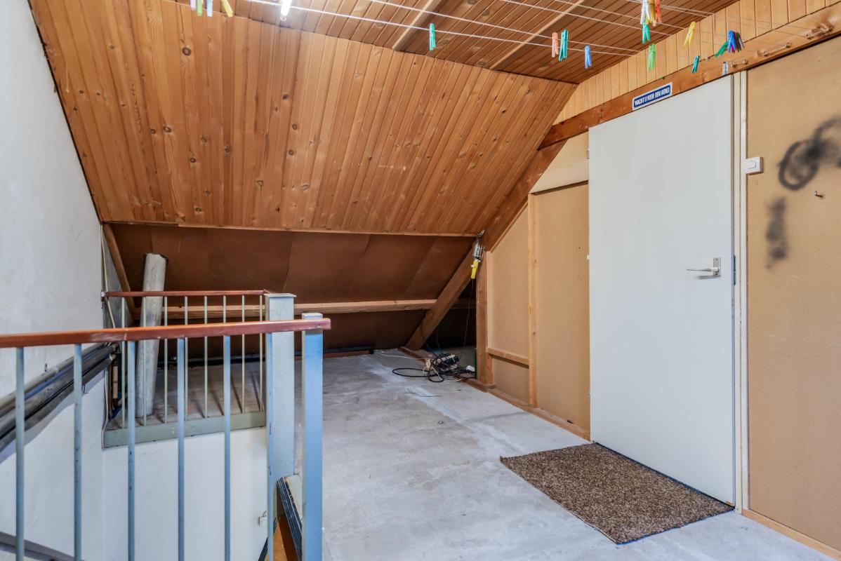 De zolderverdieping is bereikbaar via een vaste trap. Je komt eerst op een voorzolder met bergruimte. Vervolgens kom je in de vierde slaapkamer met dakraam.