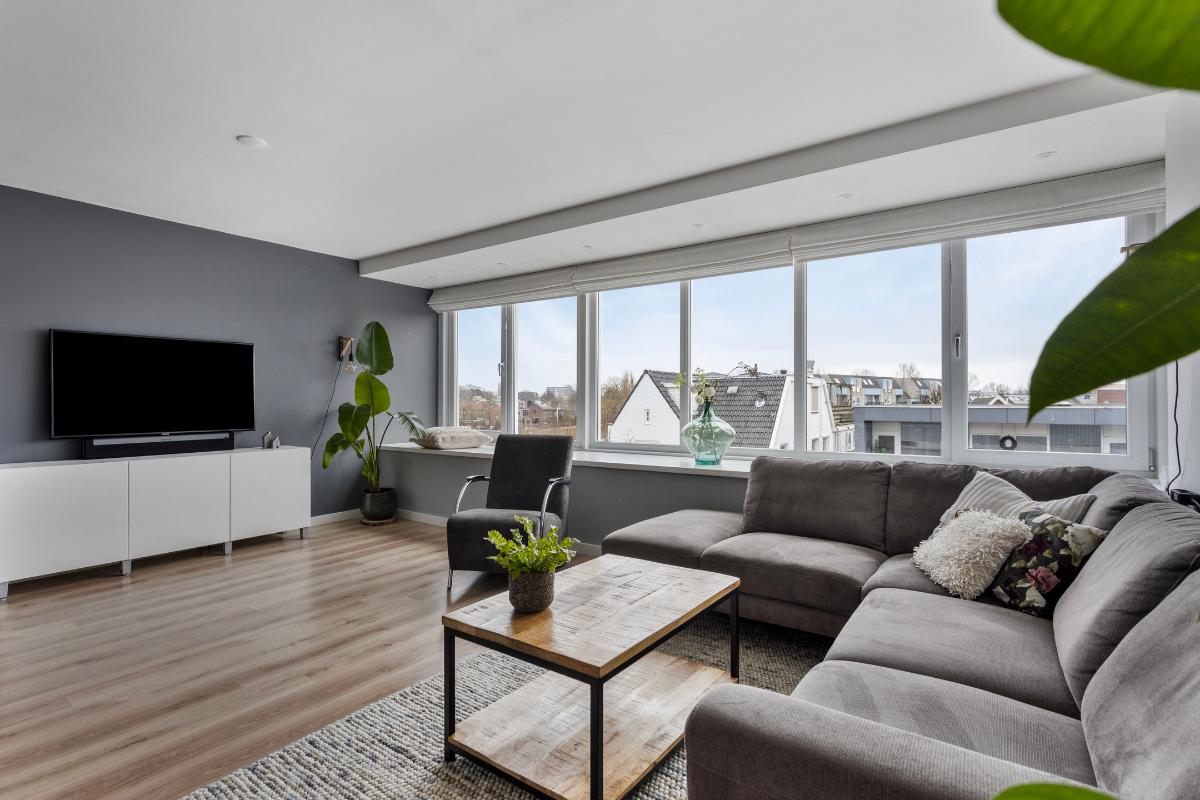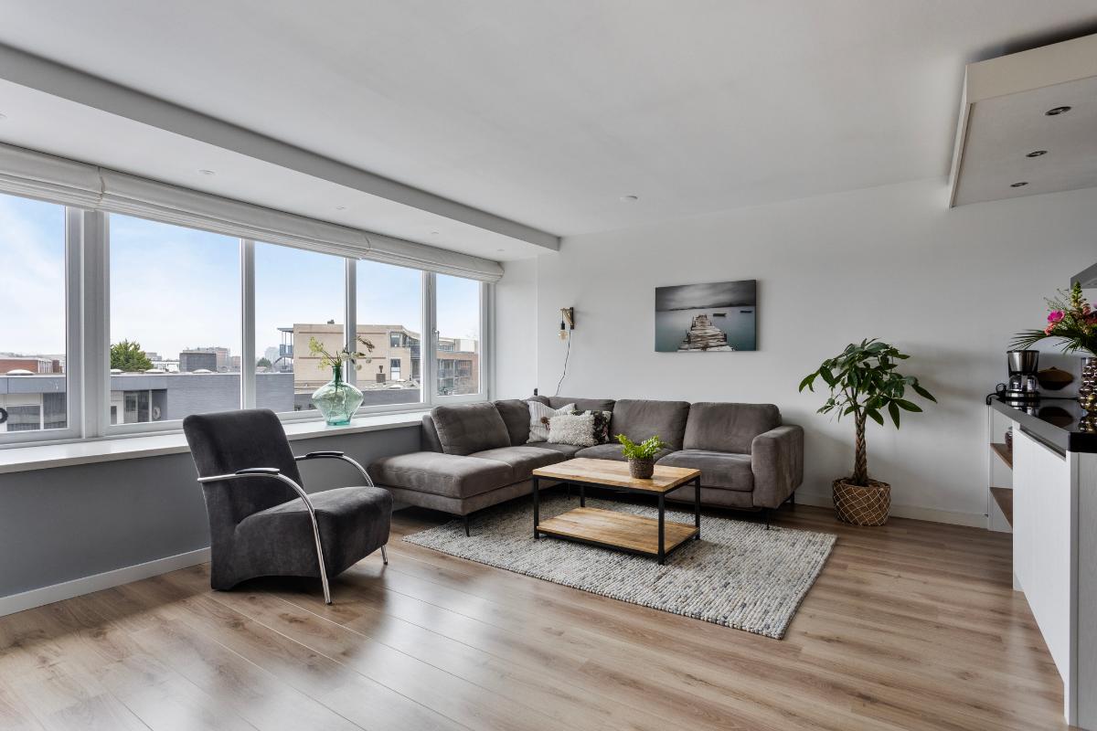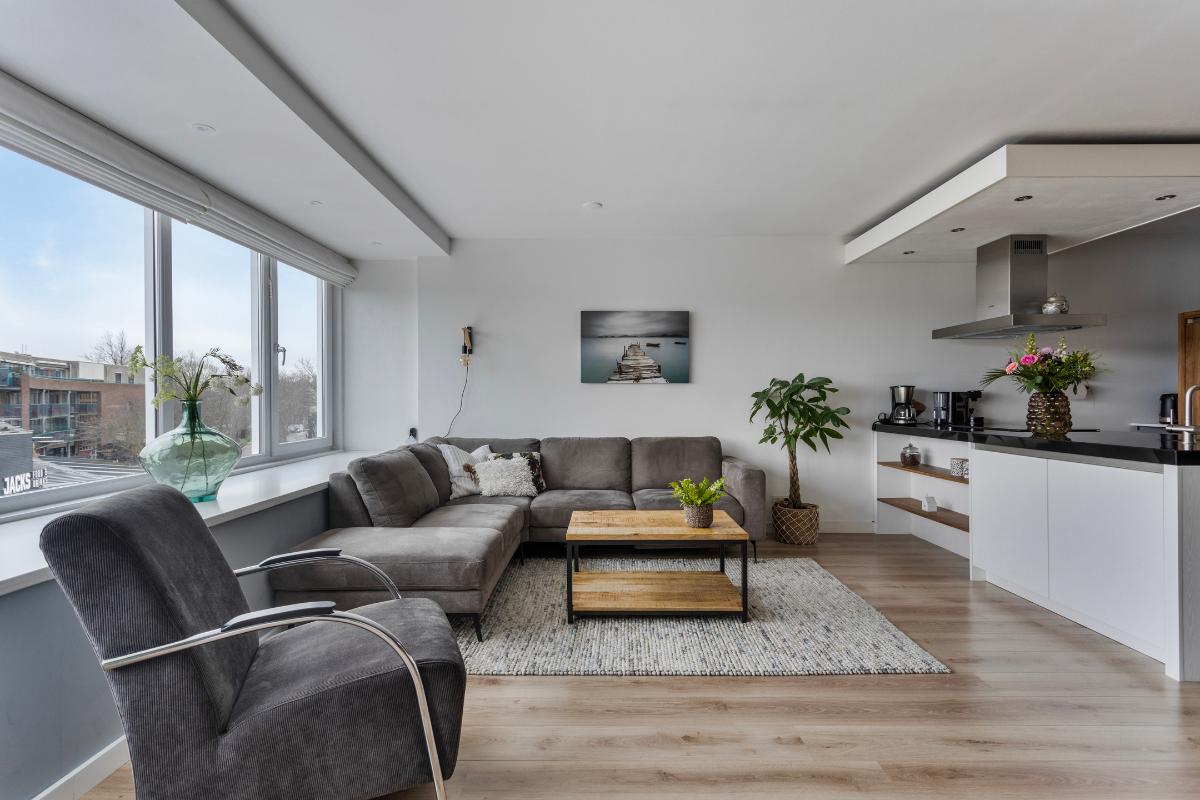 Tweede verdieping: terras, meterkast, entree appartement, hal, twee slaapkamers waarvan één met vaste kast, aparte ruimte met opstelling/aansluiting wasmachine/droger en boiler (100 liter), separaat toilet, badkamer v.v. wastafel met meubel en inloopdouche, toegang naar royale woonkamer met open keuken met kook/spoel schiereiland en v.v. inbouwapparatuur.