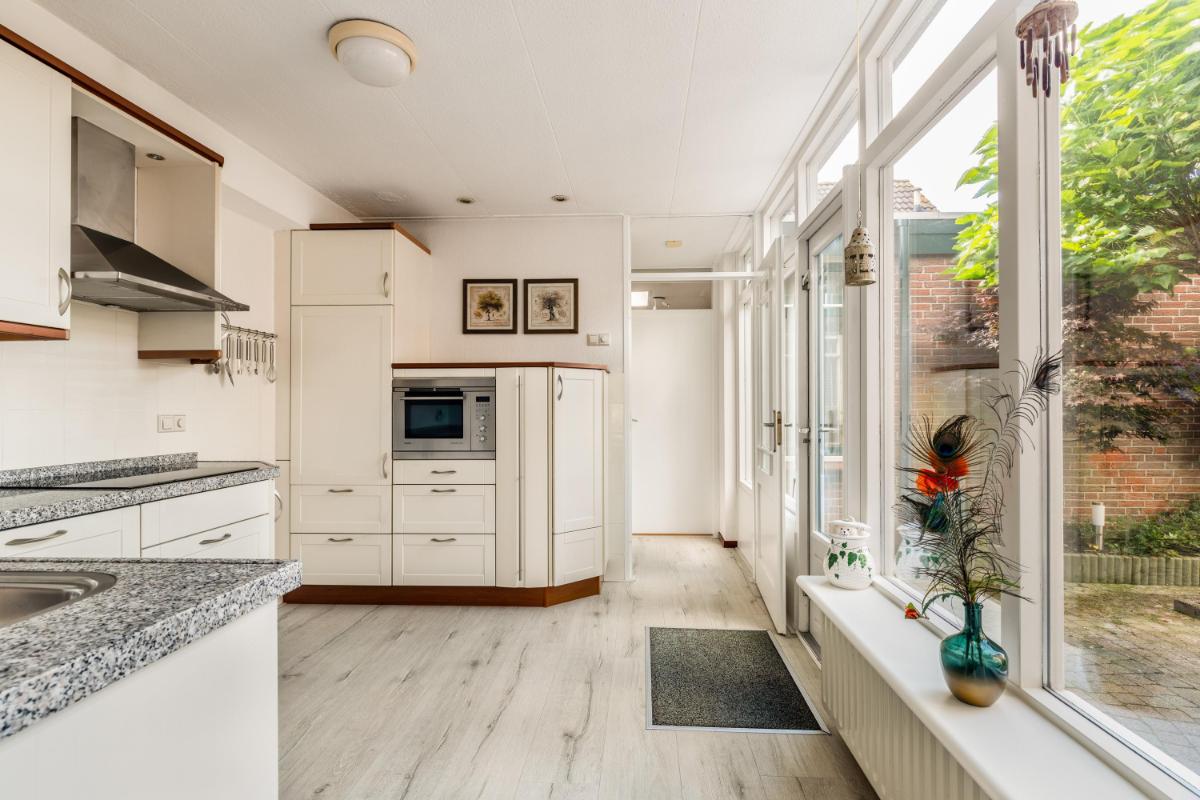 Aansluitend aan de keuken vind je een gezellige, beschutte patio op het zuidwesten – een heerlijke plek om buiten te eten, een boek te lezen of te genieten van de middagzon in alle privacy.