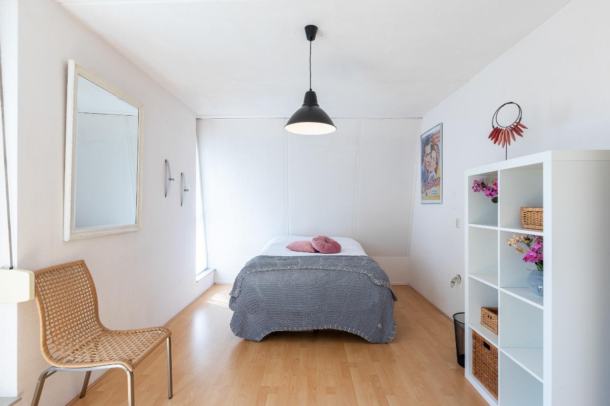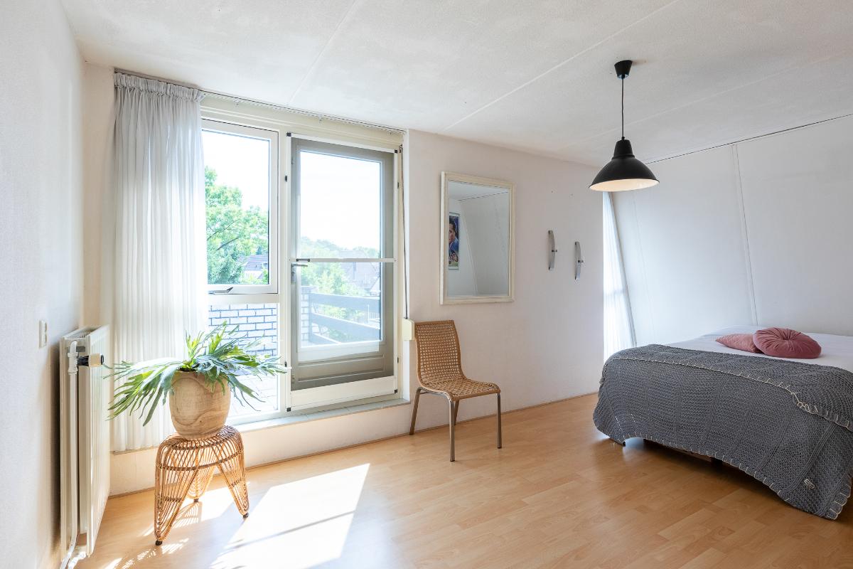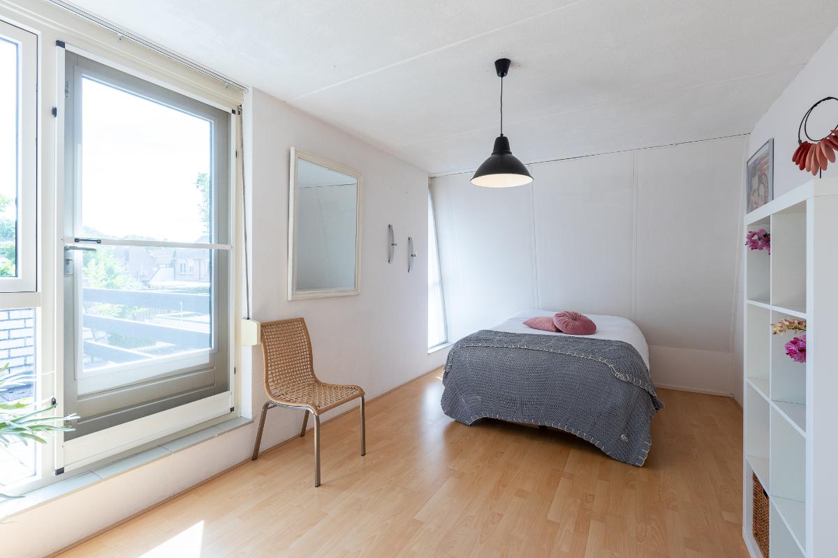 Slaapkamers Op deze verdieping bevinden zich twee ruime slaapkamers, beide voorzien van een laminaatvloer en neutrale wandafwerking. Dankzij de grote ramen zijn de kamers licht en prettig in gebruik. Eén van de slaapkamers beschikt bovendien over toegang tot een zonnig dakterras: een extra buitenruimte die veel privacy biedt en ideaal is voor een rustig moment in de zon. Deze slaapkamer beschikt over een rolluik naar het dakterras.