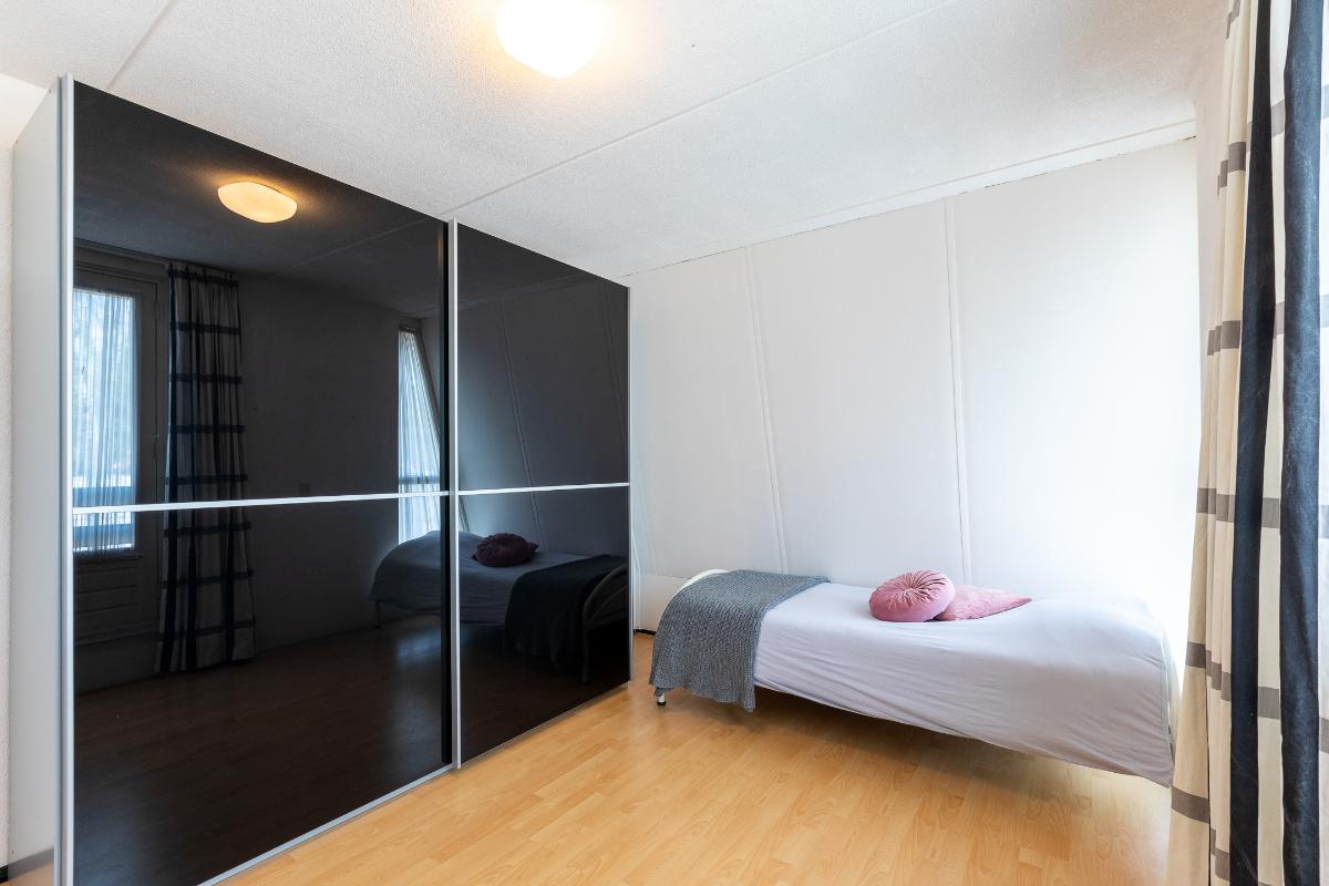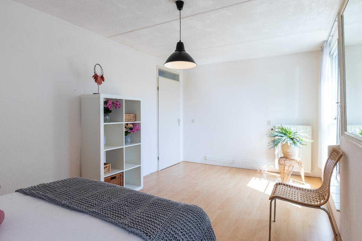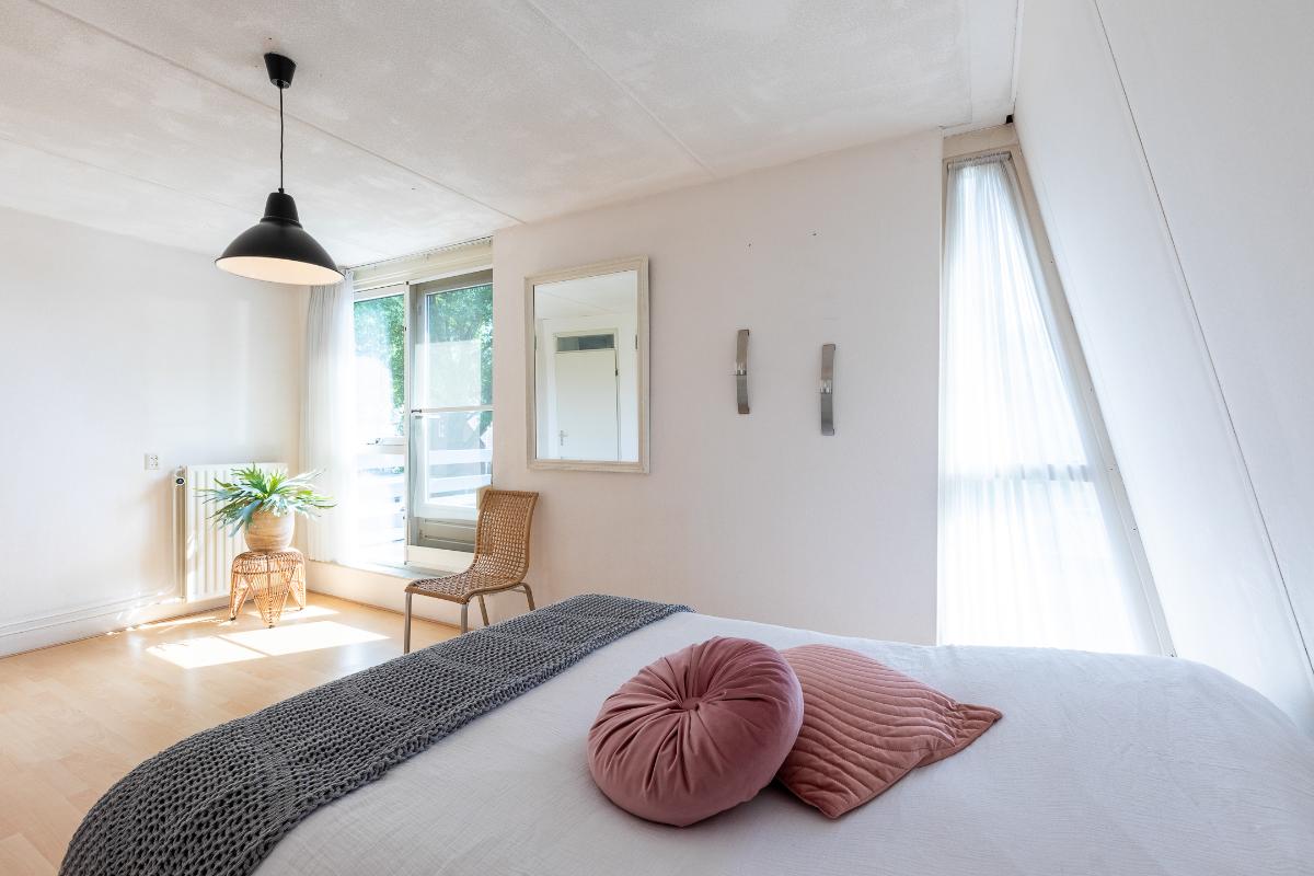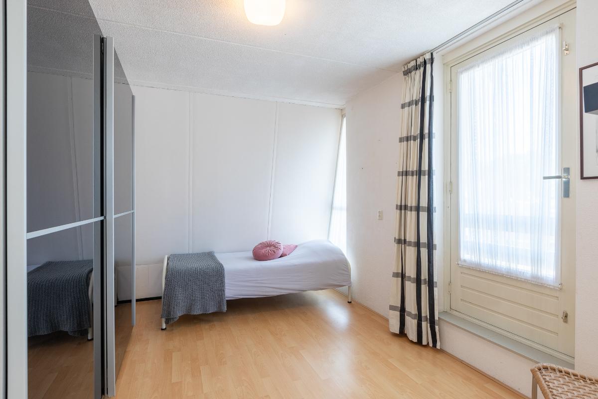 Slaapkamers Op deze verdieping bevinden zich twee ruime slaapkamers, beide voorzien van een laminaatvloer en neutrale wandafwerking. Dankzij de grote ramen zijn de kamers licht en prettig in gebruik. Eén van de slaapkamers beschikt bovendien over toegang tot een zonnig dakterras: een extra buitenruimte die veel privacy biedt en ideaal is voor een rustig moment in de zon. Deze slaapkamer beschikt over een rolluik naar het dakterras.