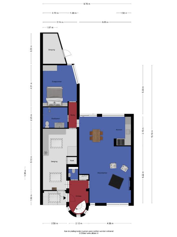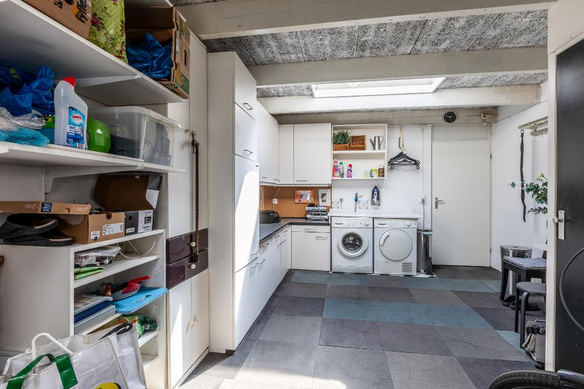 Portaal Grenzend aan de eetkamer bevinden zich een praktische bijkeuken en een inpandige berging. Hier vindt u ruimte voor extra apparatuur, voorraad of het stallen van fietsen. Dit maakt het geheel extra functioneel en compleet.