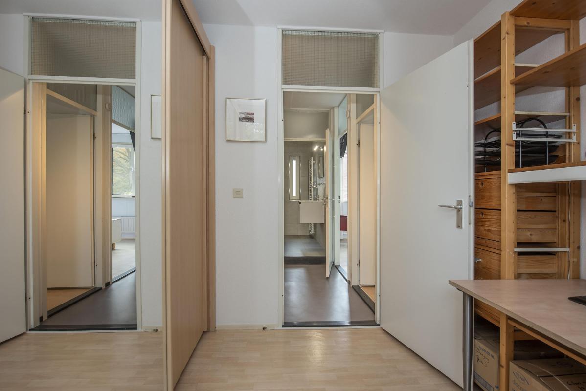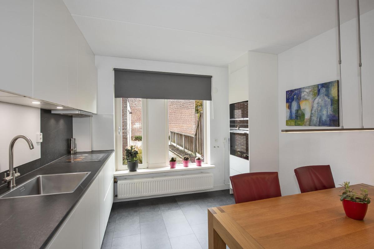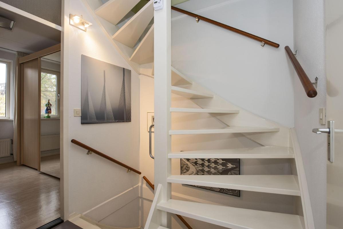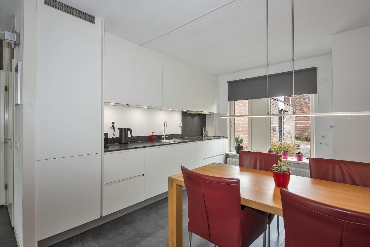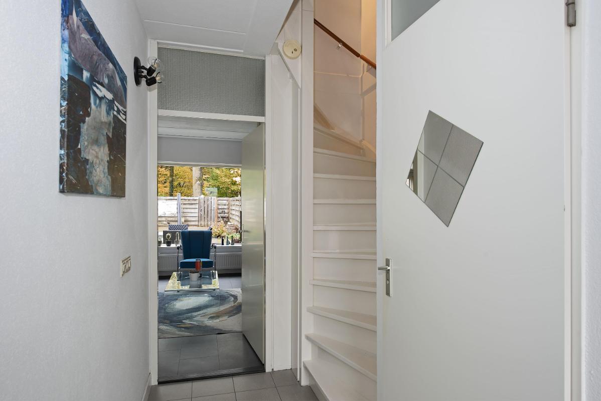 Licht en praktisch ingedeeld Bij binnenkomst kom je in de hal met toegang tot het toilet en de trapopgang. De woonkamer en keuken zijn voorzien van een pvc vloer (2020). De open keuken (2020) bevindt zich aan de voorzijde van de woning en is ingericht met een inductie kookplaat, afzuigkap, magnetron, oven, vaatwasser, koelkast en vriezer. De woonkamer ligt aan de achterzijde en biedt plek voor een ruime zithoek en eethoek. Via de deur in de woonkamer loop je zo de tuin in — ideaal op een zonnige dag.