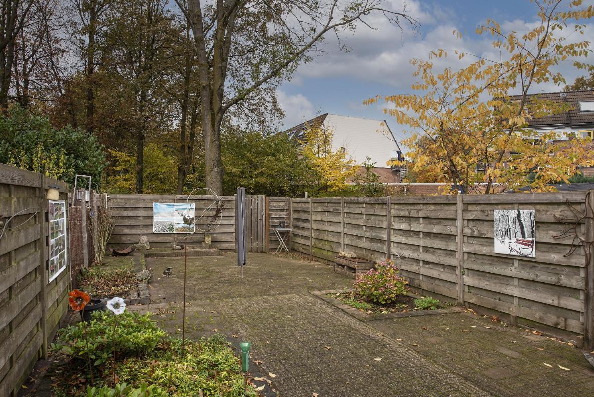 Tuin en berging De achtertuin is verzorgd aangelegd en biedt een fijne plek om buiten te zitten. Aan de voorzijde van de woning bevindt zich een berging, ideaal voor fietsen en tuinspullen.