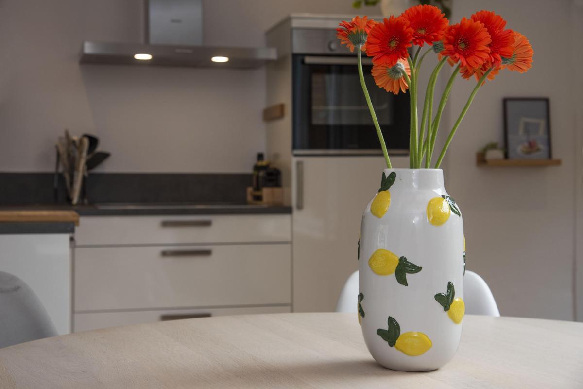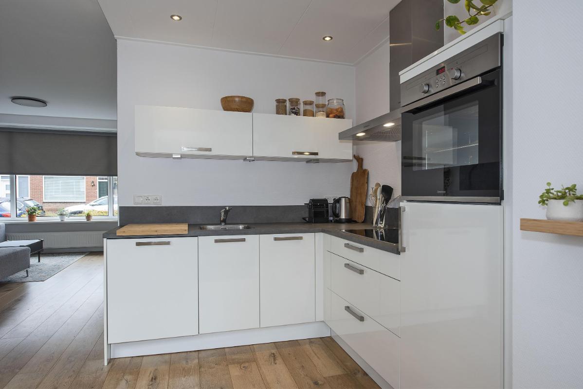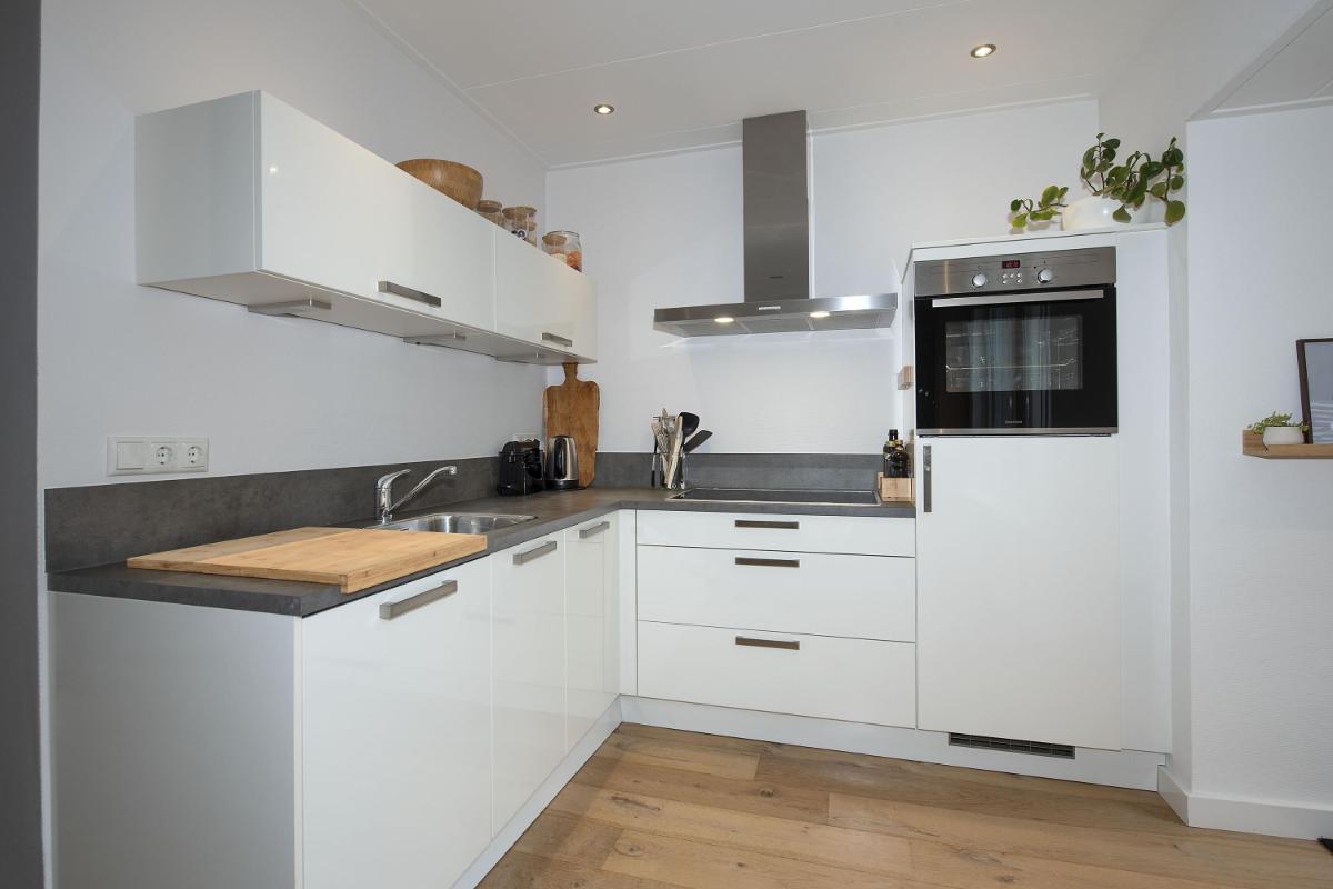 Licht en leefruimte De woonkamer is ruim, licht en praktisch ingedeeld. De halfopen keuken sluit hier mooi op aan en is in 2018 vernieuwd – helemaal van nu en met nette inbouwapparatuur. Een plek waar koken, kletsen en samen eten vanzelf samenkomen.