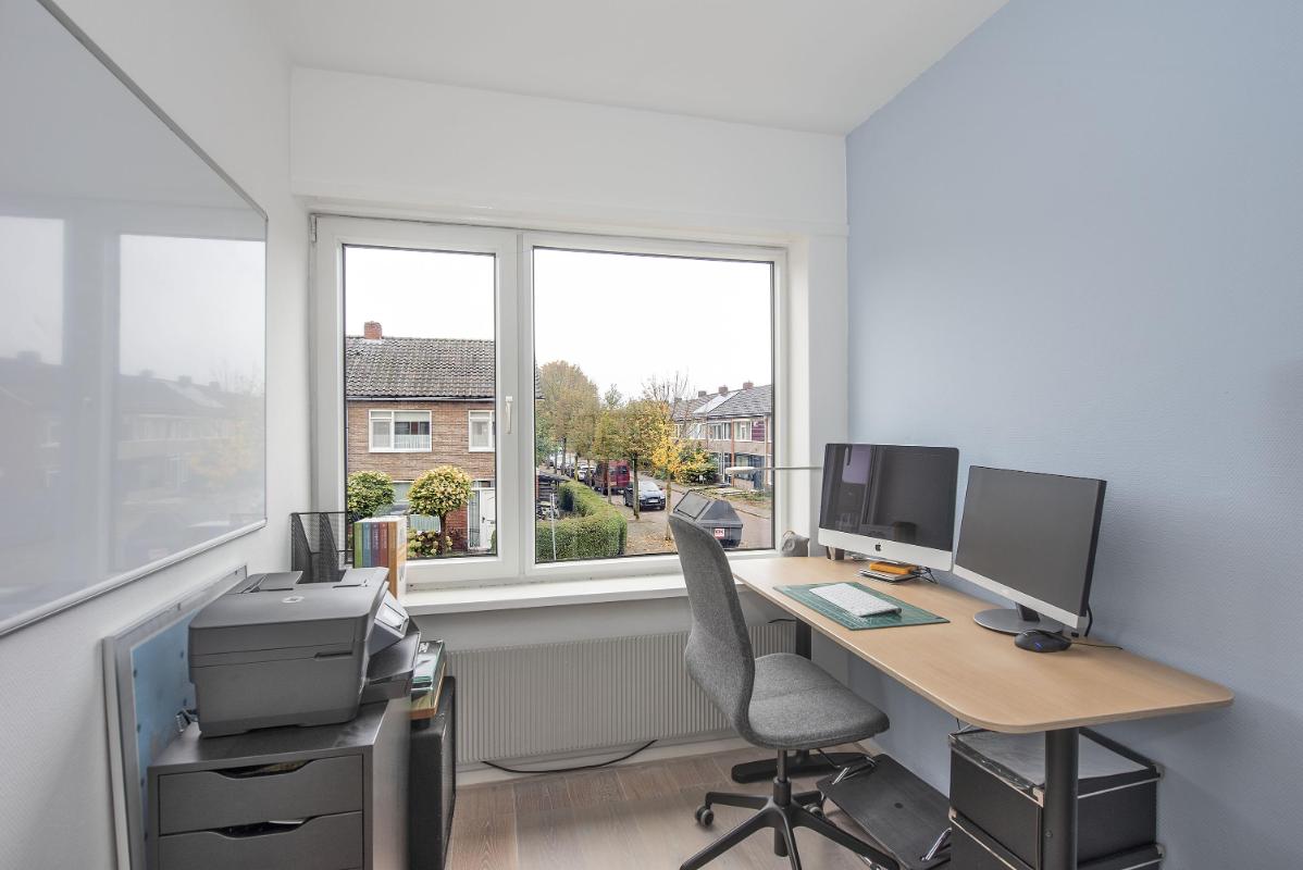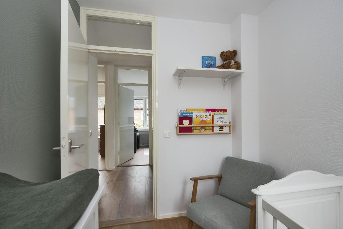 Indeling Begane grond: entree met hal, toilet, trapopgang en toegang tot de kelderkast, woonkamer met veel lichtinval, halfopen keuken (2018) voorzien van inbouwapparatuur en toegang tot de berging met wasmachineaansluiting. Eerste verdieping: overloop, vier slaapkamers, badkamer met douche en wastafel. Tweede verdieping: vaste trap naar zolder, extra slaapkamer met dakkapel. Tuin: nette, overzichtelijke tuin met toegang tot de vrijstaande garage en achterom.