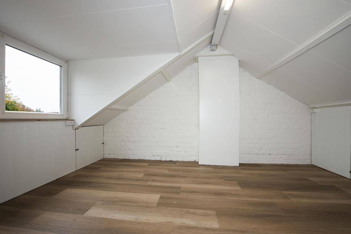 Drie verdiepingen woonplezier Op de eerste verdieping bevinden zich de slaapkamers, elk met een prettige lichtinval en voldoende ruimte voor kasten. De badkamer is praktisch ingericht en voorzien van een inloopdouche en een wastafelmeubel. Via een vaste trap bereik je de tweede verdieping, waar een dakkapel zorgt voor extra ruimte. Ideaal als extra slaap- of werkkamer, of gewoon als handige bergzolder.