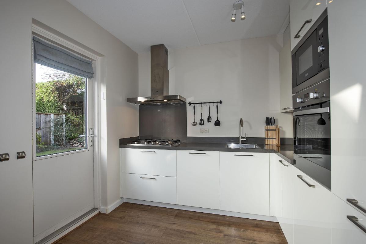 Indeling: Begane grond: hal met toilet, meterkast en trapopgang. Ruime woonkamer, voorzien van een trapkast, en open keuken gelegen aan de achterzijde. De keuken is uitgerust met een gasfornuis, afzuigkap, oven, magnetron, koel-vriescombinatie en vaatwasser. Vanuit de keuken is er toegang tot de achtertuin. Eerste verdieping: overloop, drie slaapkamers. Badkamer met inloopdouche, wastafelmeubel en toilet. Tweede verdieping: bereikbaar via vaste trap; mogelijkheid voor een vierde slaapkamer of thuiswerkplek. Tevens bevindt zich hier de wasmachineaansluiting. Tuin: achtertuin met moderne overkapping, kliko ombouw, achterom en vrijstaande stenen berging.