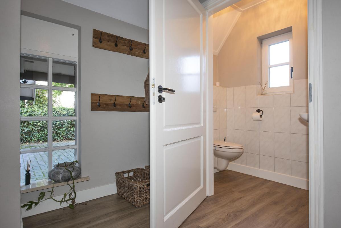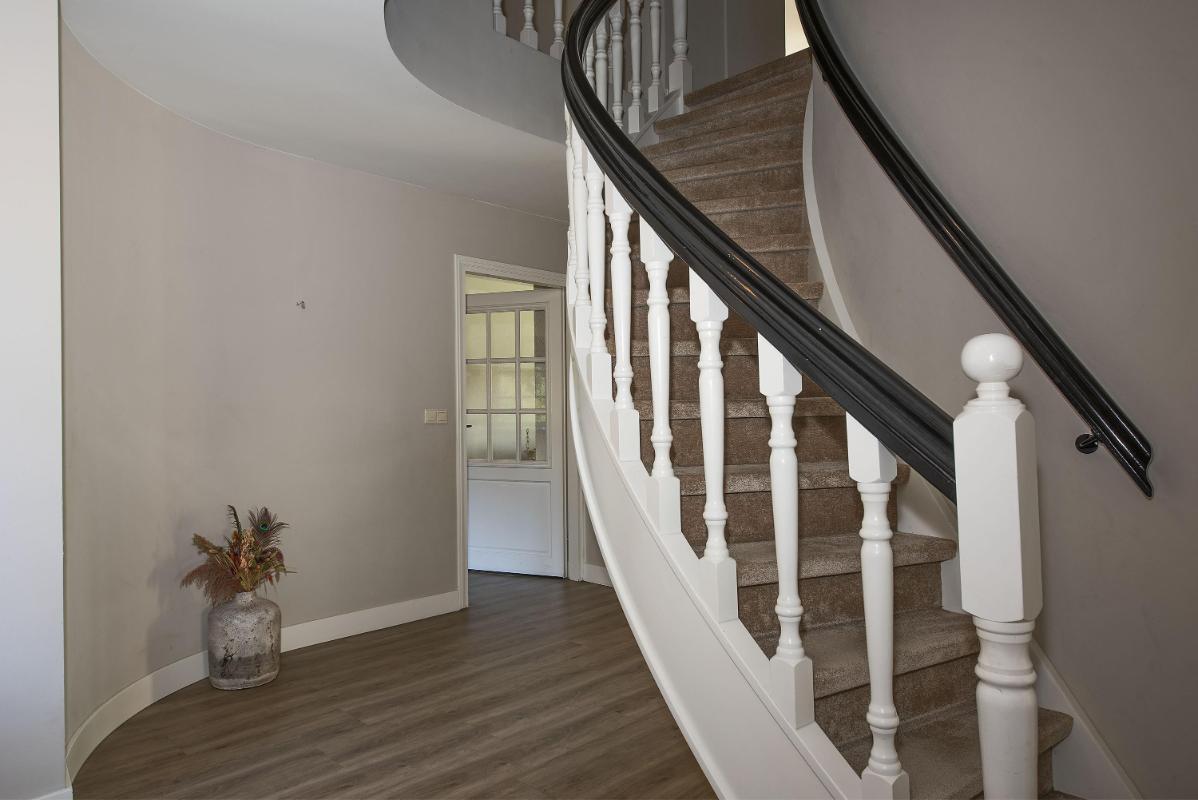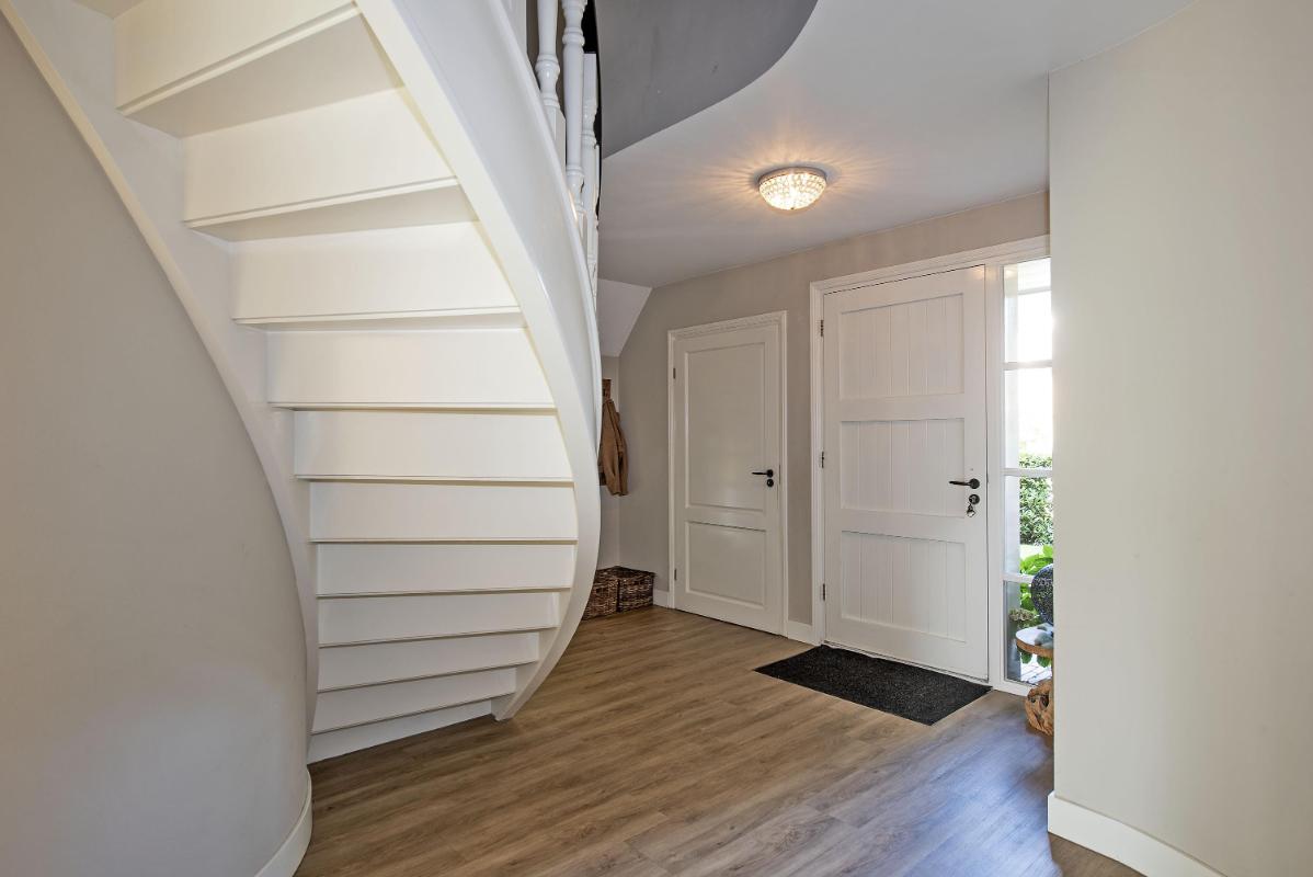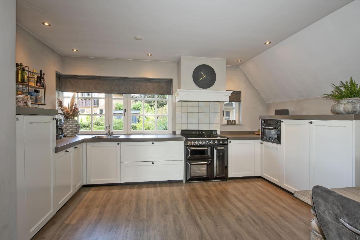 Sfeervol en veelzijdig Vanaf het moment dat je je eigen mini-erf oprijdt voel je al die landelijke sfeer. Welkom thuis! Bij binnenkomst via de royale entree met bijzonder fraaie trappartij voel je ook de allure van dit huis. Binnen proef je de landelijke sfeer die in elke ruimte is doorgetrokken: van de open keuken aan de voorzijde – uitgerust met stijlvolle Smeg-apparatuur – tot de woonkamer aan de achterzijde met uitzicht op de tuin. Een extra pluspunt: op de begane grond vind je een royale slaap- cq werkkamer met badkamer ensuite. Ideaal als levensloopbestendige optie of juist als comfortabele werkplek. De badkamer is compleet ingericht met ligbad, douche, toilet en wastafel.