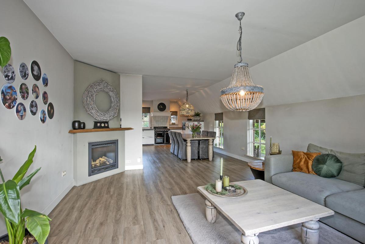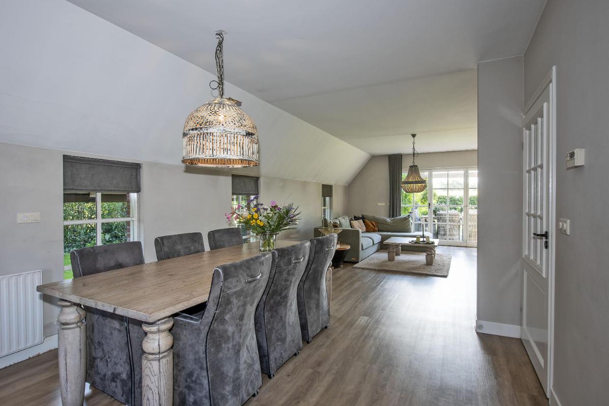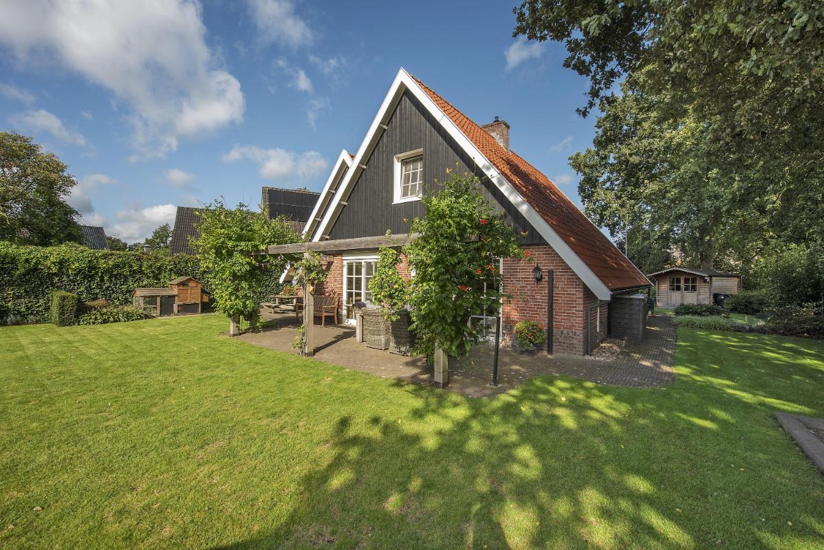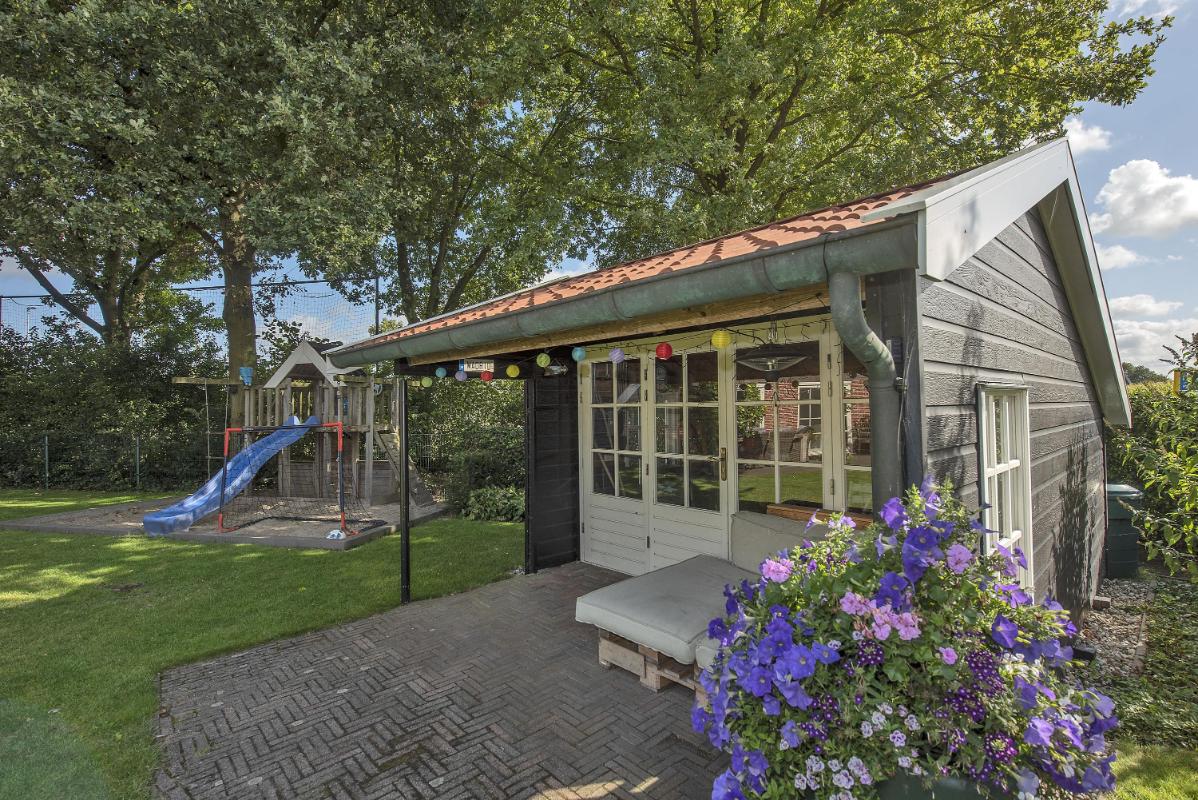 Tuin Ruime tuin rondom met royale eigen oprit. Aan de achterzijde geniet je van een vrij uitzicht. Dankzij de ligging aan een doorgaande straat heb je geen directe achterburen – wat juist zorgt voor die extra luxe privacy. In de achtertuin een vrijstaand houten tuinhuis met overkapping, geheel in landelijke stijl, passend bij de woning. Tot slot een tweede houten tuinhuis gelegen aan de voor//zijkant van het perceel.