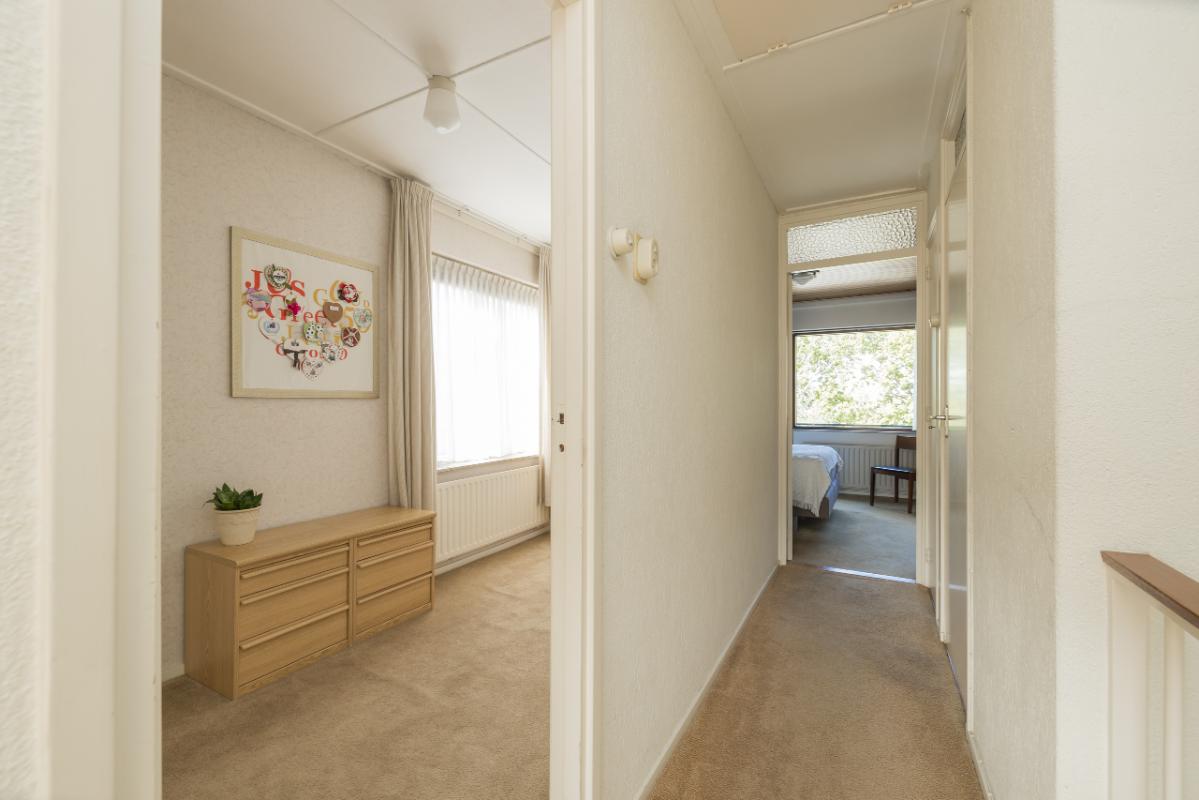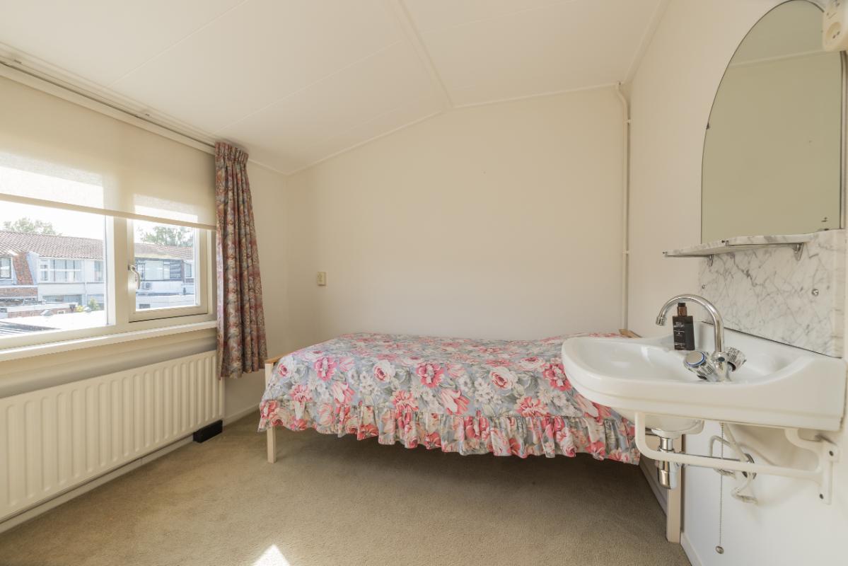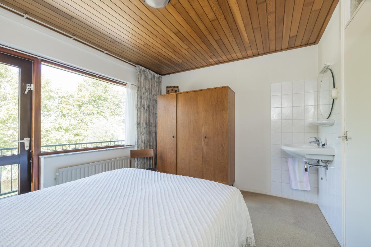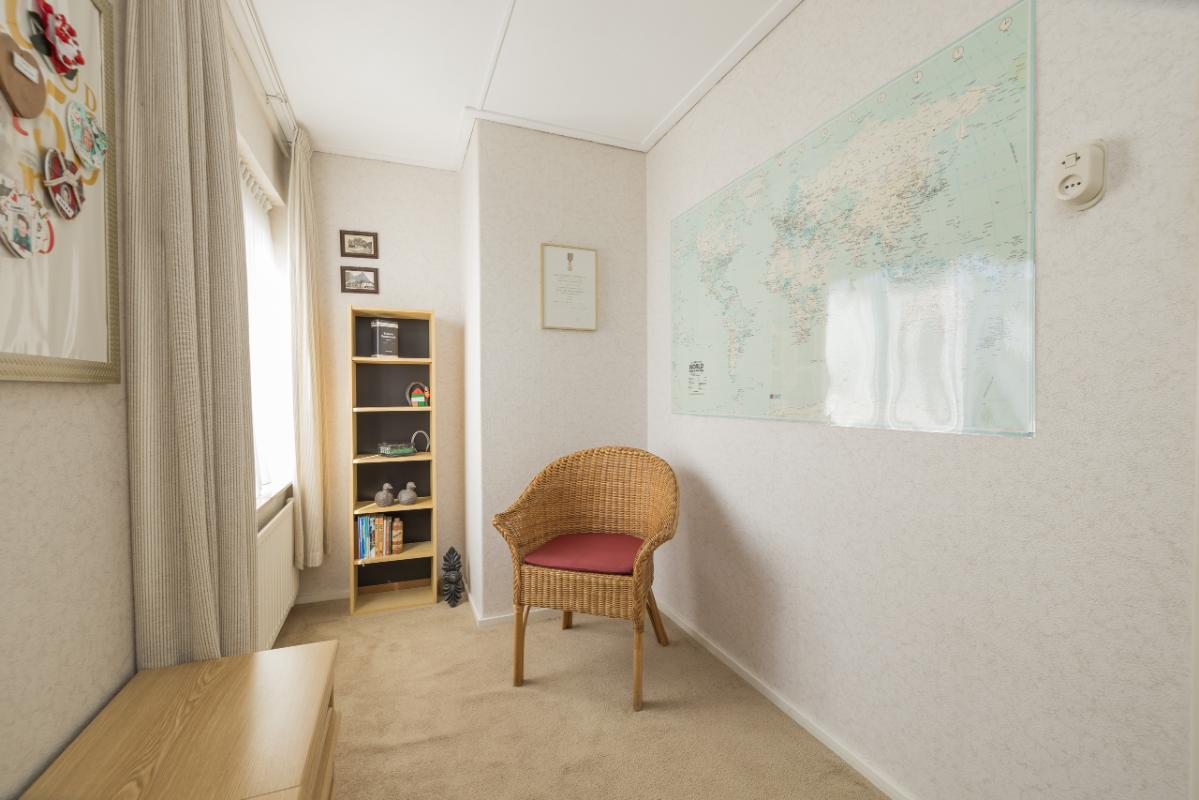 1e etage De overloop biedt toegang tot twee vaste kasten met voldoende opbergruimte. Op deze verdieping bevinden zich drie slaapkamers. De hoofdslaapkamer aan de voorzijde beschikt over een vaste kast, een wastafel en toegang tot het ruime balkon. Aan de achterzijde ligt de tweede slaapkamer, eveneens voorzien van een wastafel, en de derde slaapkamer bevindt zich aan de zijkant van de woning.