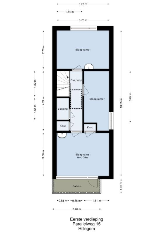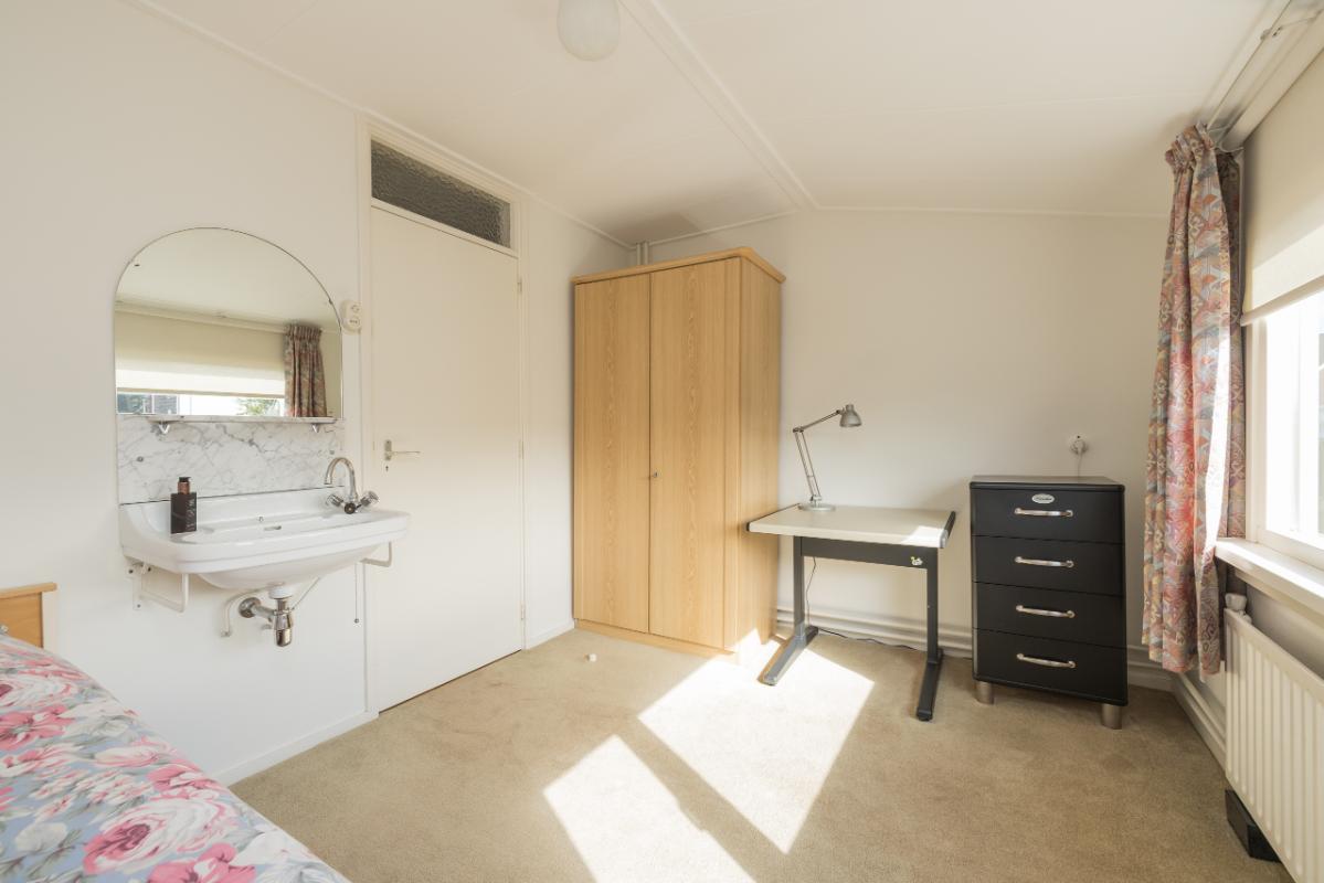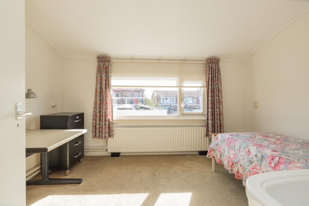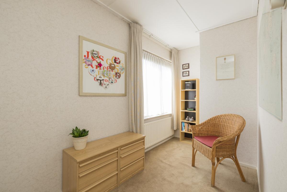 1e etage De overloop biedt toegang tot twee vaste kasten met voldoende opbergruimte. Op deze verdieping bevinden zich drie slaapkamers. De hoofdslaapkamer aan de voorzijde beschikt over een vaste kast, een wastafel en toegang tot het ruime balkon. Aan de achterzijde ligt de tweede slaapkamer, eveneens voorzien van een wastafel, en de derde slaapkamer bevindt zich aan de zijkant van de woning.