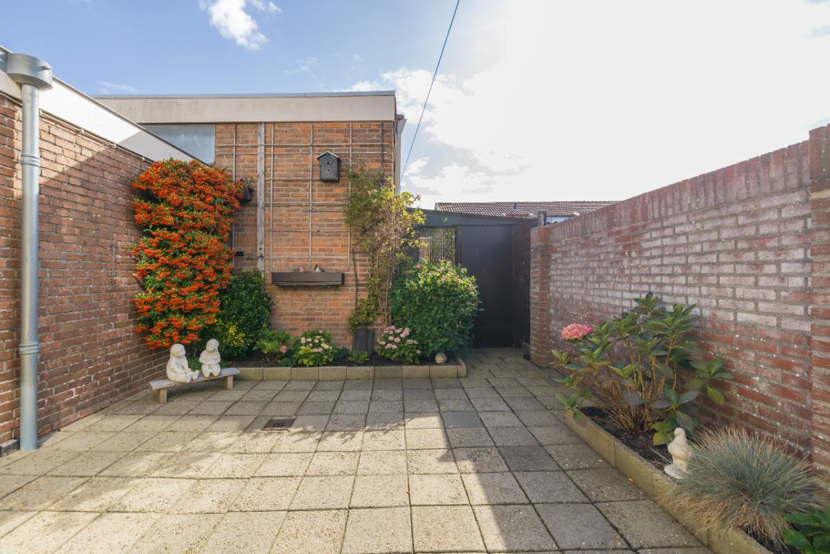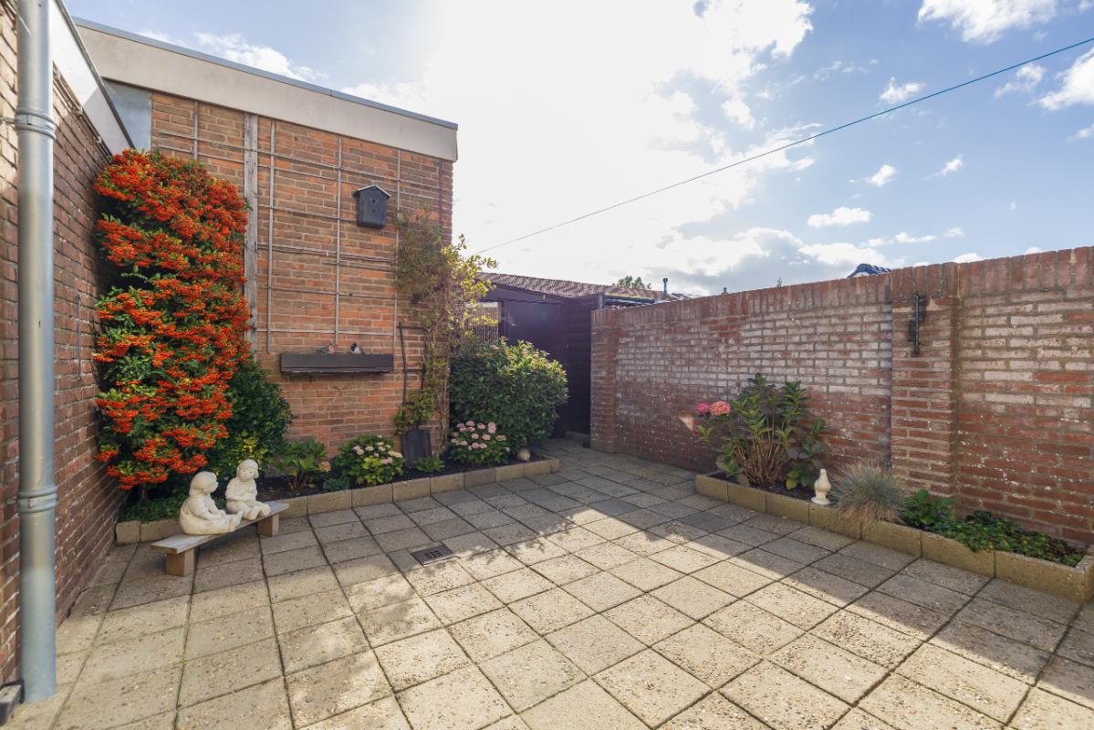 Tuin De onderhoudsvriendelijke achtertuin is grotendeels bestraat met grijze tegels en voorzien van groene borders. Een heerlijk plek om zowel van de ochtend- als de middagzon te kunnen genieten.