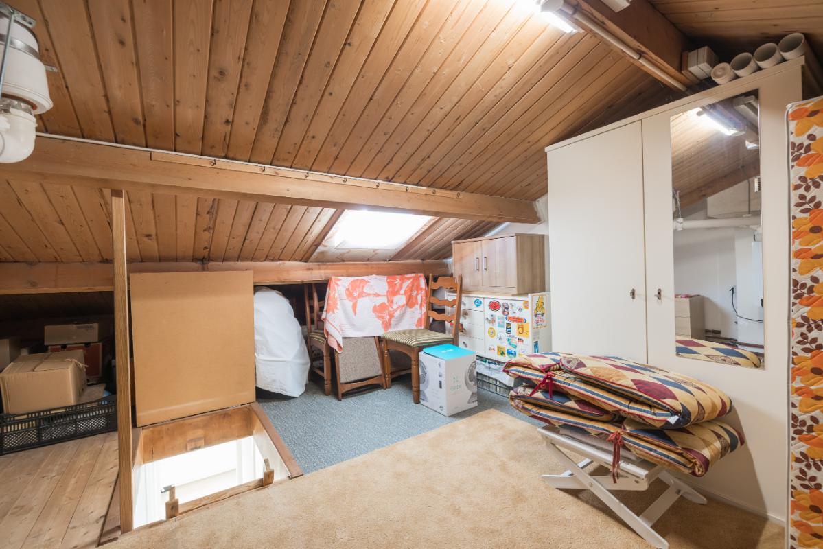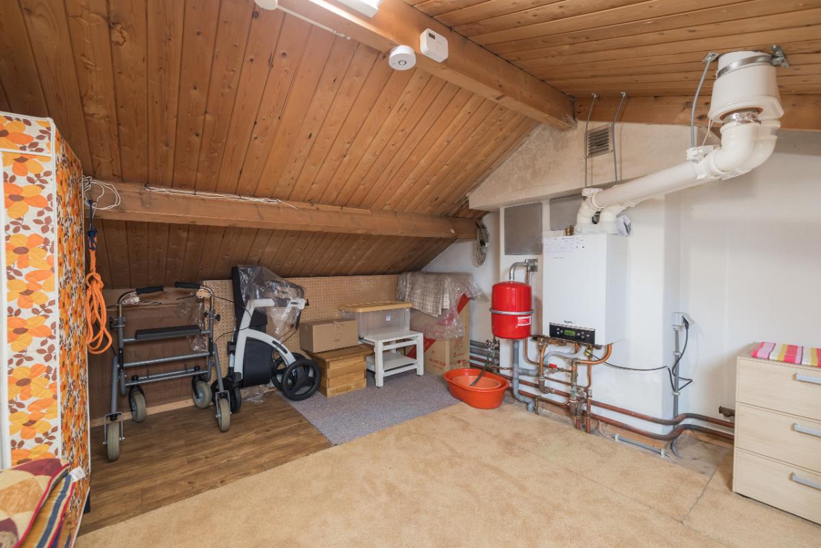 Attic The attic is accessible via a loft ladder from the landing and has a ridge height of 1.75 m. The space features a skylight, ample storage space, and houses the central heating boiler (Nefit Proline, 2012).