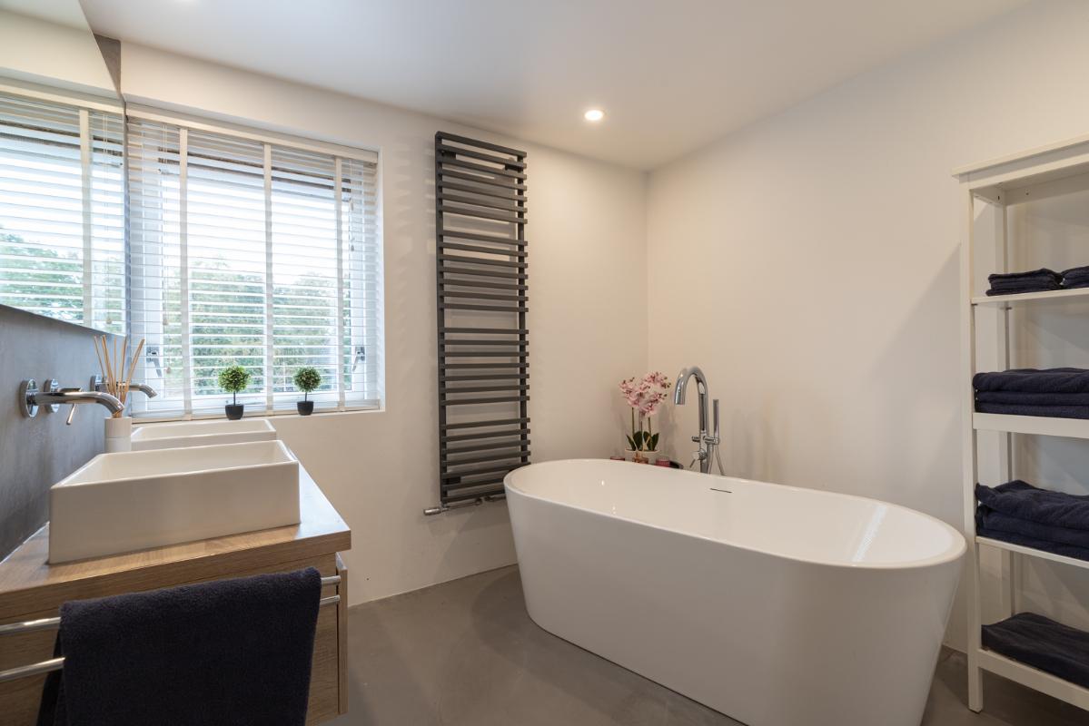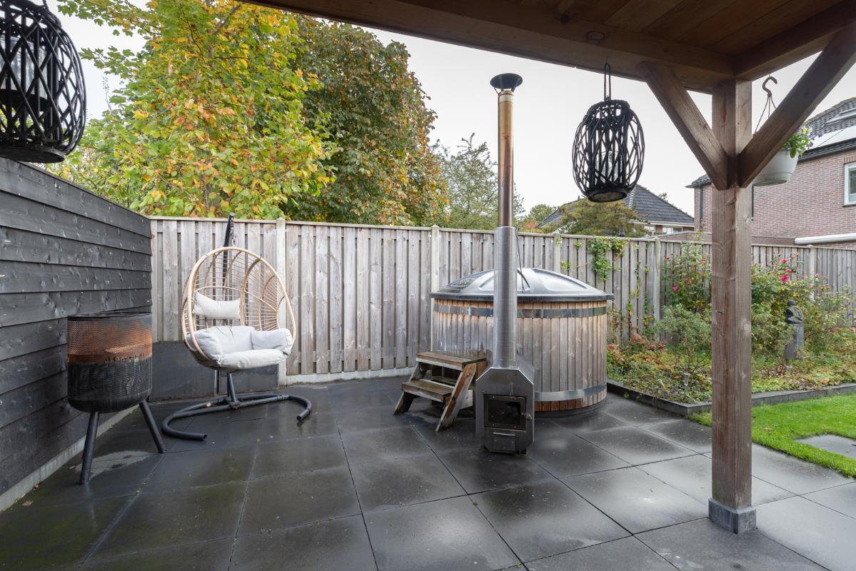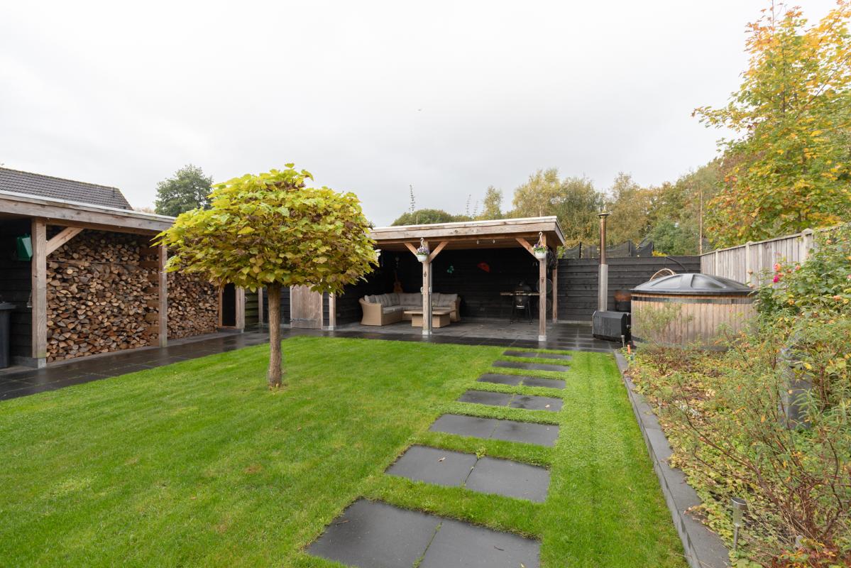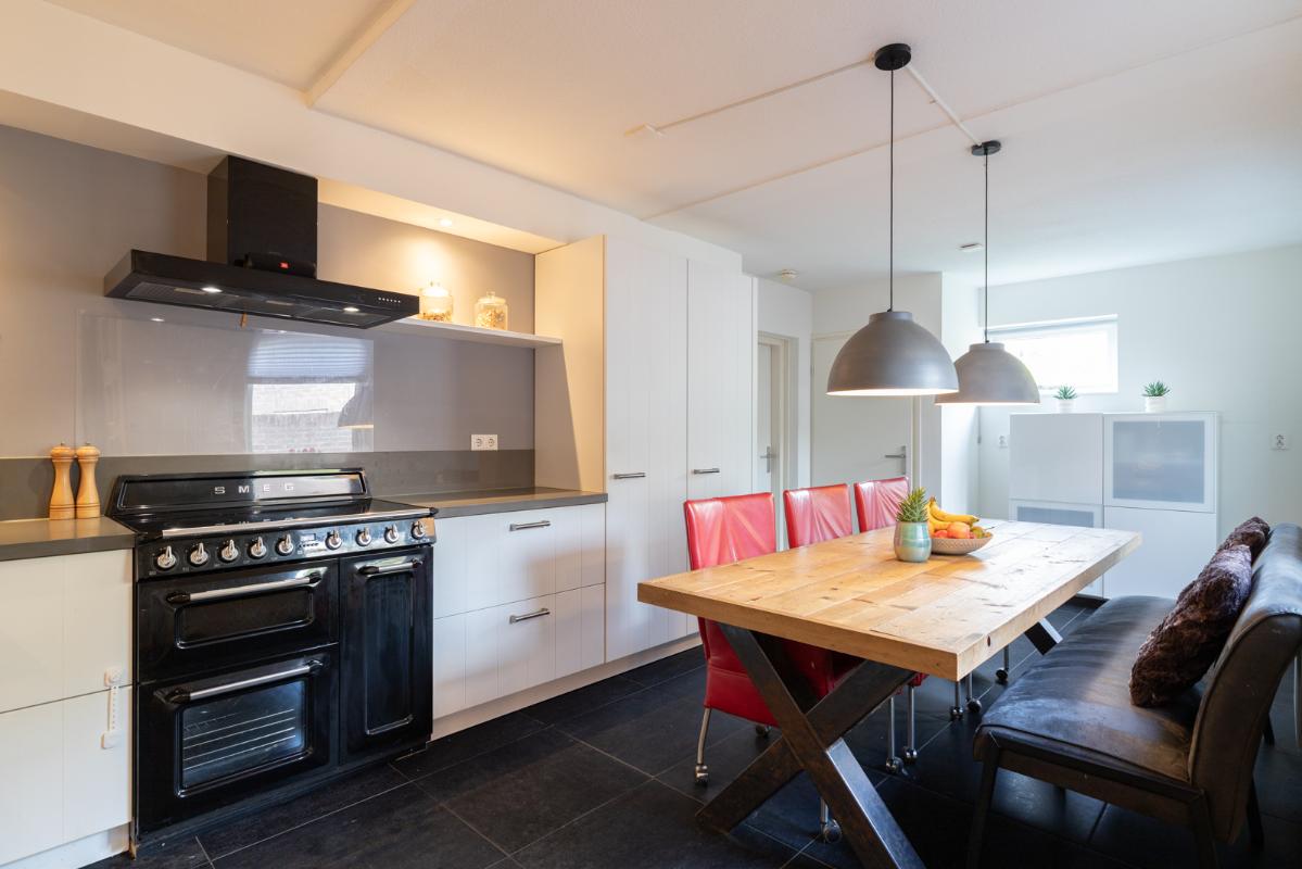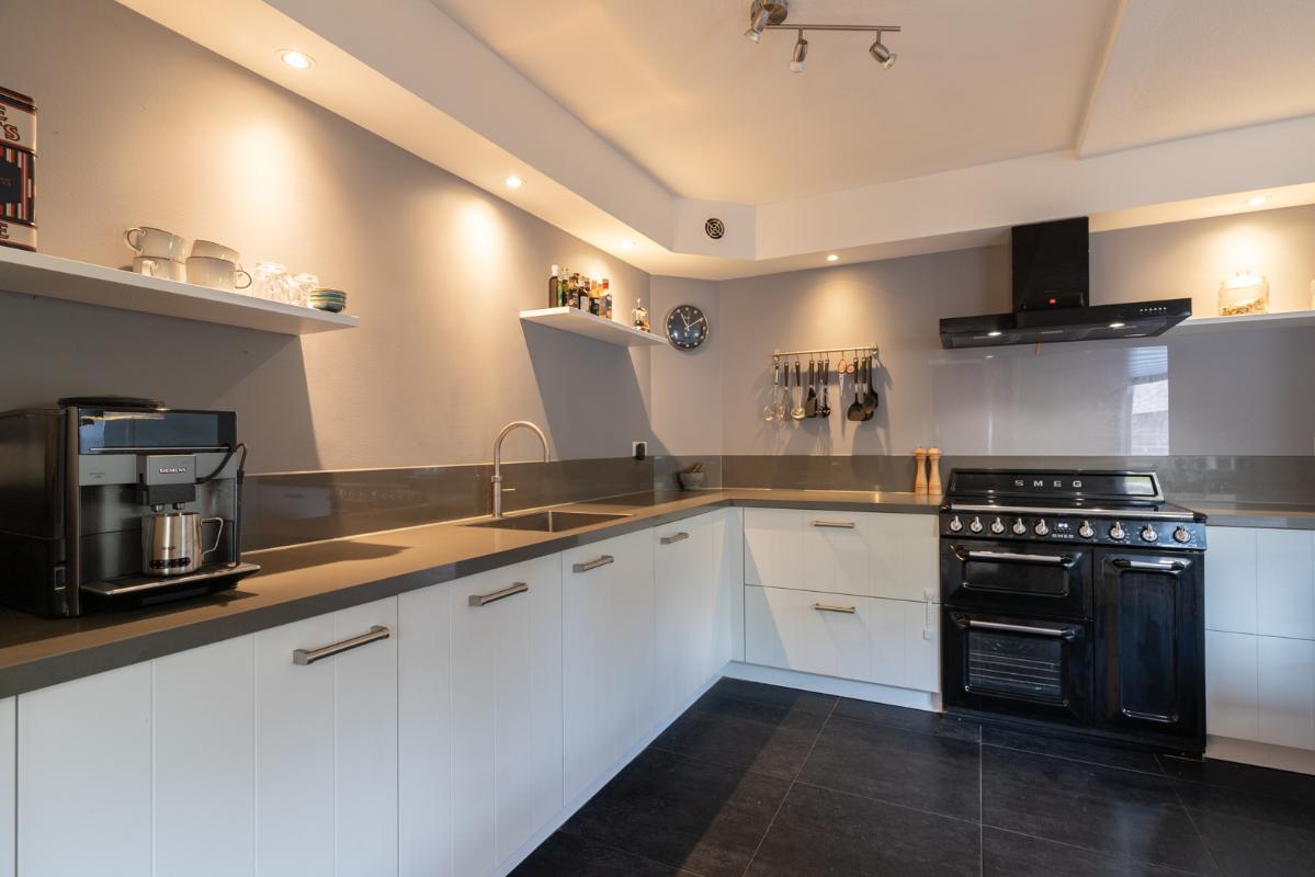 INDELING: Begane grond: hal/entree met garderobe en toilet (wandcloset met fonteintje); een zeer royale woonkamer (ca. 63m²) met houtkachel en dubbele deuren naar de tuin en het terras. De halfopen woonkeuken (ca. 22m2) is voorzien van een moderne keukeninrichting met vaatwasser, inductiefornuis met 3 ovens (Smeg), afzuigschouw, koelkast en Quooker. Vanuit de keuken toegang tot de bijkeuken met wasmachine/droger opstelling, deur naar de tuin én binnendoor naar de garage. Eerste verdieping: zeer ruime overloop; 3 keurige slaapkamers (ca. 18, 14 en 13m²) waarvan één toegang geeft tot het balkon. De royale luxe uitgevoerde badkamer (ca. 11m²) is voorzien van een ruime inloopdouche, dubbel wastafelmeubel, wandcloset en een prachtig vrijstaand ligbad. Tweede verdieping: overloop met extra bergruimte; 2 zolder-/slaapkamers (ca. 22 en 12 m² vloeroppervlakte) met elk een groot Velux dakraam.