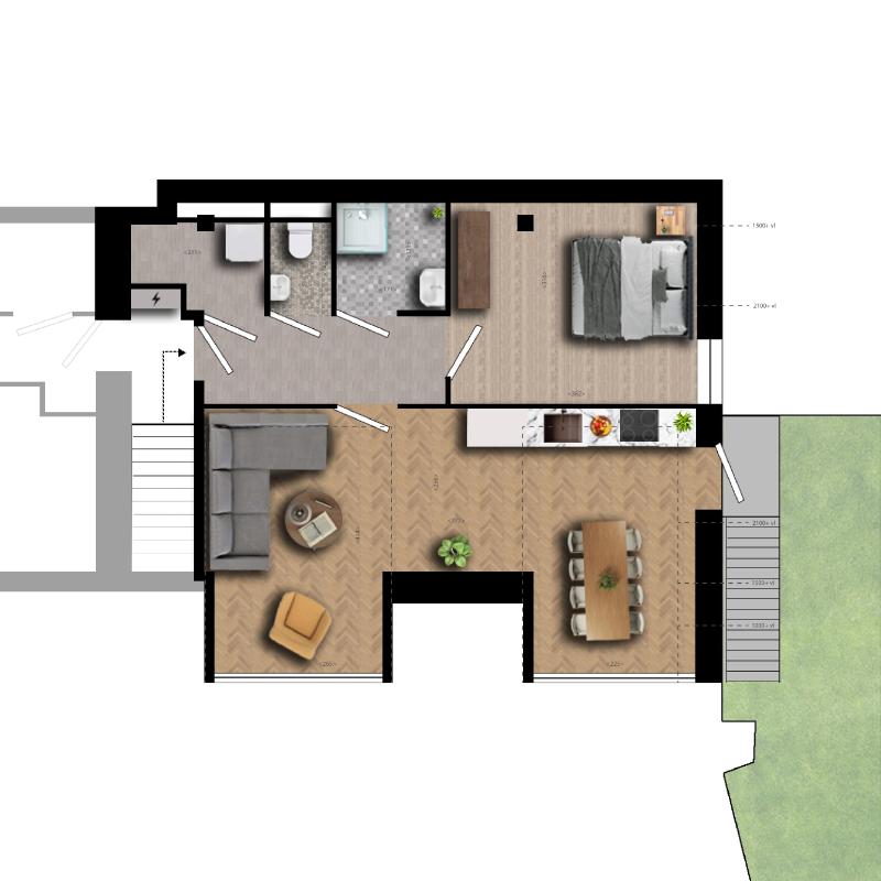 Overig: woonoppervlakte 54,4 m2. Stelpost op het sanitair, keuken zelf in te vullen, de wanden zijn saus klaar afgewerkt, c.v.-installatie en vloerverwarming. Voorlopig A-label, na realisatie zal er een definitief label opgemaakt worden.