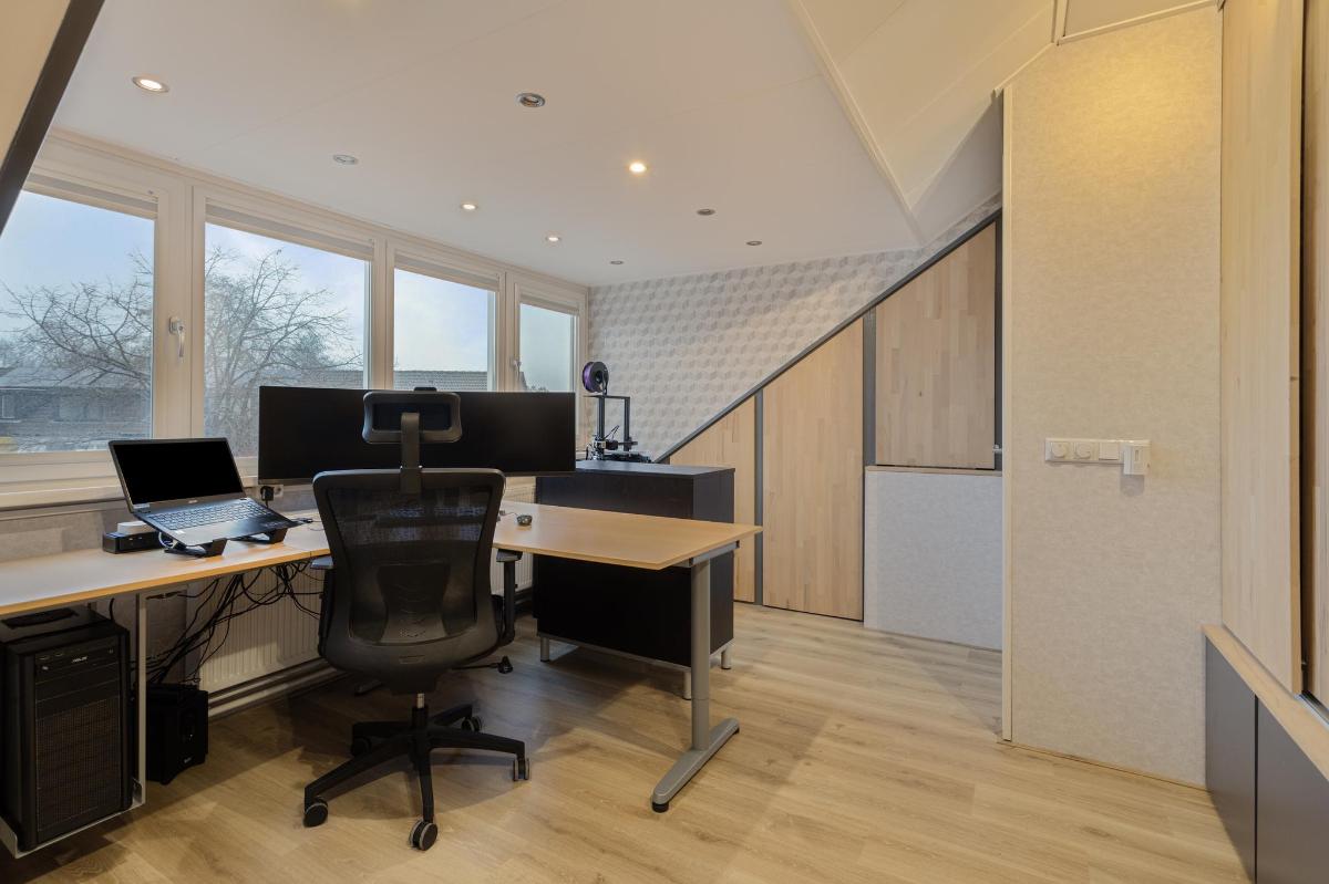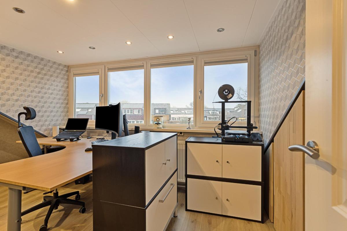 De feiten op een rij: - Gelegen in de groene en kindvriendelijke Merenwijk; - Voorzien van voor- en achtertuin, waardoor je over veel privacy beschikt; - Binnenkomst in de hal met separaat toilet met fonteintje; - De ruime woonkamer beschikt over een visgraatparketvloer met bies, sfeervolle openhaard en schuifpui naar de achtertuin; - Open keuken voorzien van alle benodigde inbouwapparatuur, zoals een Quooker, gaskookplaat, afzuigkap, koelkast, vriezer, vaatwasser en combimagnetron; - Zonnige achtertuin, gelegen op het zuidwesten, met een mooie veranda; - Op de eerste verdieping vind je drie slaapkamers en een badkamer; - De ruime badkamer heeft de beschikking over een ligbad met douche, tweede toilet, wastafelmeubel en handdoekradiator; - Door een dakkapel aan de voor- en achterzijde van de woning, is er een royale tweede verdieping. Hier zijn dan ook de vierde en vijfde slaapkamer te vinden; - Aparte bergruimte met ruimte voor de wasmachine en droger; - Voorzien van 14 zonnepanelen en een oplaadpunt voor een elektrische auto; - Berging in de voortuin; - Energielabel A.