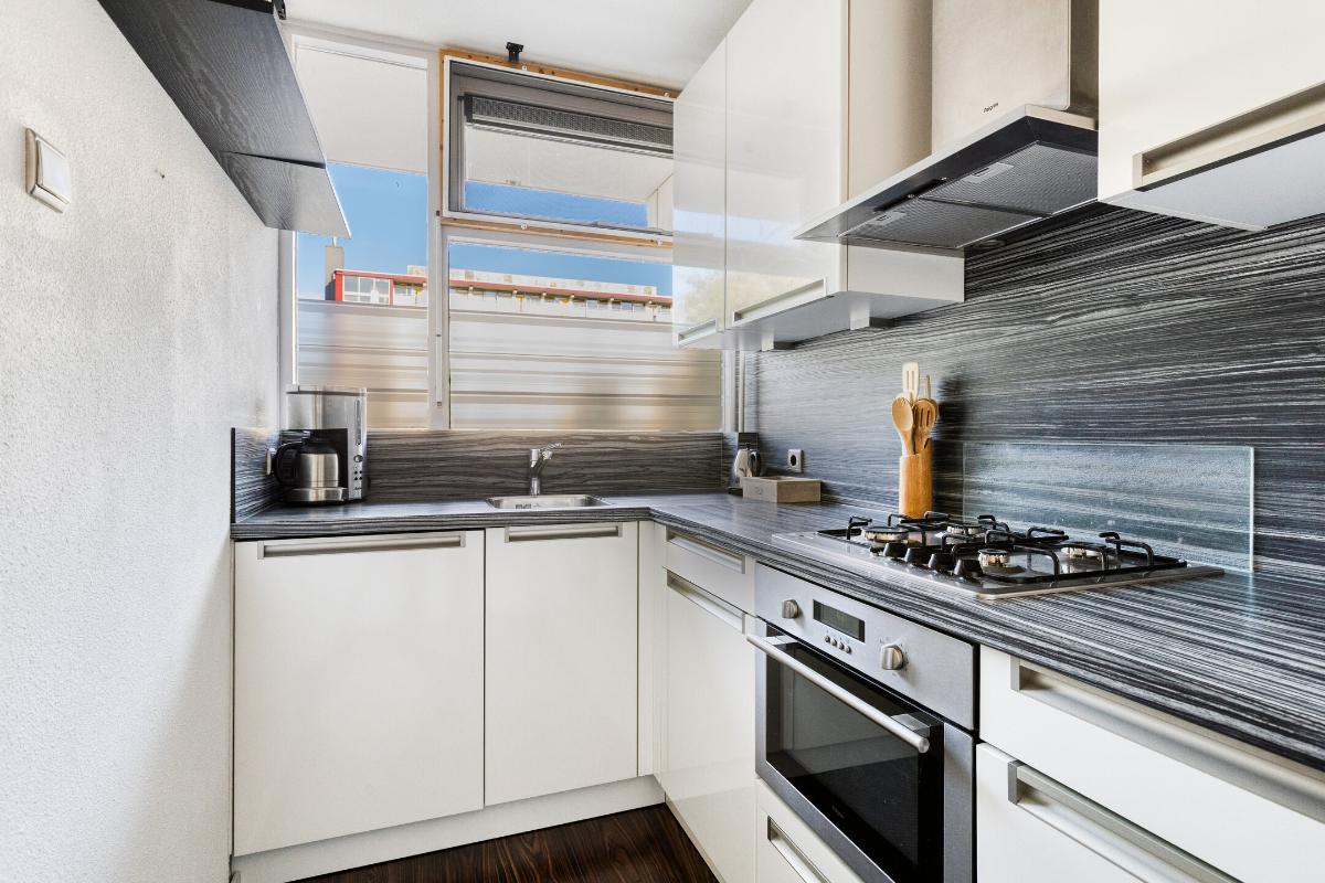 De feiten op een rij: - Gelegen op de eerste verdieping van een verzorgd appartementencomplex; - Centrale ligging nabij winkels, scholen, openbaar vervoer en uitvalswegen; - Ruime, lichte woonkamer met grote raampartijen en toegang tot het balkon; - Moderne keuken, voorzien van diverse inbouwapparatuur: gaskookplaat, afzuigkap, combioven, vaatwasser en koel-/vriescombinatie; - Balkon op het westen met groen uitzicht; - Twee slaapkamers, beide voorzien van een nette vloerafwerking; - Nette badkamer met een inloopdouche en wastafelmeubel; - Modern toilet met fonteintje; - Eigen berging op de begane grond; - Bereikbaar met de lift; - Actieve en gezonde VvE, maandelijkse bijdrage € 183,42 per maand. - Energielabel C.