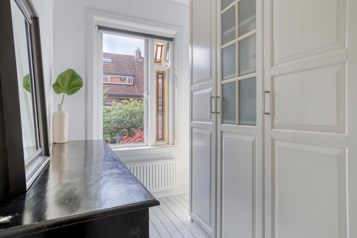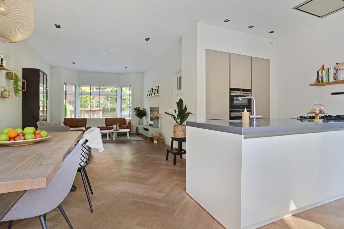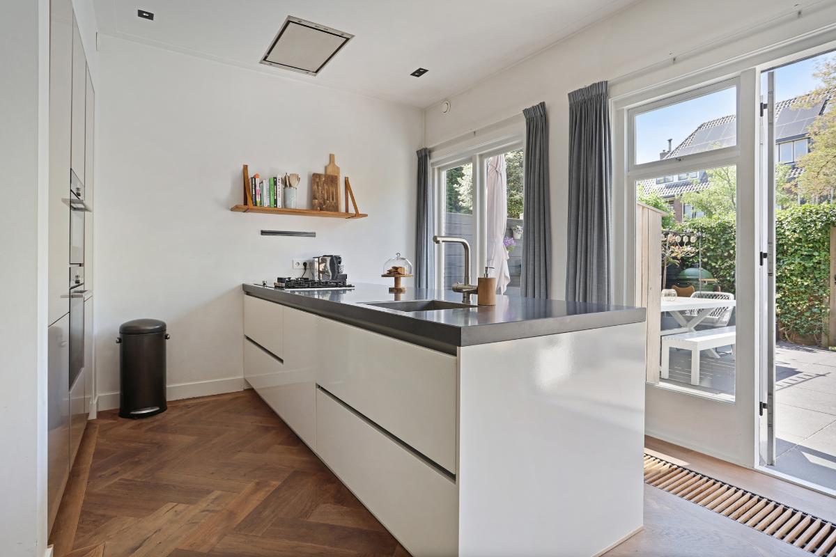 De feiten op een rij: - Voortuin met fietsenberging; - Authentieke jaren ’30 details zoals erkers, schouw, paneeldeuren en hoge plafonds; - De woning verwelkomt u met een fraaie zonnige voortuin en een charmant tochtportaal; - De hal is voorzien van een modern toilet met fonteintje, een trapkast en een vernieuwde meterkast (9 groepen, 2 aardlekschakelaars); - Royale woonkamer met visgraat parketvloer, strak stucwerk en openslaande deuren naar de tuin; - De zonnige (tot en met einde dag) achtertuin is gelegen op het noordwesten met achterom; - Open woonkeuken met o.a. een eiland, heet waterkraan, oven, combimagnetron, koelkast, 5-pits gaskookplaat, afzuigkap en vaatwasser; - Eerste verdieping voorzien van drie slaapkamers, waarvan de royale slaapkamer aan de voorzijde voorzien is van een mooie erker, schouw en een vaste kast. De slaapkamer aan de achterzijde is ook voorzien van een vaste kast; - De moderne eerste badkamer is voorzien van een ligbad, douche wastafelmeubel en handdoeken radiator. - Drie toiletten (verdeeld over drie verdiepingen); - Op de tweede verdieping nog eens twee slaapkamers, waarvan één als master suite met eigen badkamer en opengewerkte kapconstructie waardoor een enorme hoogte is gecreëerd; - Deze tweede badkamer is voorzien van een dubbel wastafelmeubel en een inloopdouche; - Ruime bergzolder bereikbaar via een vaste trap; - Dak- en vloerisolatie, deels dubbel glas; - Verwarming via Intergas HR combiketel uit 2015; - Mechanische ventilatie aanwezig; - Energielabel C; - Gelegen in een rustige straat met alleen bestemmingsverkeer.