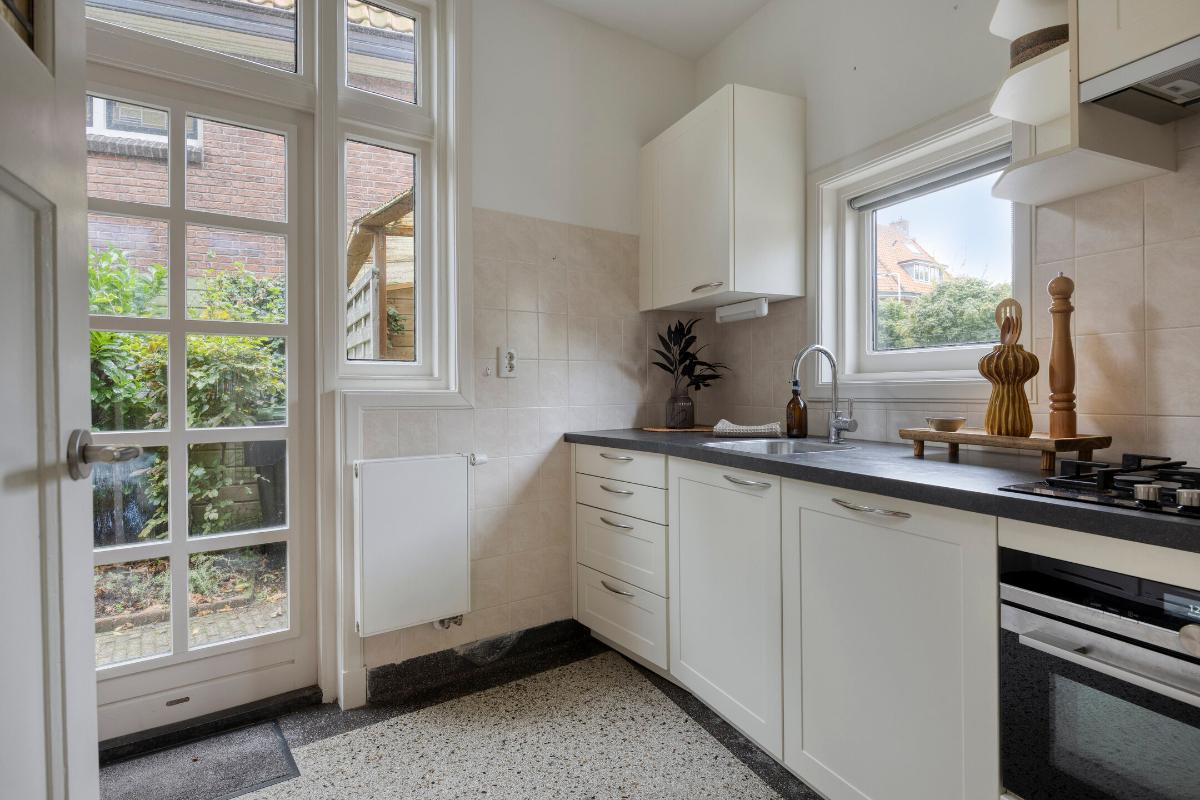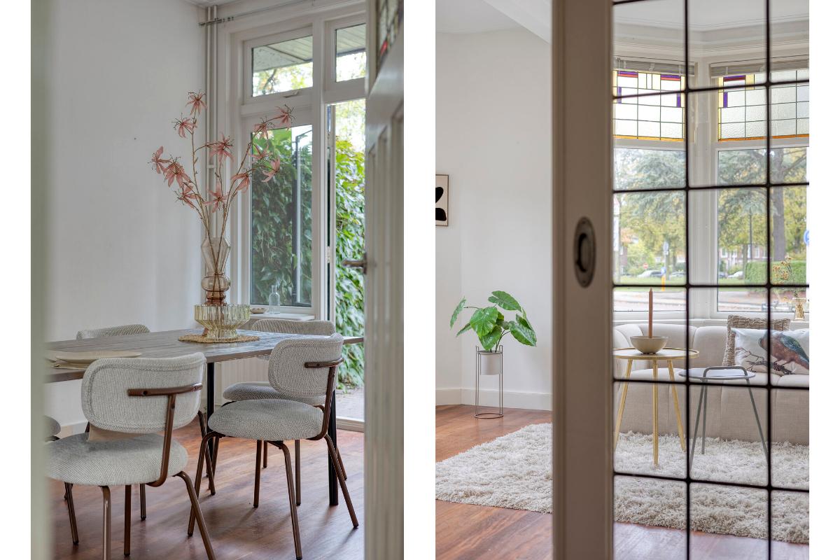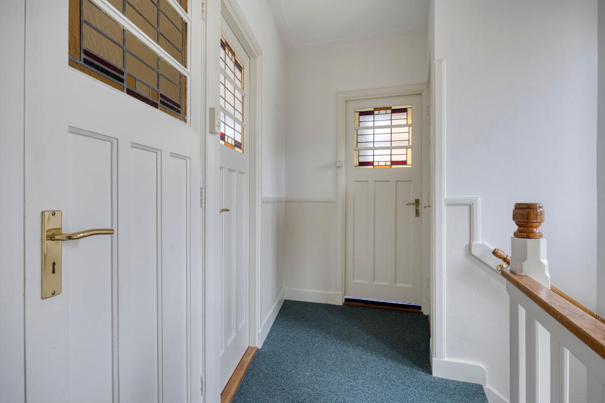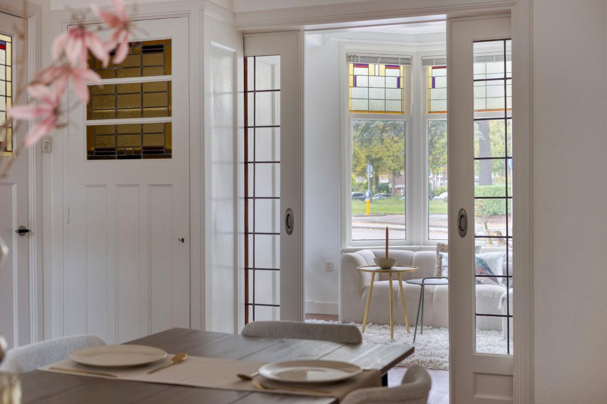 De feiten op een rij: • Karakteristieke en sfeervolle jaren ’30 hoekwoning boordevol originele details; • Authentieke hal met granitovloer en wandtegels; • Originele deuren met glas-in-lood; • Extra veel lichtinval door de zijramen; • L-vormige woonkamer en-suite met openslaande deuren naar de tuin, parketvloer, glas-in-lood en een open haard (nu niet in gebruik); • Dichte keuken met granitovloer, originele servieskast, diverse inbouwapparatuur en deur naar de achtertuin; • Voormalig drie slaapkamers op de eerste verdieping, waarvan één met een ruim balkon en één voorzien van en marmeren schouw en prachtig vrij uitzicht; • Badkamer met inloopdouche, wastafelmeubel en handdoekradiator; • Tweede verdieping met twee ruime slaapkamers, beide voorzien van dakkapel, en extra bergruimte; • Aparte wasruimte op zolder; • Achtertuin op het zonnige zuiden, heerlijk voor lange zomeravonden; • Gelegen in de populaire en rustige Professorenwijk, dichtbij alle voorzieningen; • Verwarming en warm water via cv-installatie; • Zeer ruime bergvliering met mogelijkheid om een vijfde slaapkamer te realiseren; • Parkeren middels parkeervergunning en-/of betaald parkeren; • Energielabel E; • Meterkast met 8 groepen en 2 aardlekschakelaars.