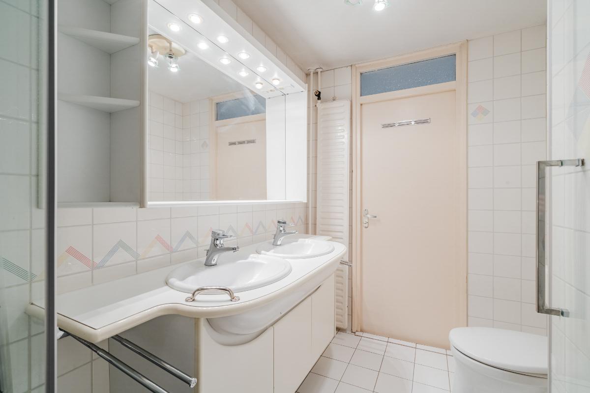1e verdieping: Overloop met vaste trap naar de 2e verdieping. Er zijn 3 slaapkamers. Alle kamers zijn voorzien van ramen met draai-kiepsysteem en veiligheidssloten. 2 slaapkamers zijn voorzien van een vaste garderobekast. De badkamer is vergroot en heeft een ruime inloopdouche met glazen wand, een dubbele vaste wastafel met een badkamermeubel en grote spiegel en er is een 2e toilet aanwezig.