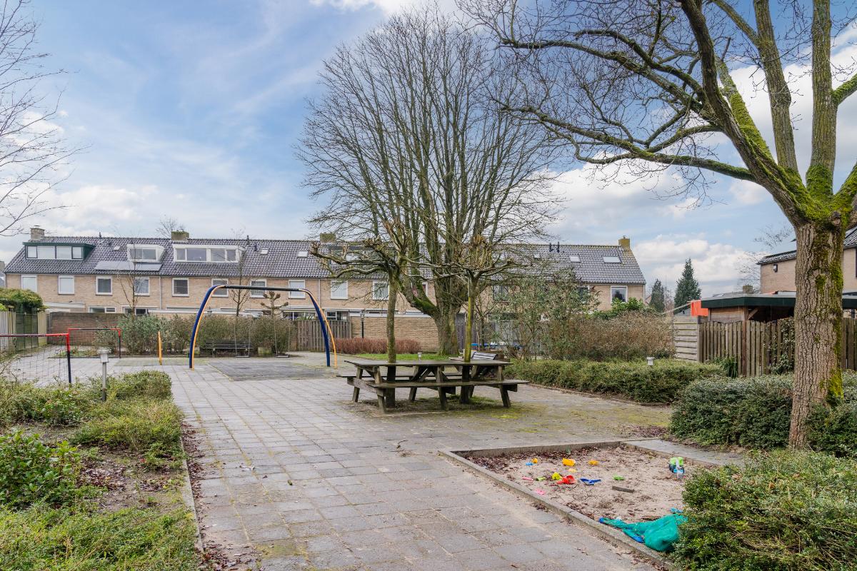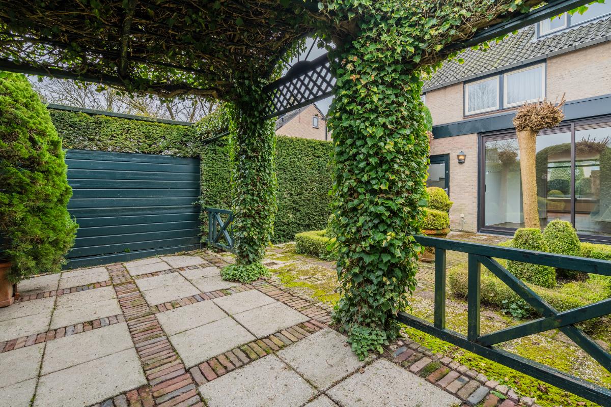Tuin: De woning heeft zowel voor als achter een fraai aangelegde tuin met verschillende borders met bloemen, struiken, planten en haagjes. De achtertuin is onderhoudsarm aangelegd met verschillende terrassen voorzien van sierbestrating. Er is een mooie begroeide pergola met een heerlijk terras, waar u lekker kunt ontspannen en van uw welverdiende rust kunt genieten. De tuin grenst achter aan het groen met achtergelegen speelplein voor de kinderen.