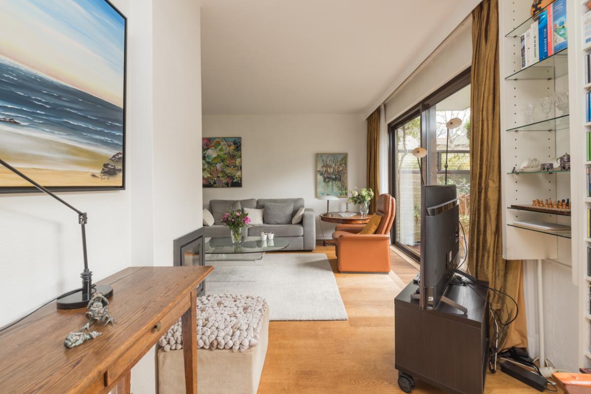 Garden: The spacious front garden (8.5 meters deep, 9.7 meters wide) has a generous driveway with parking for two cars on the property. The front garden is beautifully landscaped, offering privacy from the street. The back garden is also beautifully landscaped with a patio, pond, lawn, and green borders. The sunny back garden faces southwest, making it perfect for enjoying the sunshine.