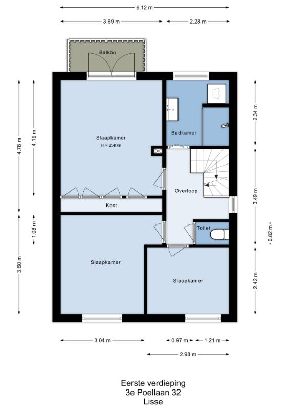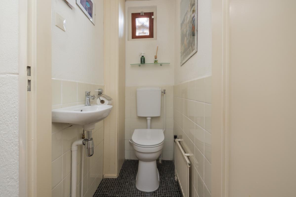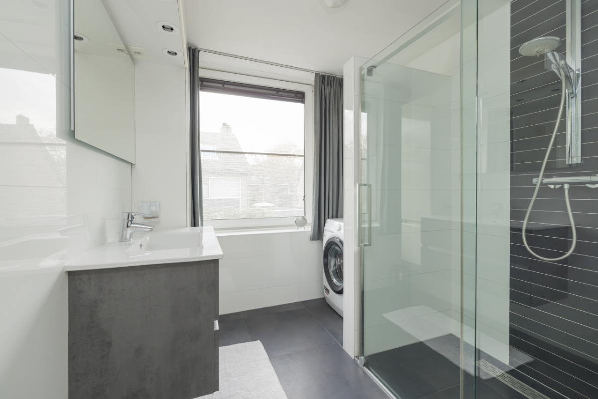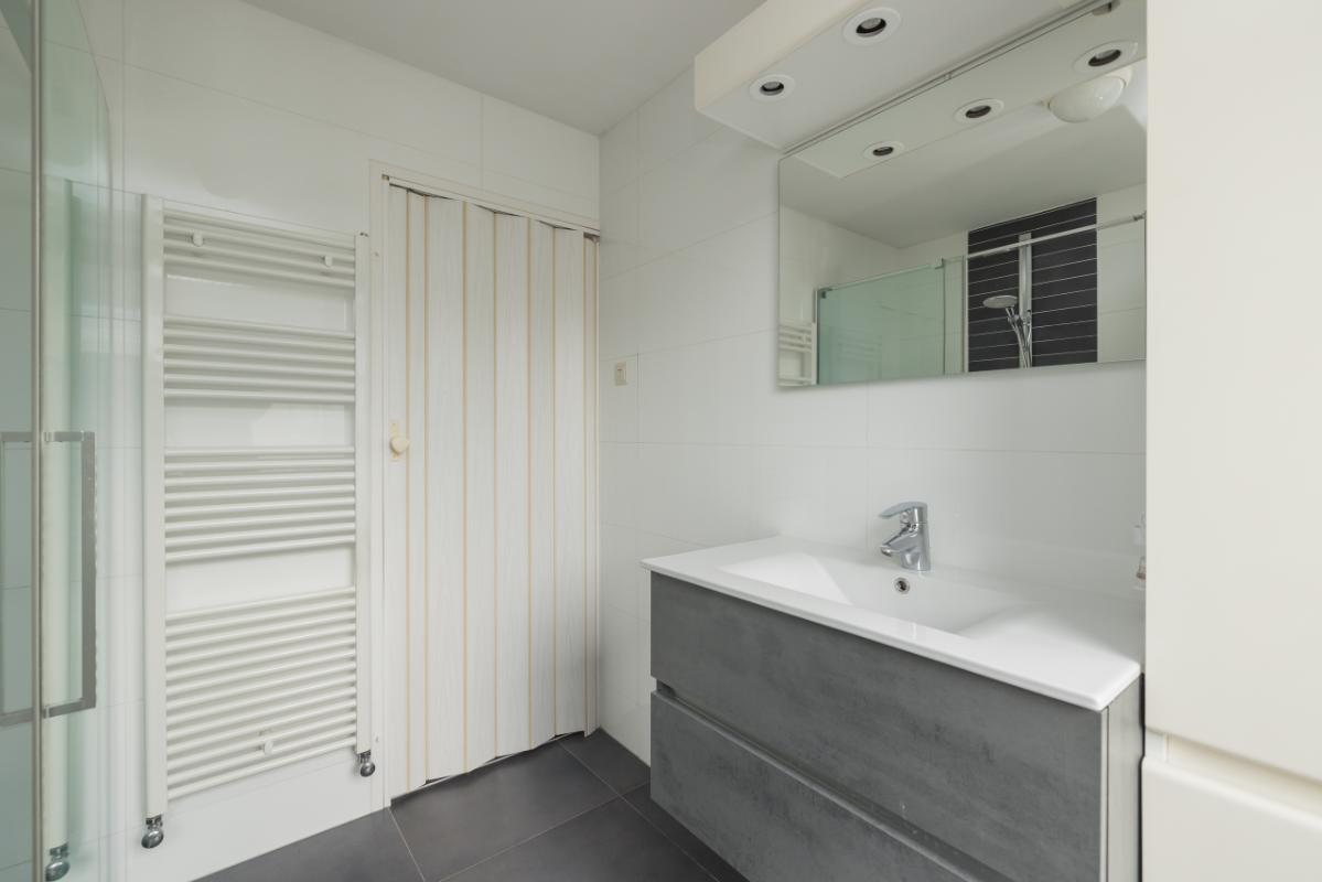 1e Etage: Ruime overloop voorzien van separaat toilet. Deze etage heeft twee slaapkamers aan de voorzijde. De royale (ouder)slaapkamer bevindt zich aan de achterzijde en is voorzien een vaste kastenwand en heeft toegang tot het zonnige balkon op het zuid-westen. De moderne badkamer (grijs/wit) beschikt over een royale inloopdouche, wastafelmeubel, designradiator en wasmachineaansluiting.