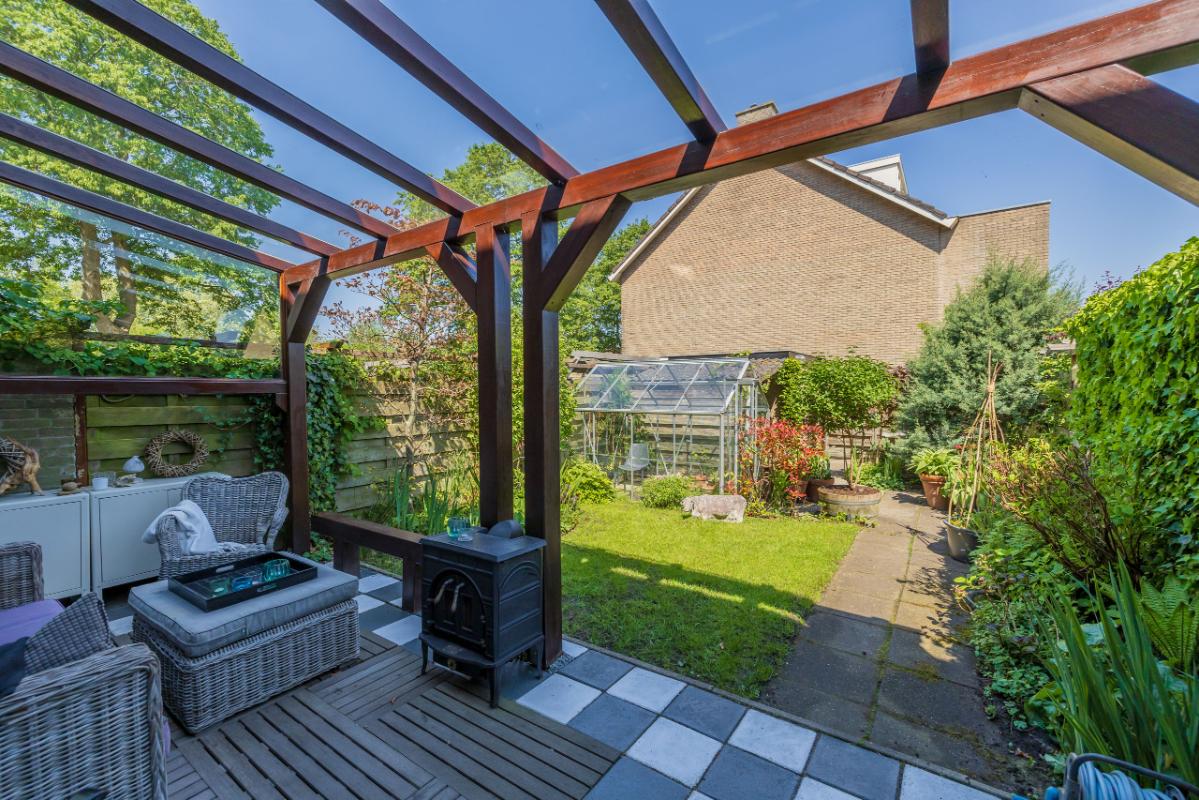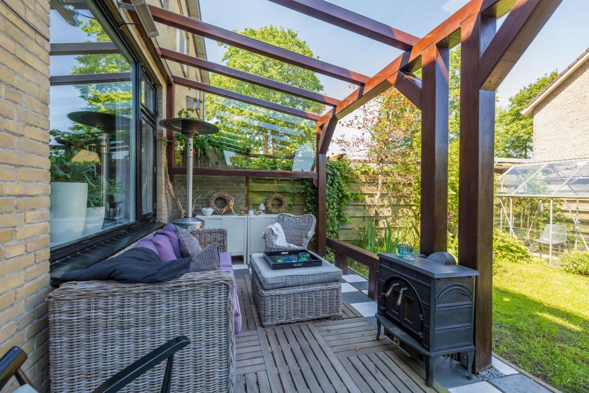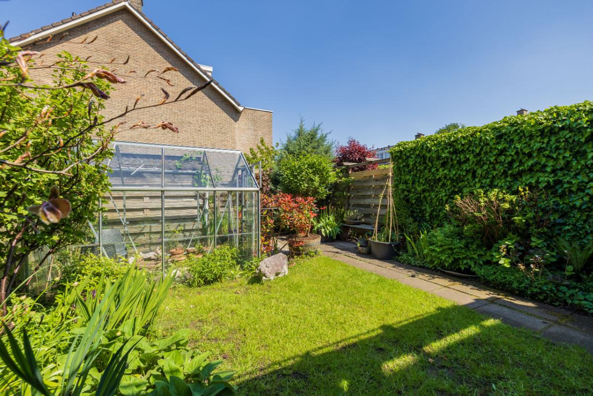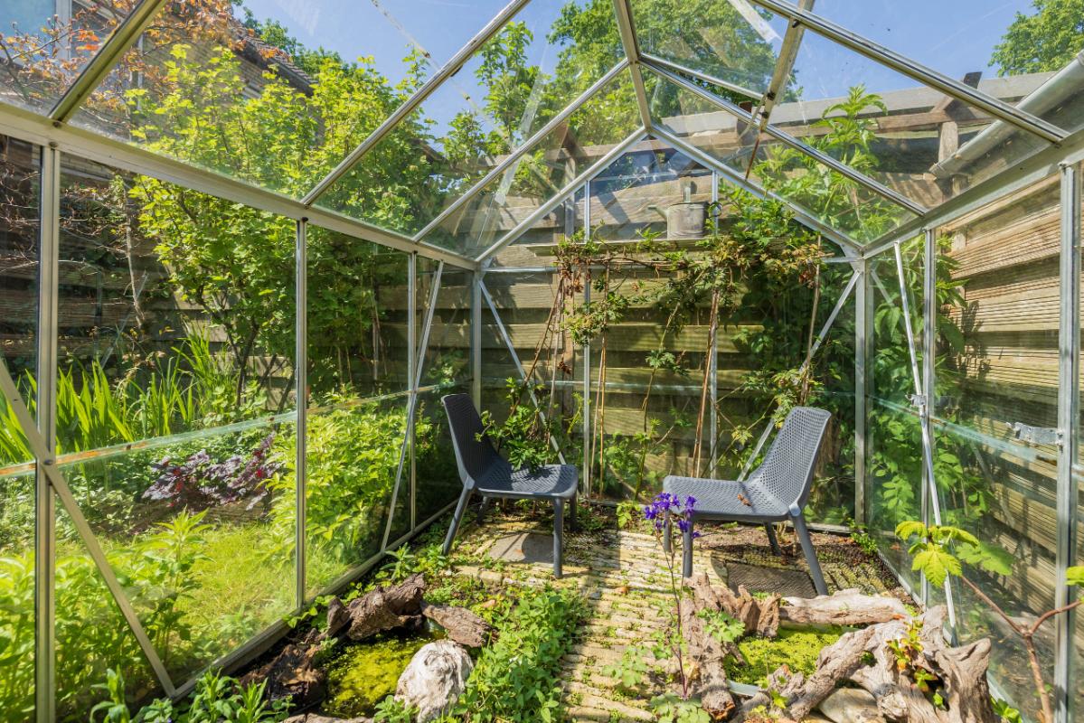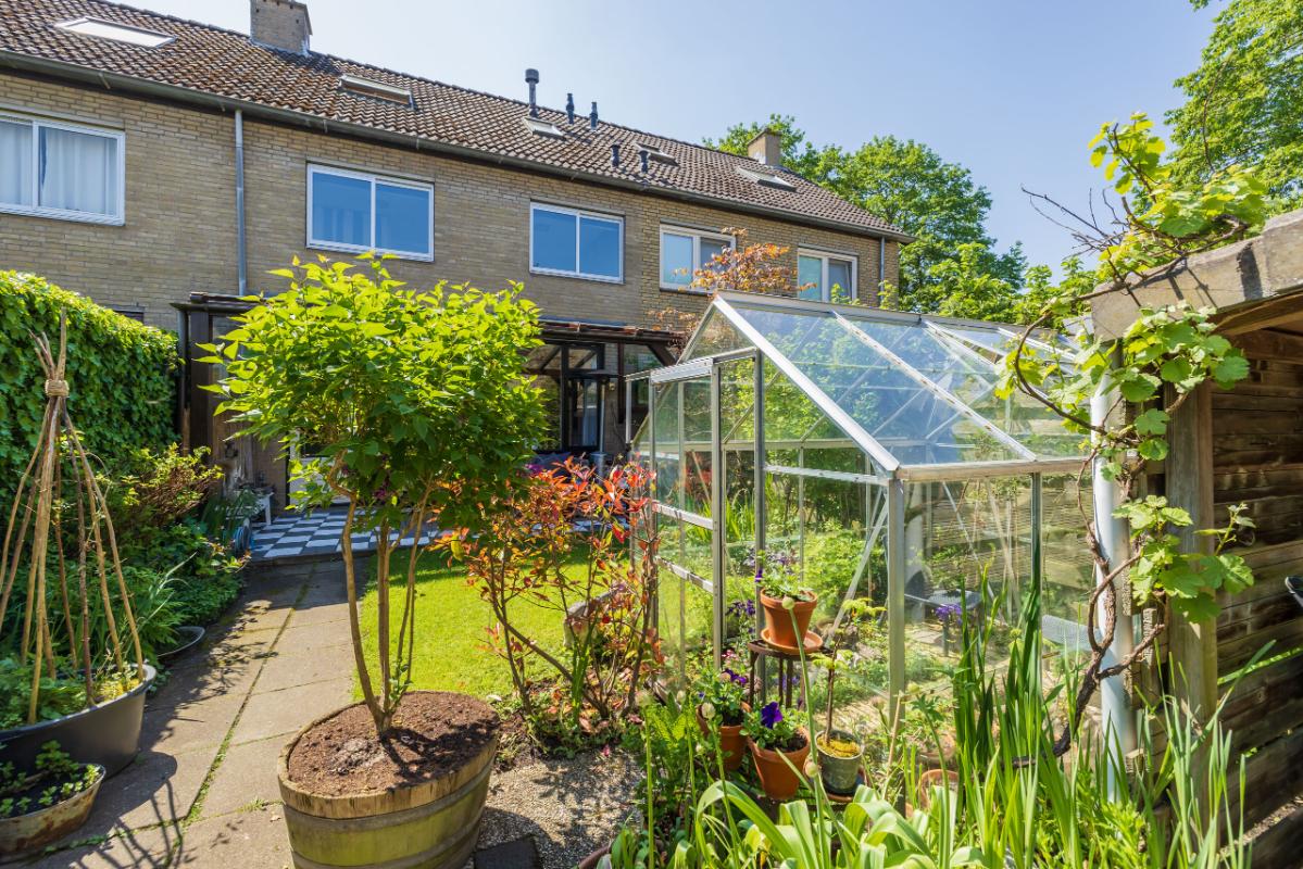 Tuin: Verzorgde voortuin met sierbestrating, fraaie beplanting, buitenkraan en markies. De straat is ruim van opzet zonder directe overburen. De achtertuin, volop privacy zonder inkijk achterburen, is maar liefst 13,60 meter diep en 6,19 meter breed gericht op het noordoosten. Heerlijk diep dus om al vroeg in het voorjaar van het zonnetje in de tuin te genieten. De sfeervolle veranda aan de woning (met veiligheidsglas) biedt een heerlijke plek om te ontspannen en extra van het buitenleven te genieten! De tuin is verder aangelegd met gazon, borderbeplanting en een stenen berging met handige overkapping voor extra bergruimte. Dankzij de achterom is de tuin makkelijk bereikbaar. Voor de tuinliefhebber is er bovendien een broeikas aanwezig – ideaal voor het kweken van eigen groenten of planten.