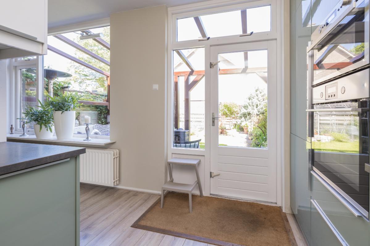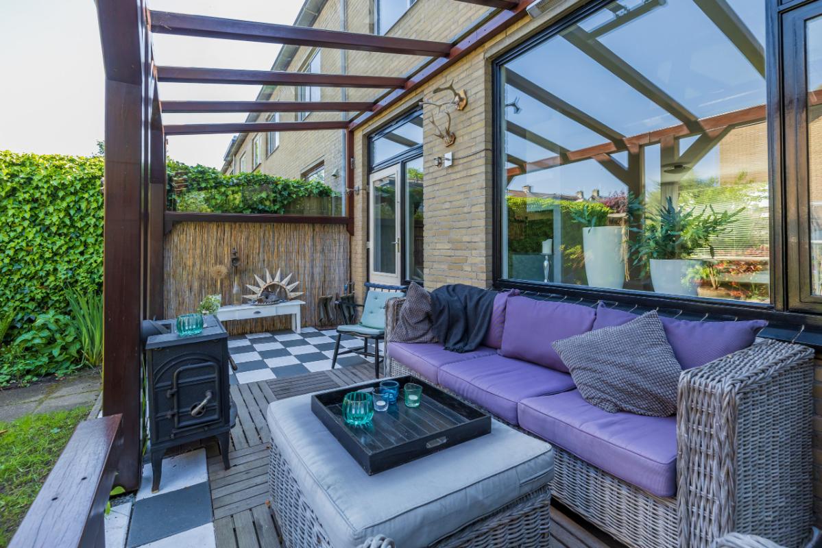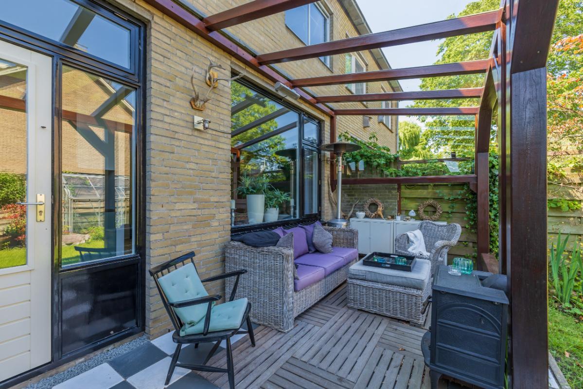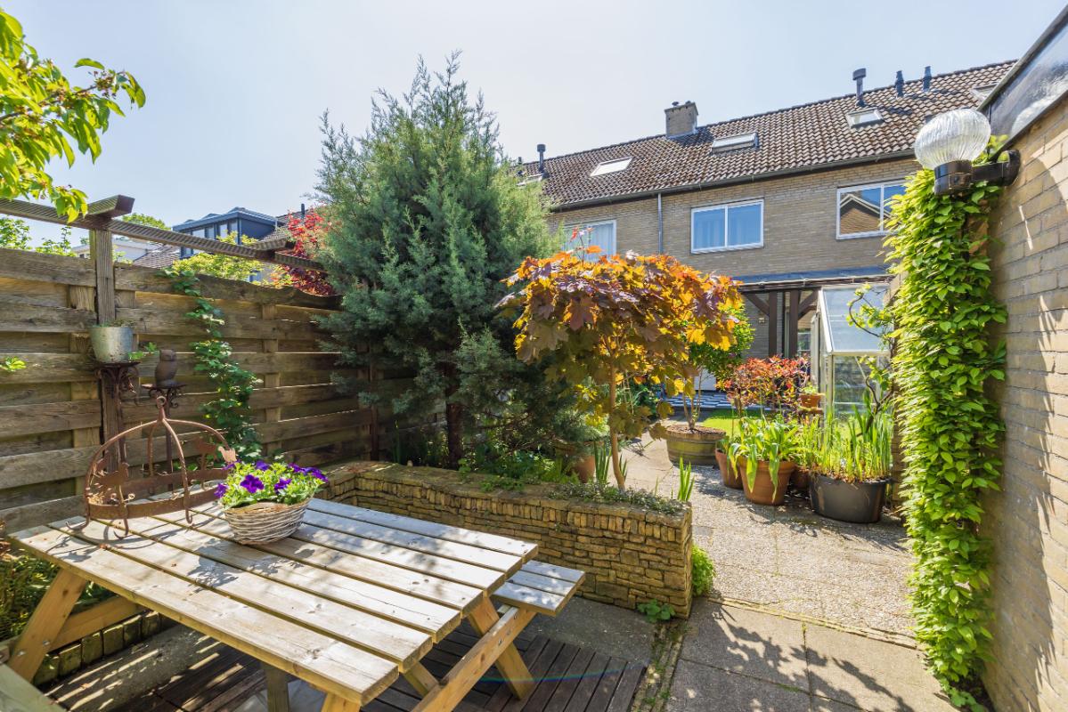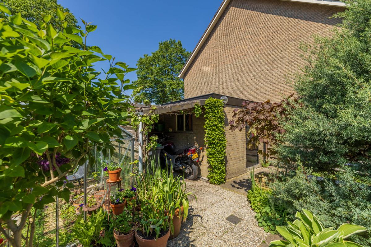 Tuin: Verzorgde voortuin met sierbestrating, fraaie beplanting, buitenkraan en markies. De straat is ruim van opzet zonder directe overburen. De achtertuin, volop privacy zonder inkijk achterburen, is maar liefst 13,60 meter diep en 6,19 meter breed gericht op het noordoosten. Heerlijk diep dus om al vroeg in het voorjaar van het zonnetje in de tuin te genieten. De sfeervolle veranda aan de woning (met veiligheidsglas) biedt een heerlijke plek om te ontspannen en extra van het buitenleven te genieten! De tuin is verder aangelegd met gazon, borderbeplanting en een stenen berging met handige overkapping voor extra bergruimte. Dankzij de achterom is de tuin makkelijk bereikbaar. Voor de tuinliefhebber is er bovendien een broeikas aanwezig – ideaal voor het kweken van eigen groenten of planten.
