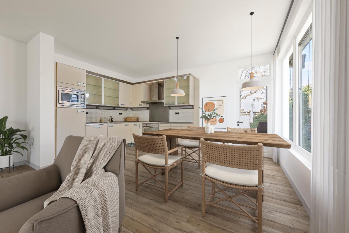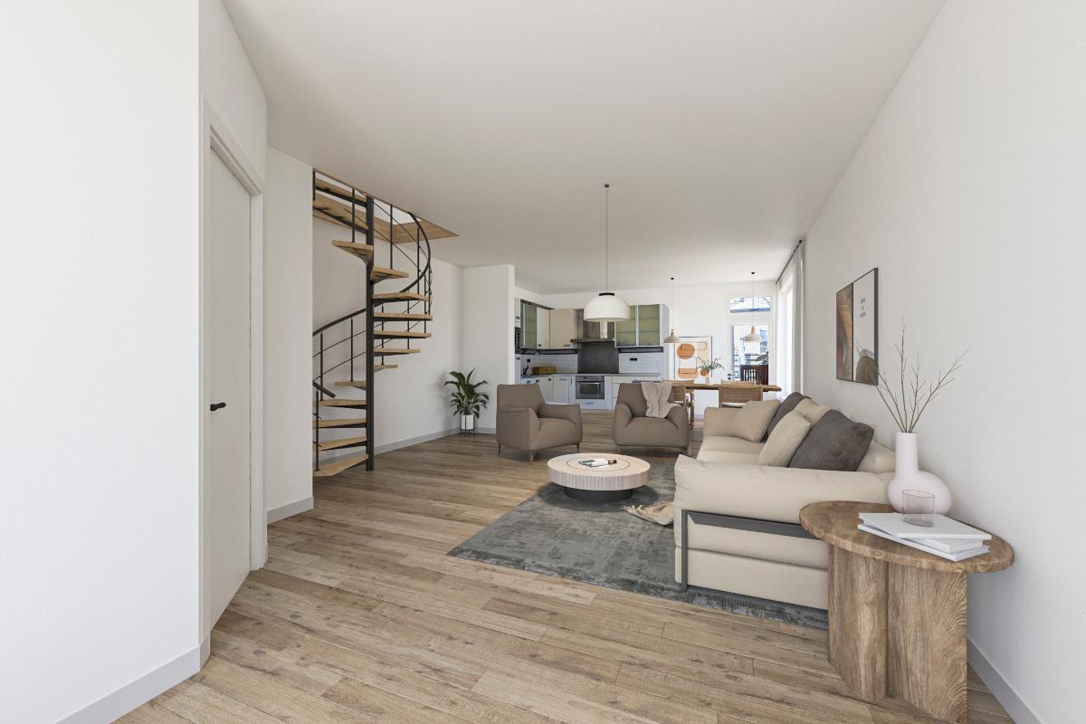 Woonkamer: De uitgebouwde lichte woonkamer met open keuken vormt het hart van de woning, is voorzien van grote raampartijen aan de voor- en zijkant die zorgen voor een fijne lichtinval en een open sfeer. Via de achterdeur loopt u zo de zonnige tuin in en een karakteristieke wenteltrap in de woonkamer leidt naar de 1e verdieping.