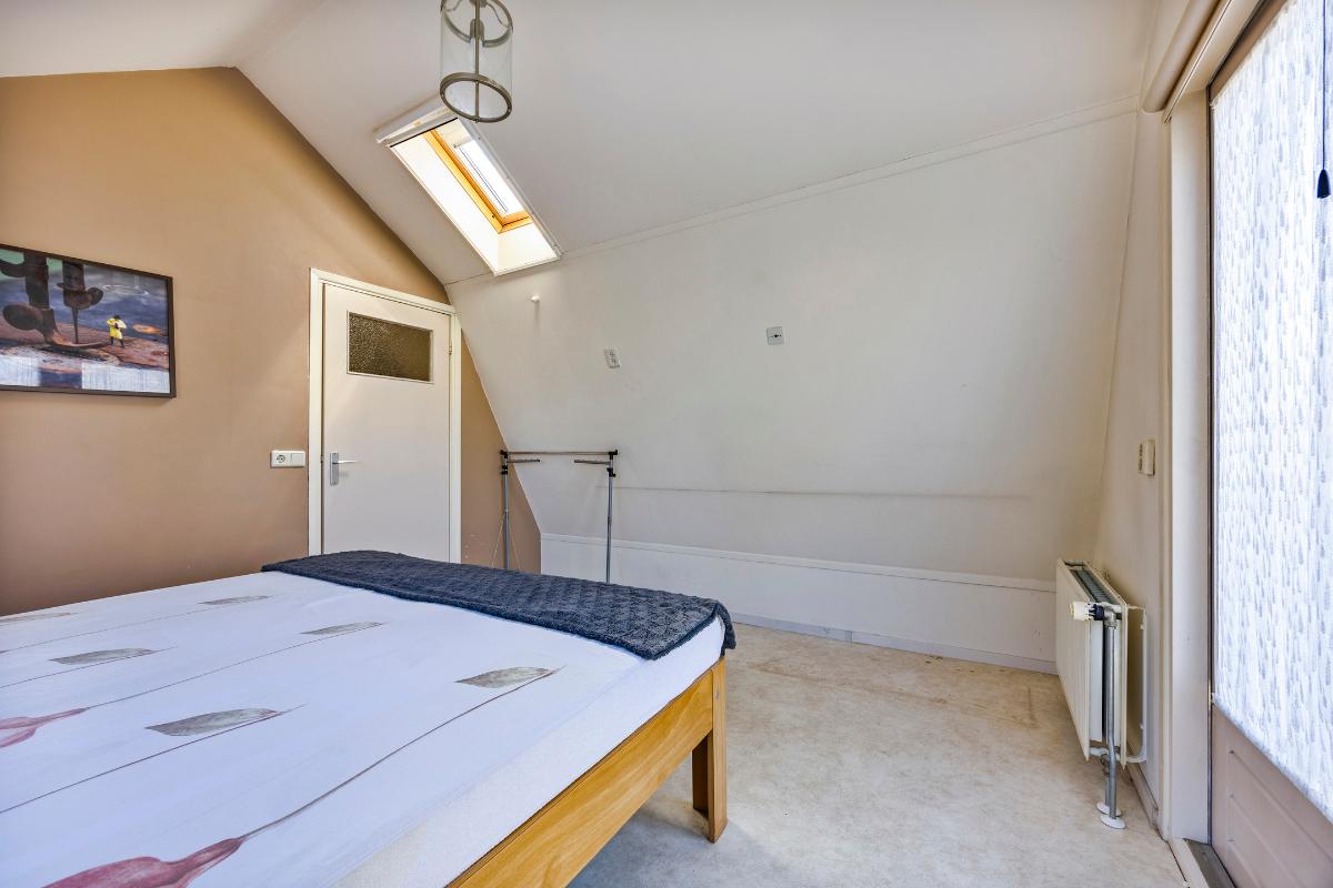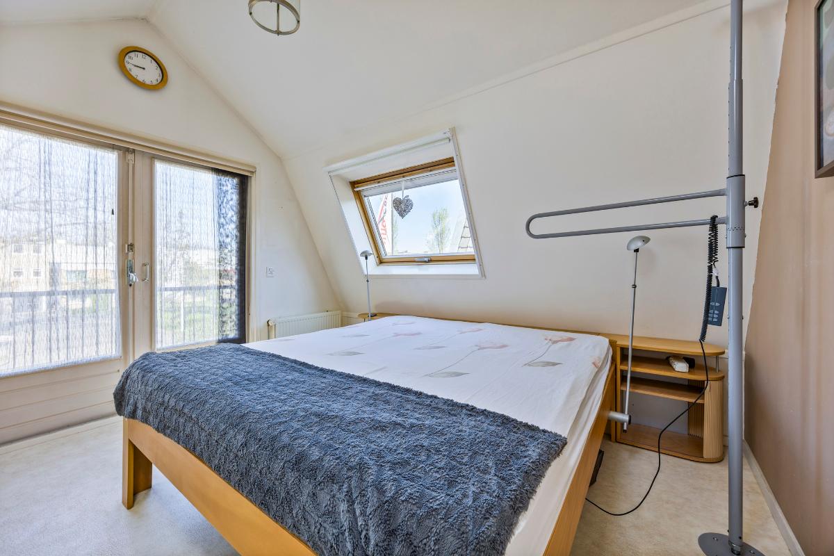 Slaapkamer 2: De ruime (master)slaapkamer is een fijne, lichte ruimte met een Velux dakraam en openslaande deuren naar het balkon, waar u uitkijkt over de Dr. Ariënslaan. Het balkon ligt op het noordwesten, waardoor u hier tot in de avond van de zon kunt genieten – een rustige plek om de dag af te sluiten.