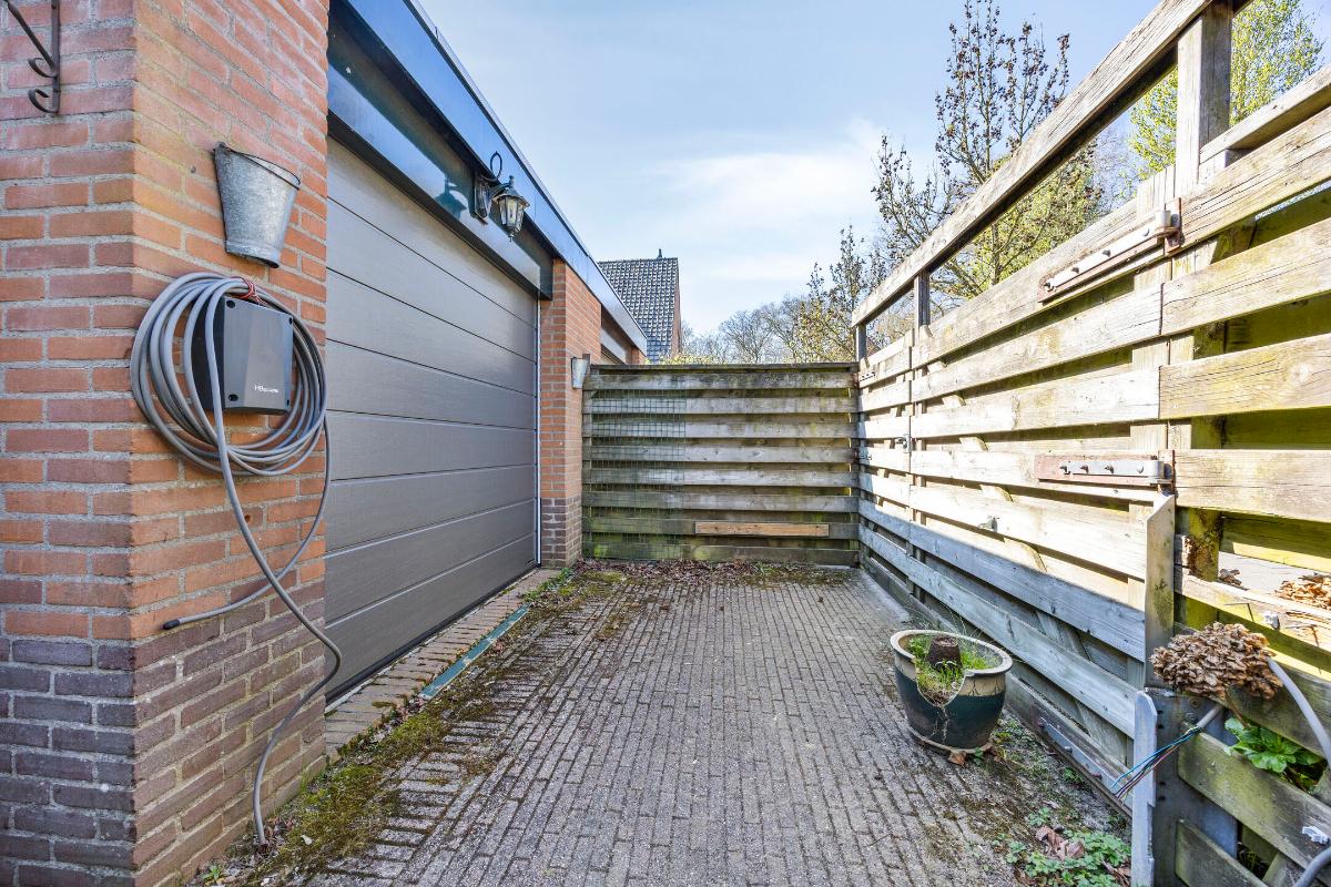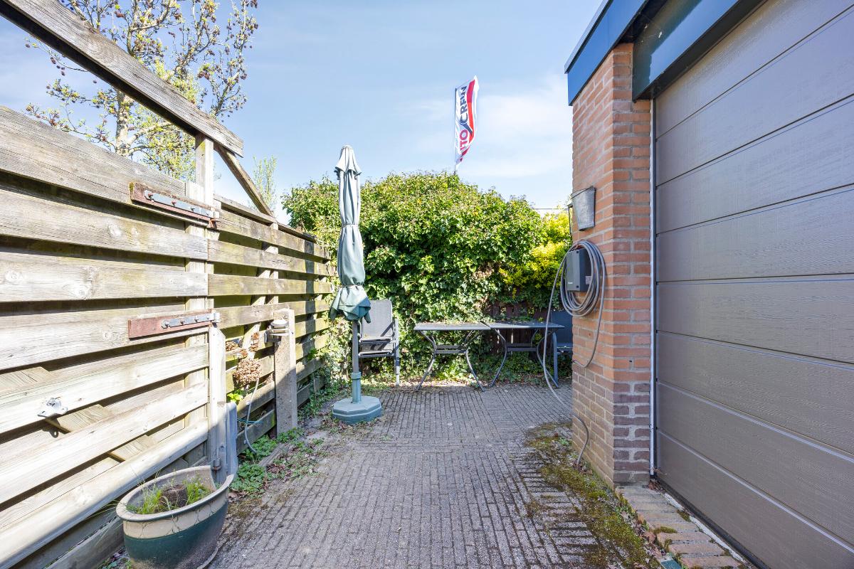 Tuin: De L-vormige achtertuin ligt op het noordwesten en biedt volop middag- en avondzon. Vanuit de tuin is er direct toegang tot de garage, en via een deur bereikt u eenvoudig de zij-tuin. Daarnaast is er een praktische achterom en kan het hekwerk worden geopend, zodat de garage ook van buitenaf toegankelijk is. Een fijne, functionele buitenruimte met volop mogelijkheden.