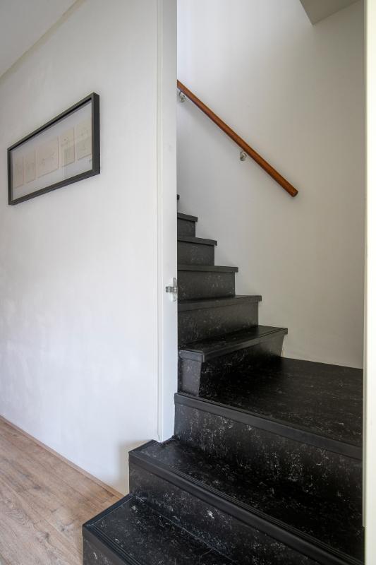Waskamer: Op de eerste verdieping bevindt zich een fijne waskamer met een was-/droogaansluiting. Er is veel bergruimte, een gootsteen en een lang blad waar je de was kunt vouwen.