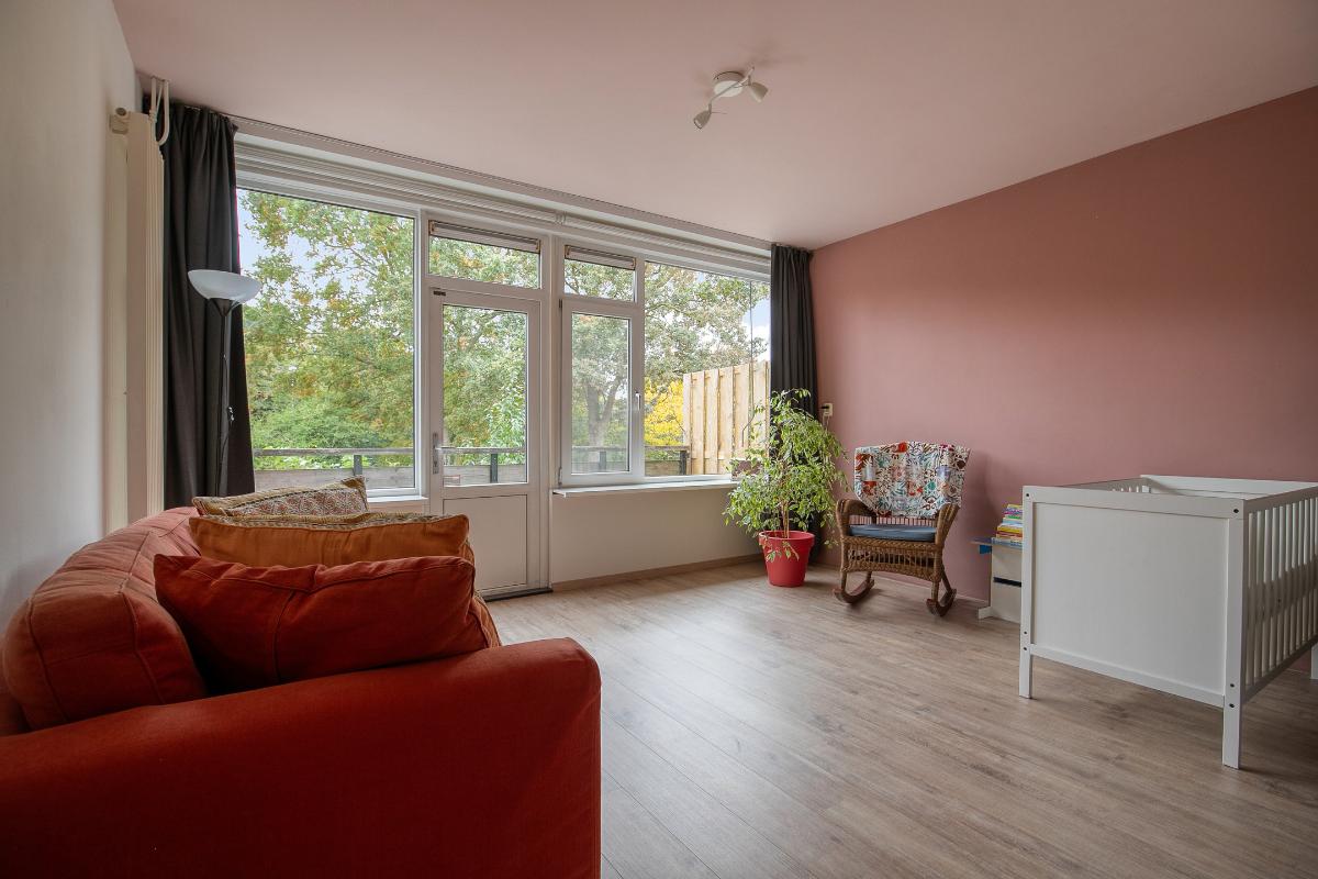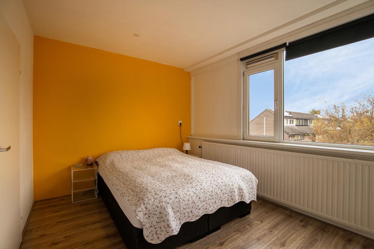 Slaapkamers: Slaapkamer 1: ligt aan de achterzijde van het huis, een ruime kamer met kunststof kozijnen met draai-kiepraam. Er ligt laminaat en wanden zijn glad gestukt. Toegang tot het balkon. Slaapkamer 2: ligt aan de voorzijde van het huis, een fijne slaapkamer met laminaat en kunststofkozijn met een draai-kiepraam.